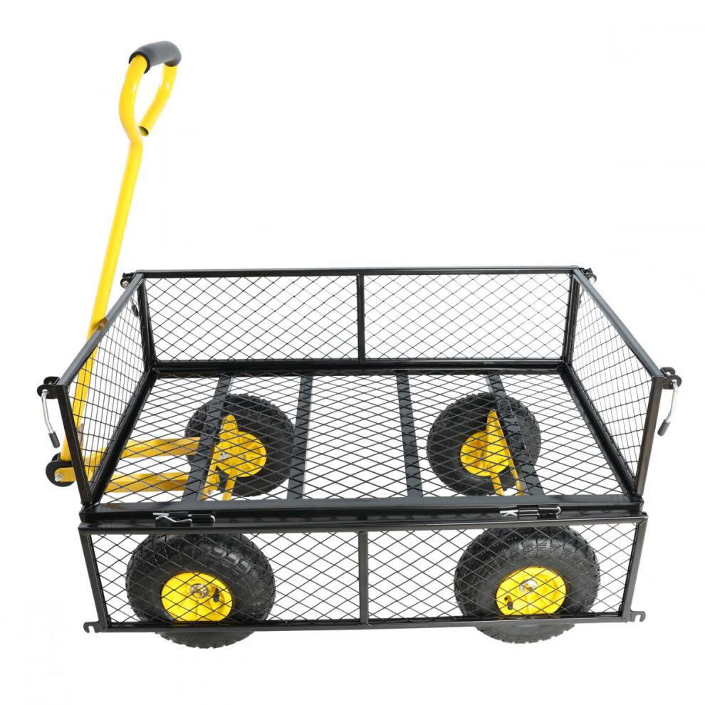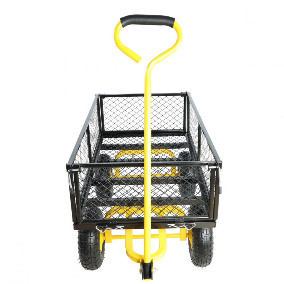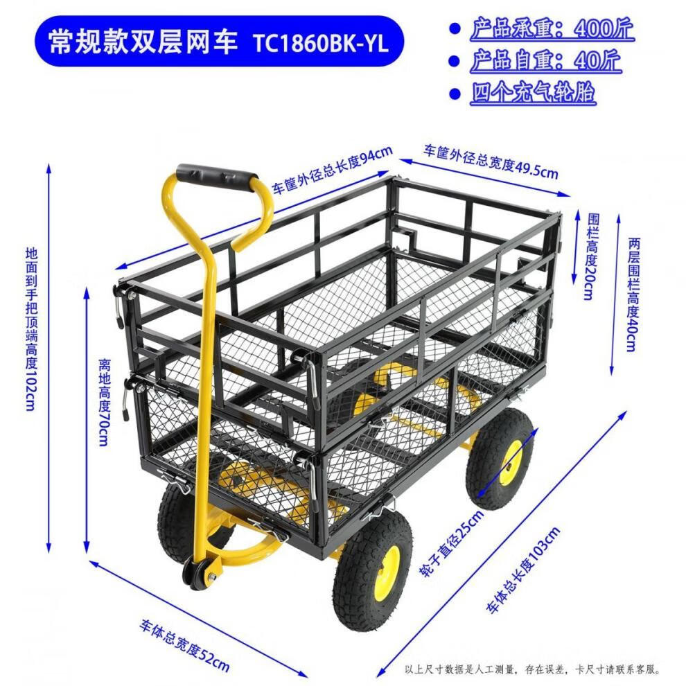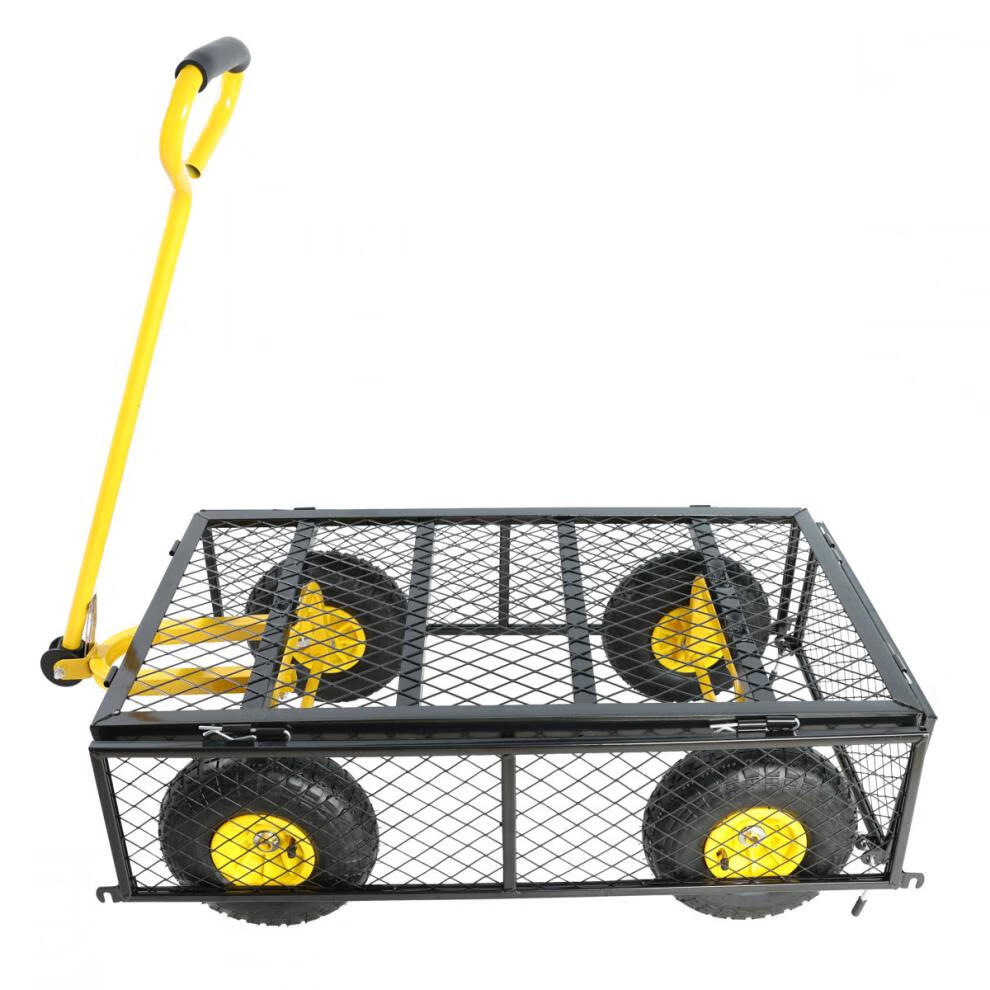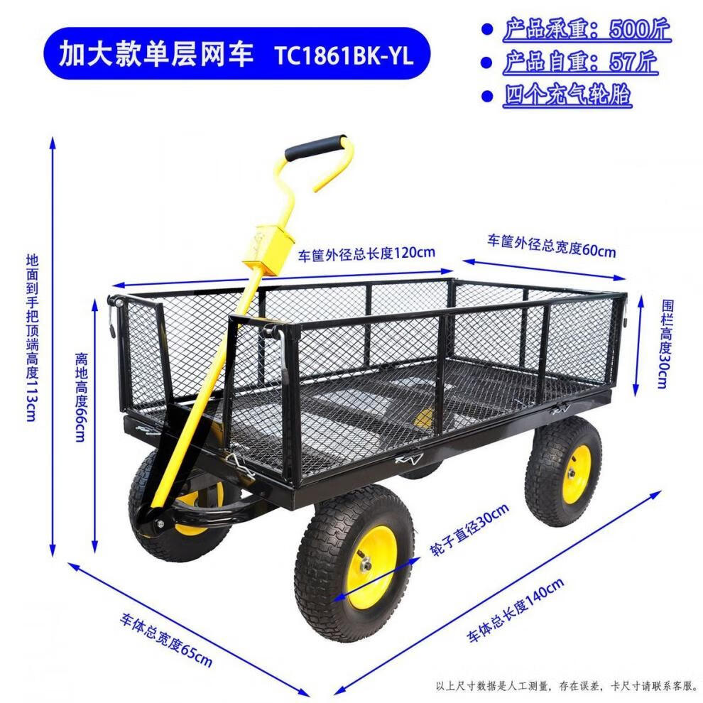 NAOISKEY 4016 Tool Trolley Flatbed Truck Trailer Tiger Cart Roasted Sweet Potato Cart Foldable Net Cart Side Block Removable With Pump Single-layer Pneumatic Wheel Yellow + Black