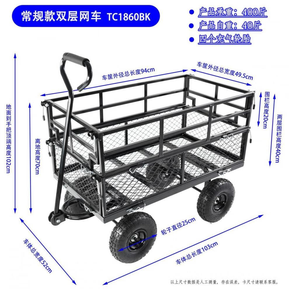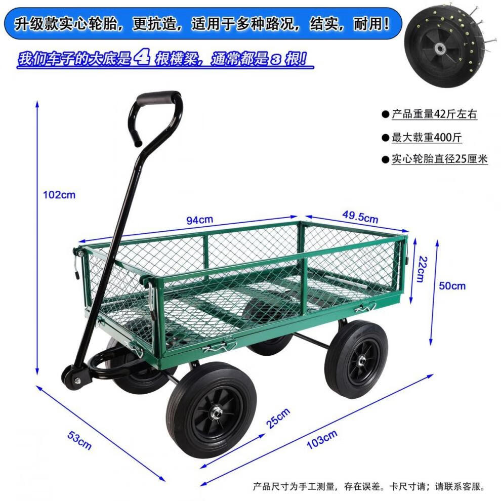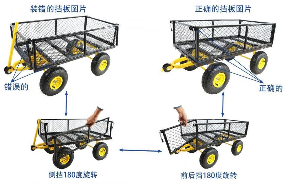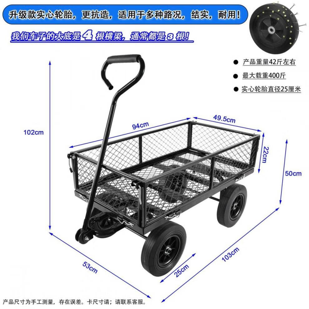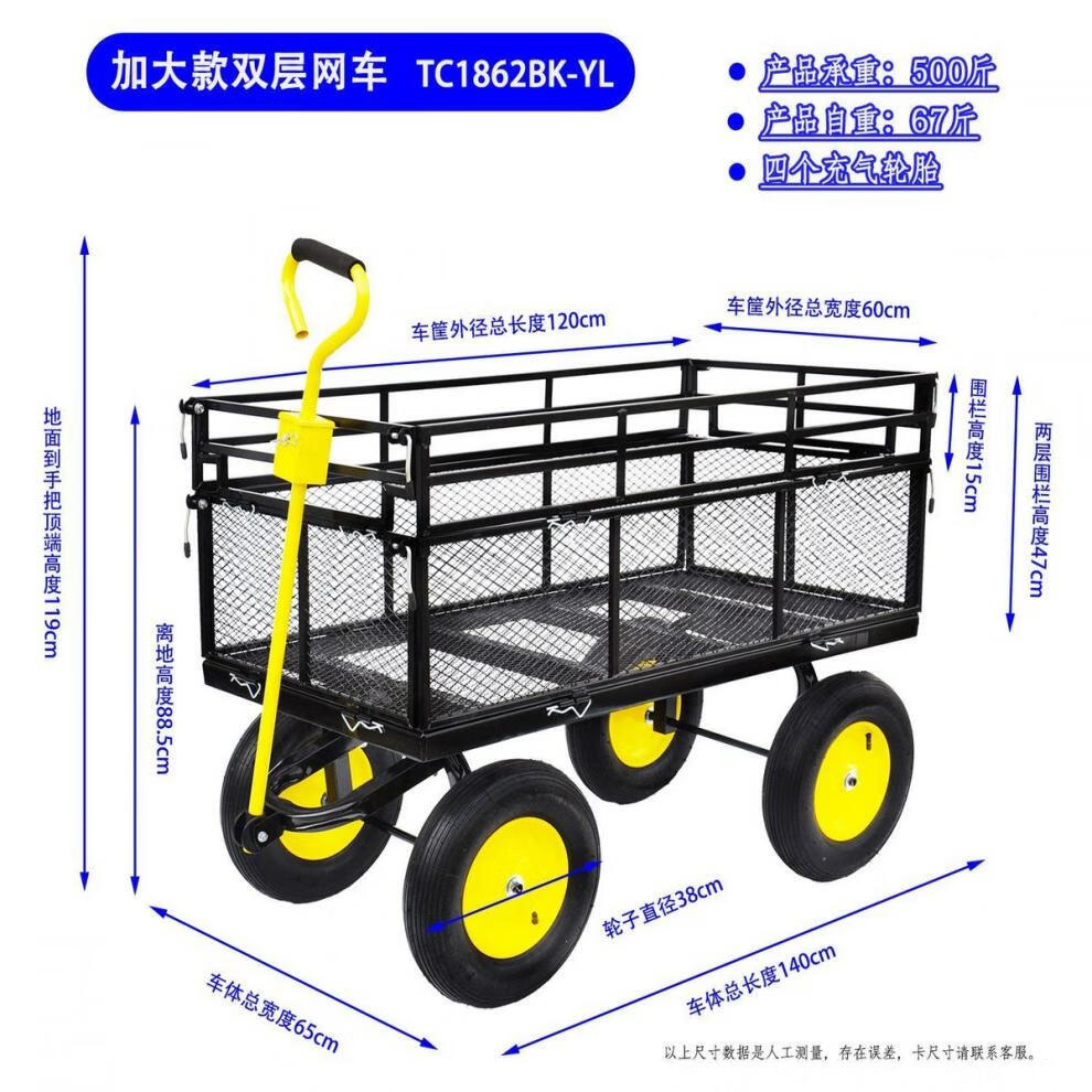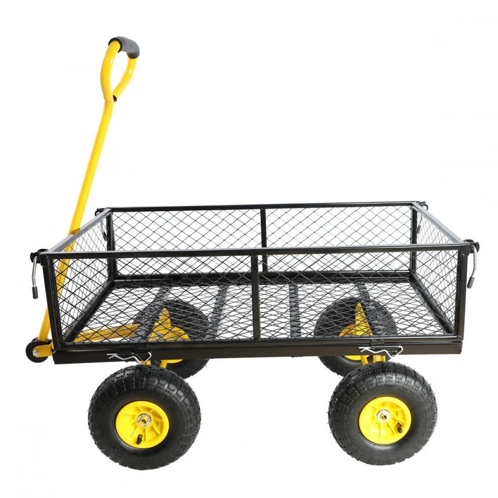 NAOISKEY 4016 Tool Trolley Flatbed Truck Trailer Tiger Cart Roasted Sweet Potato Cart Foldable Net Cart Side Block Removable With Pump Single-layer Pneumatic Wheel Yellow + Black