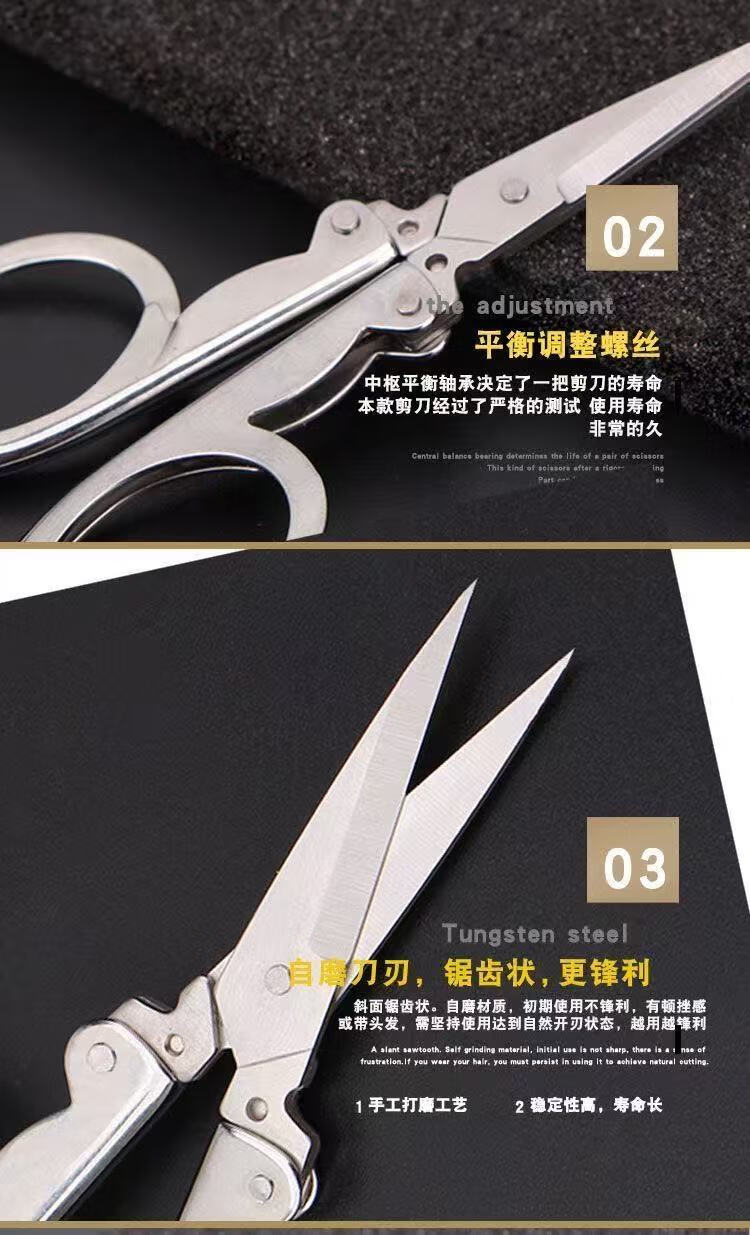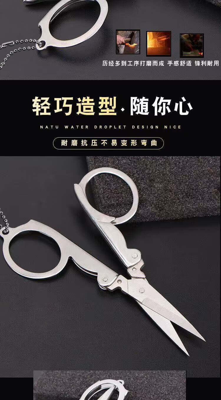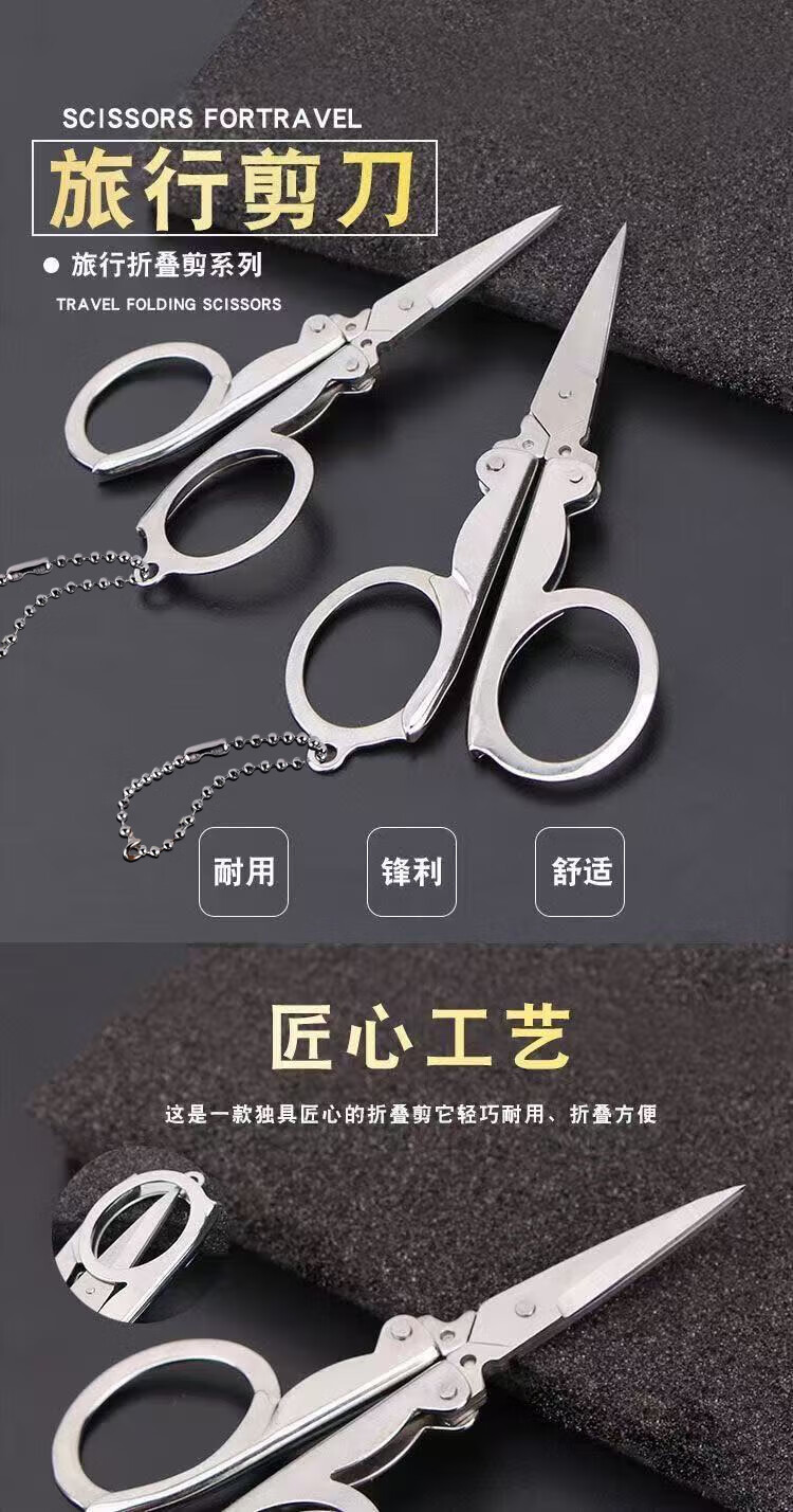 Stainless steel double circle folding scissors, pull scissors, mini portable travel pendant keychain, 1 set