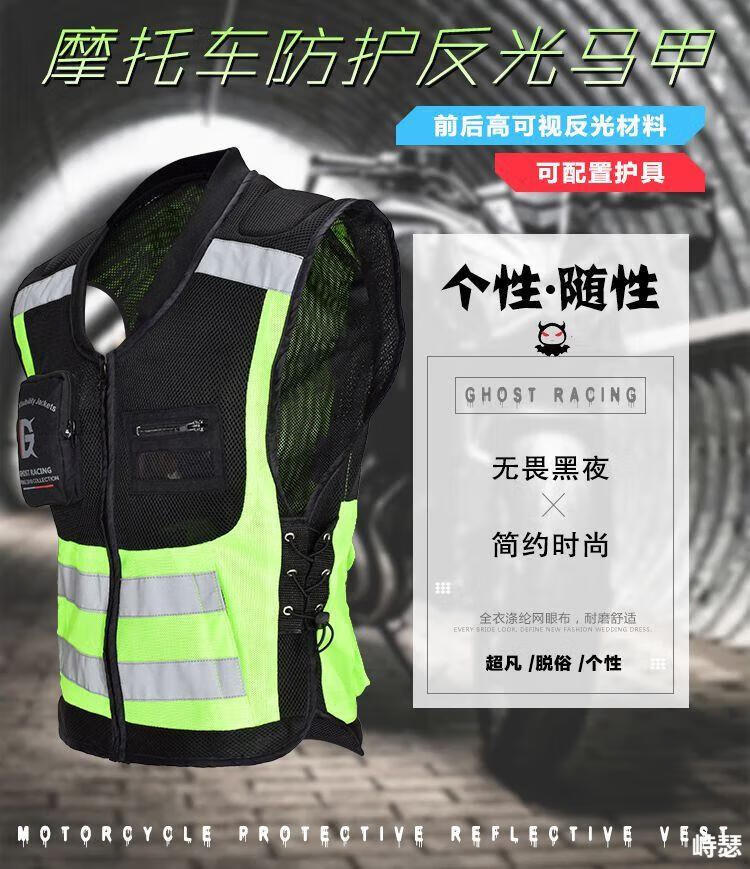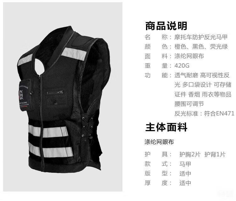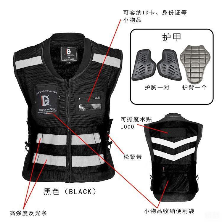 Anti-fall vest motorcycle riding vest vest anti-fall safety clothing Harley reflective clothing motorcycle riding clothing summer men and women black (with protective gear) M