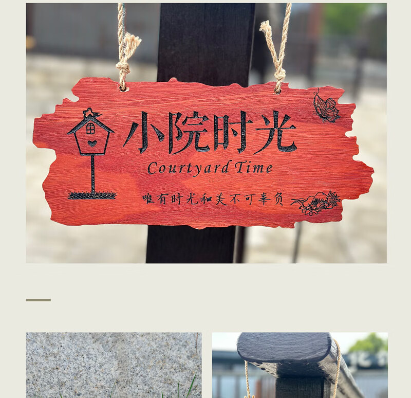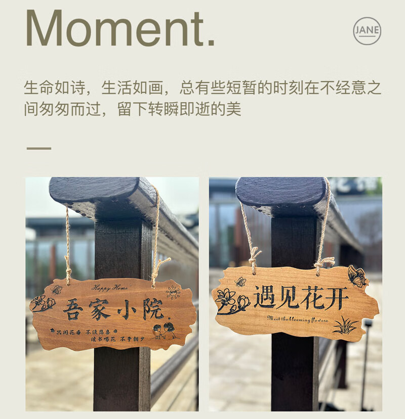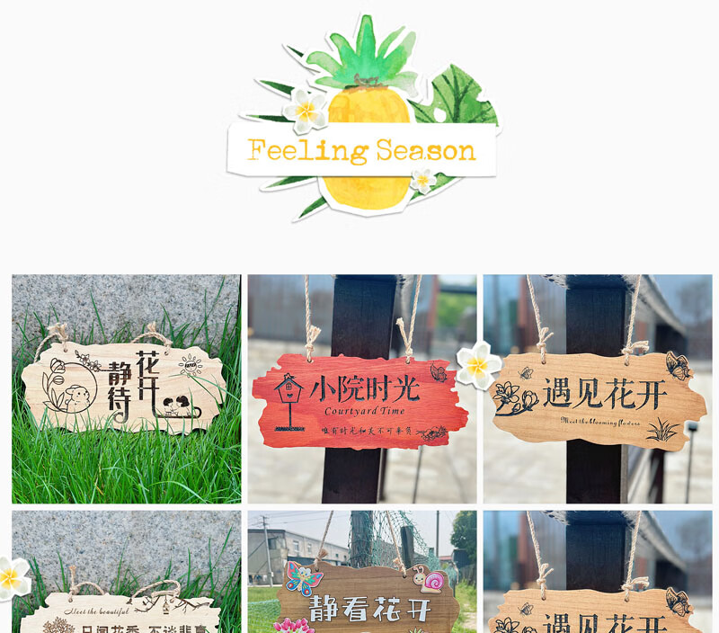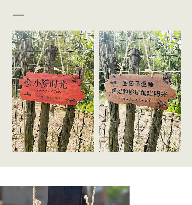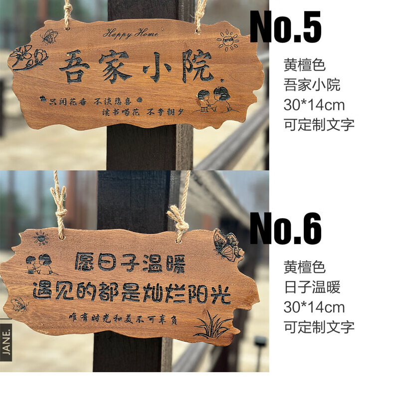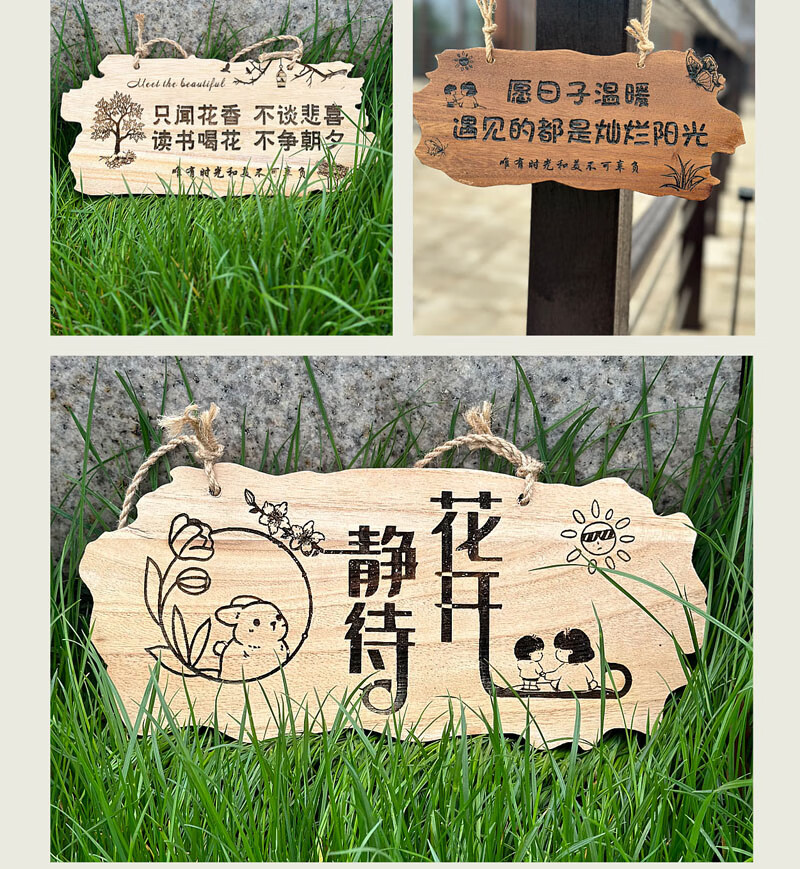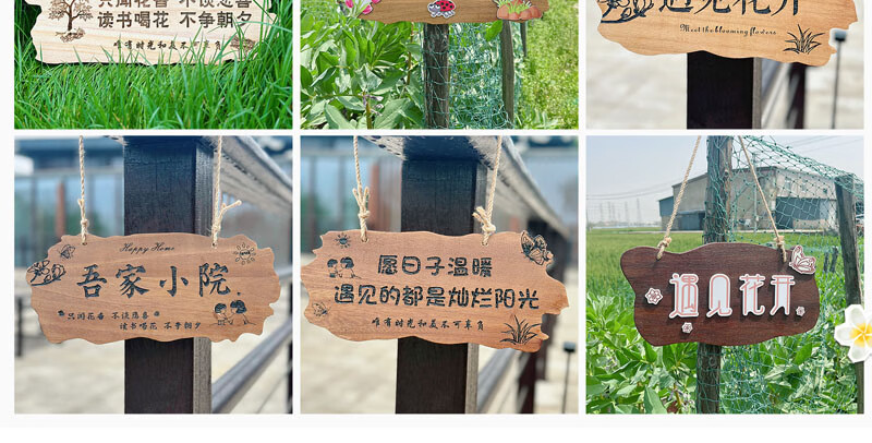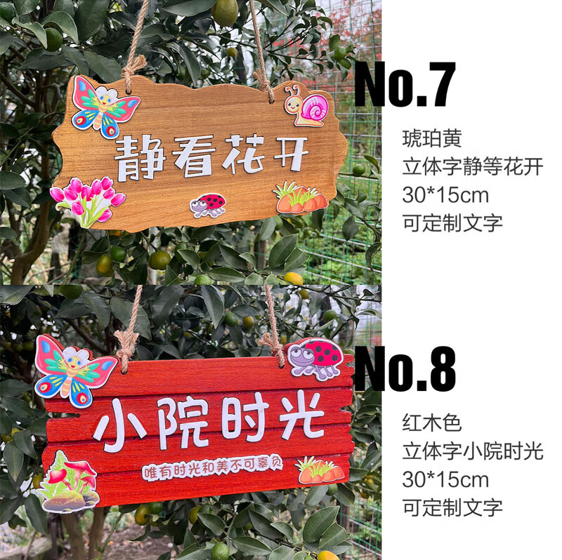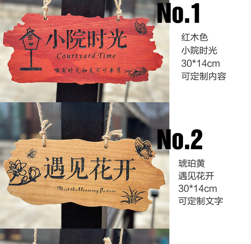 实木装饰挂牌家用阳台花园庭院实木DIY墙上挂件吾家小院创意门牌 款二30*14CM遇见花开