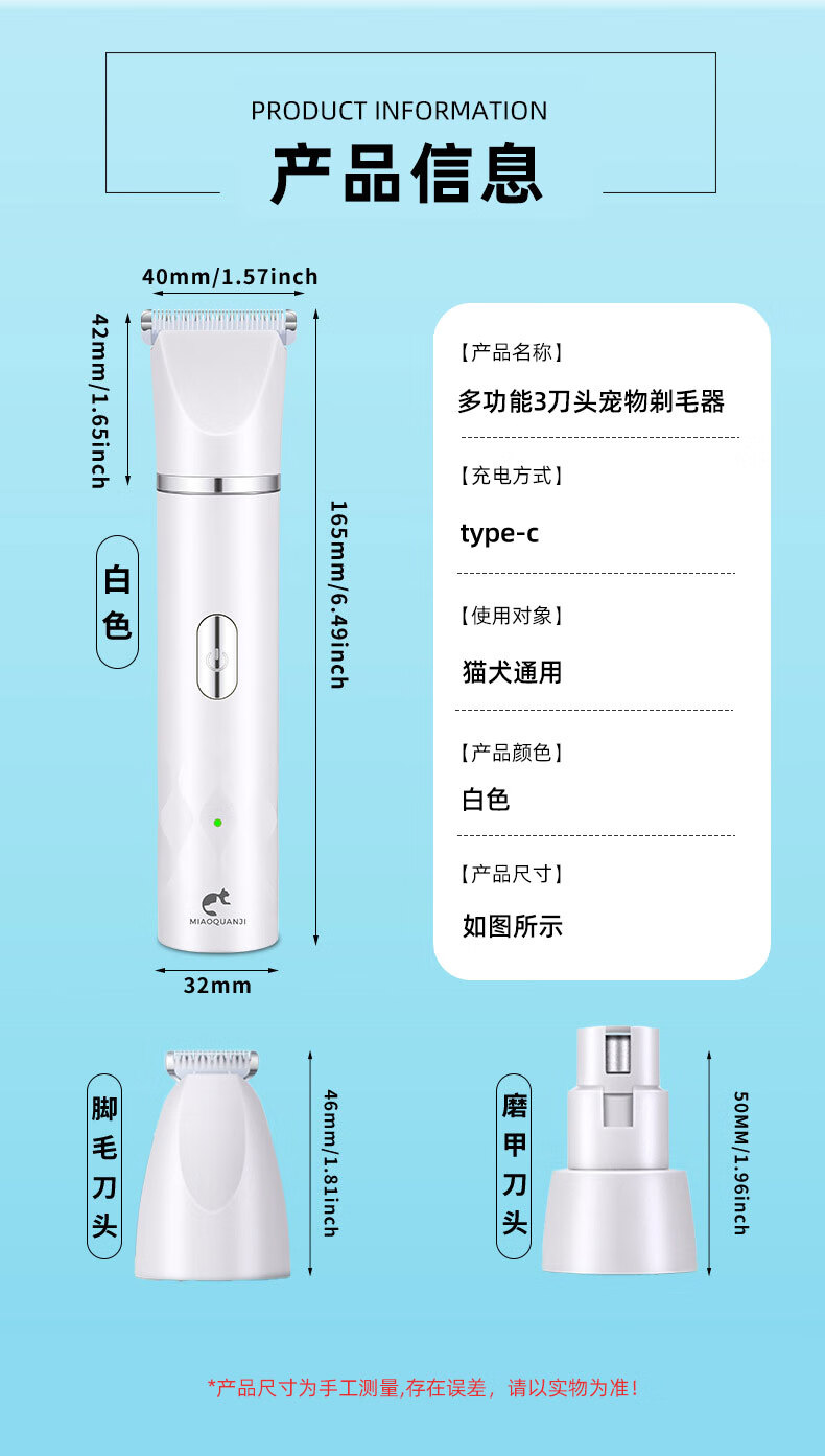 Wami Bichon Special Shaver for Dogs 3-in-1 Hair Clipper for Pets Trimming Sole Hair Electric Clipper Full Body Hair Cutter Pet 3-in-1 Shaver USB Charging