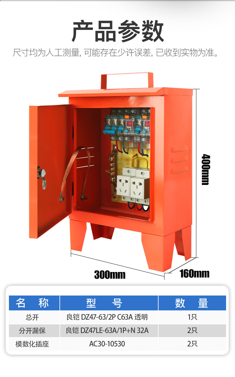 220V380V construction site second and third level construction site box outdoor rainproof mobile temporary distribution box industrial socket box 25cm 30cm (empty box/thin)