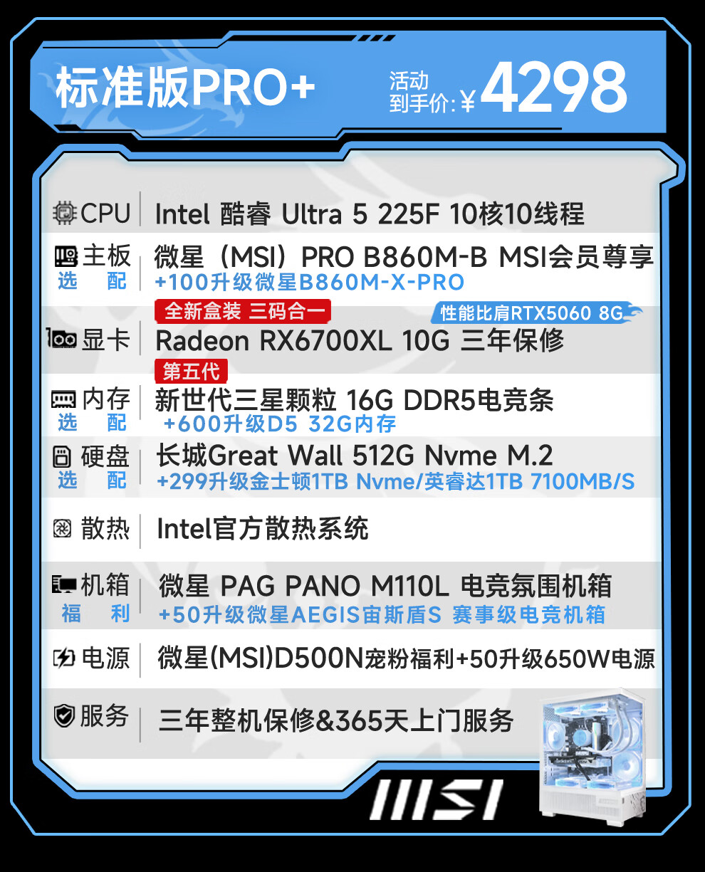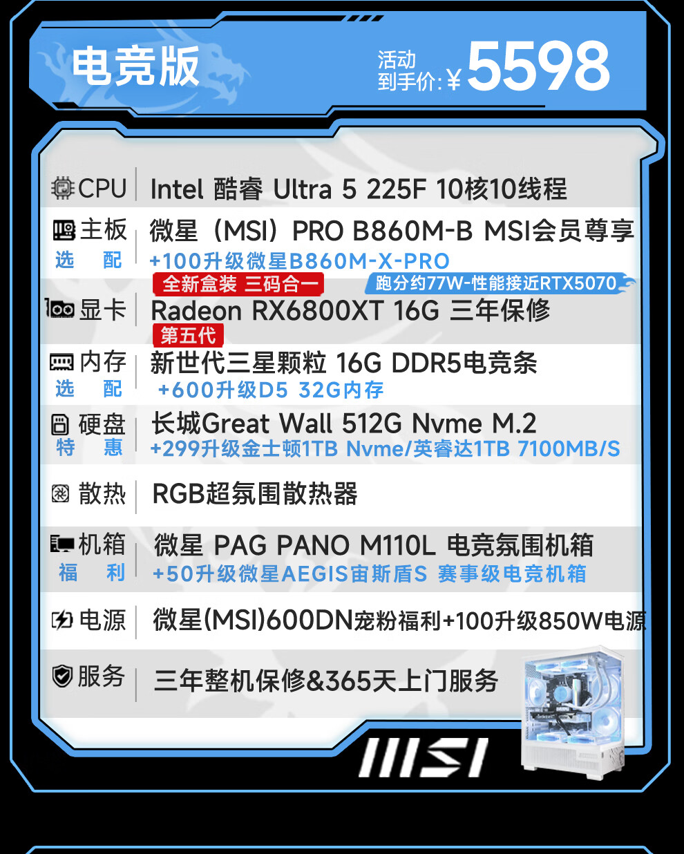 MSI Aegis S 15th generation Ultra7 265K/230F/i5 14400F desktop assembly computer host RTX5060Ti Delta gaming high-end design machine U7 265KF+RX6800XT Ultimate Edition S single host