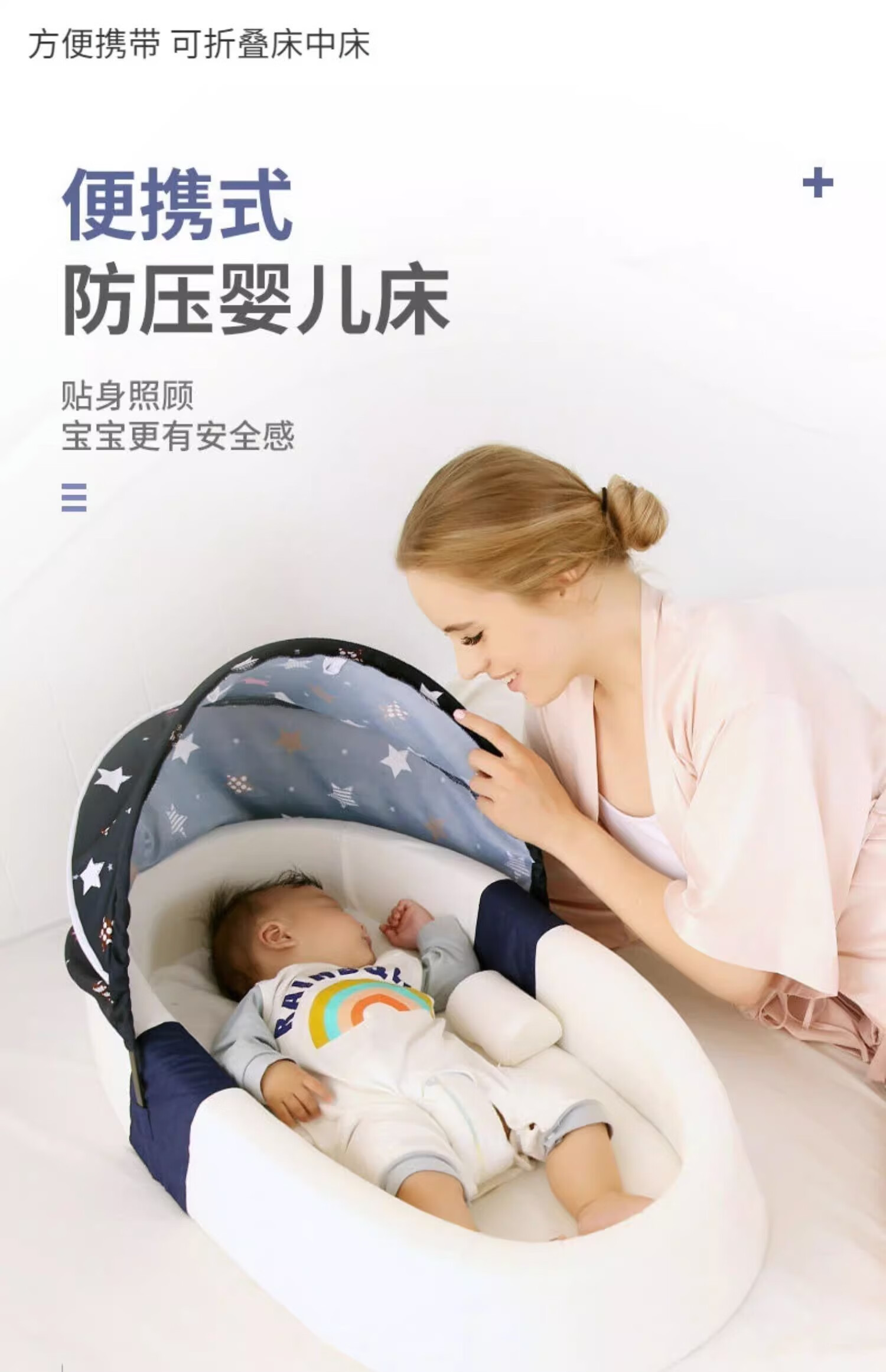 Bala Pig Portable Bed-in-Bed Baby Crib Foldable Newborn Sleeping Bed Mobile Bionic Womb Bed Bed Anti-pressure Mommy Storage Backpack Green
