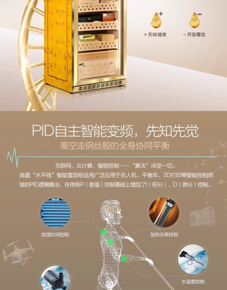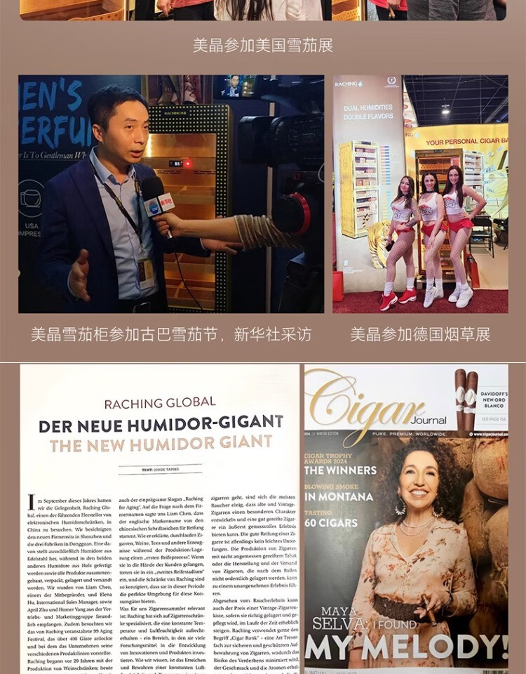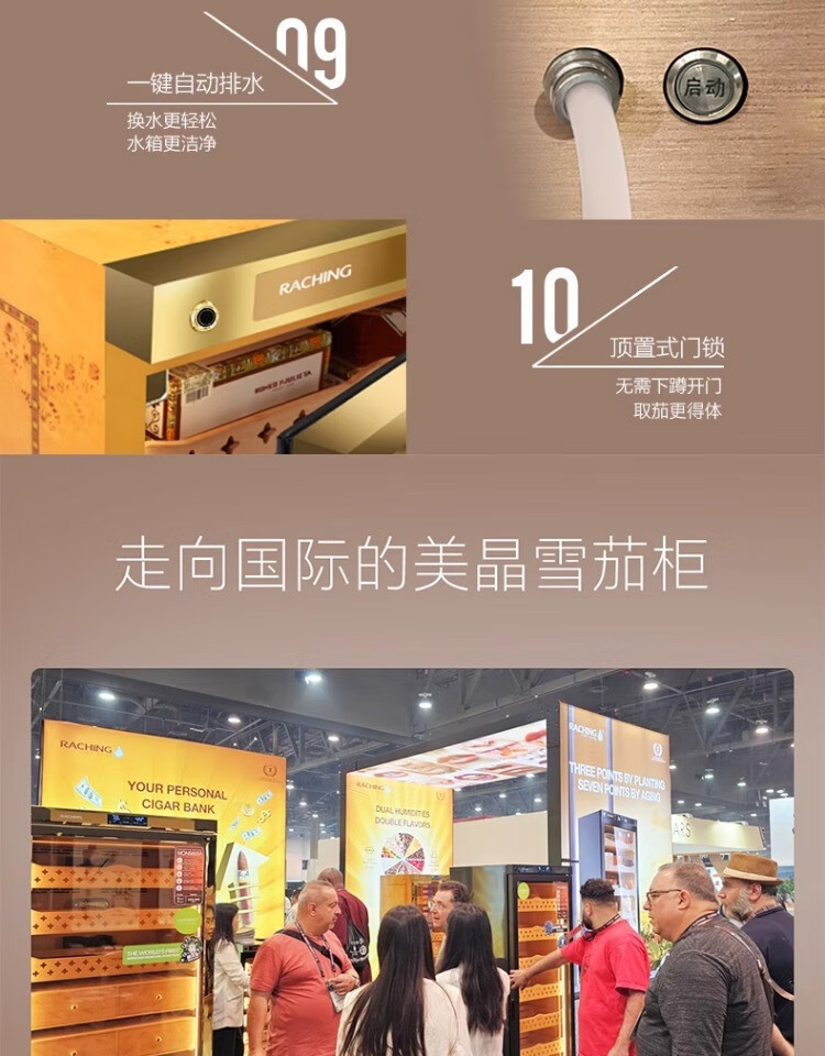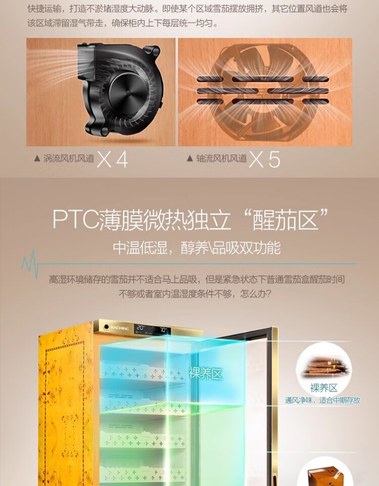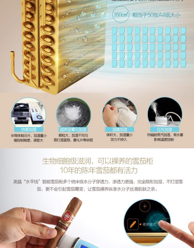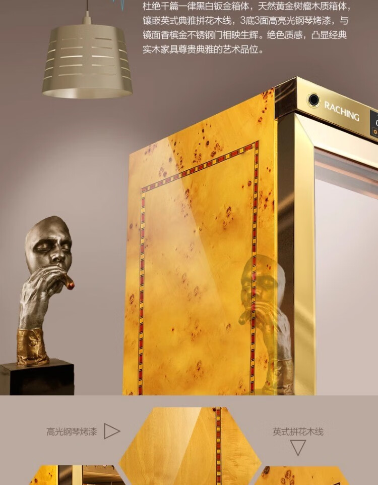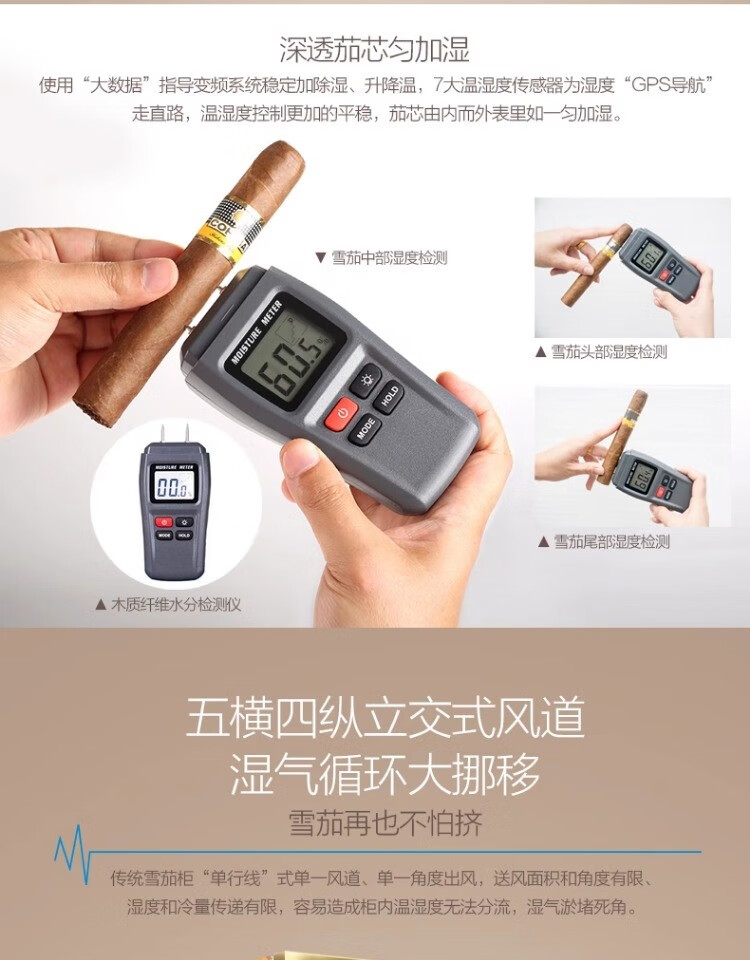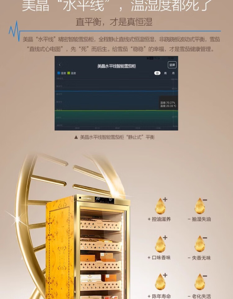 Meijing cigar cabinet MON3800A intelligent horizontal line solid wood constant temperature and humidity cigar cabinet moisturizing cabinet golden Spanish cedar wood shelf