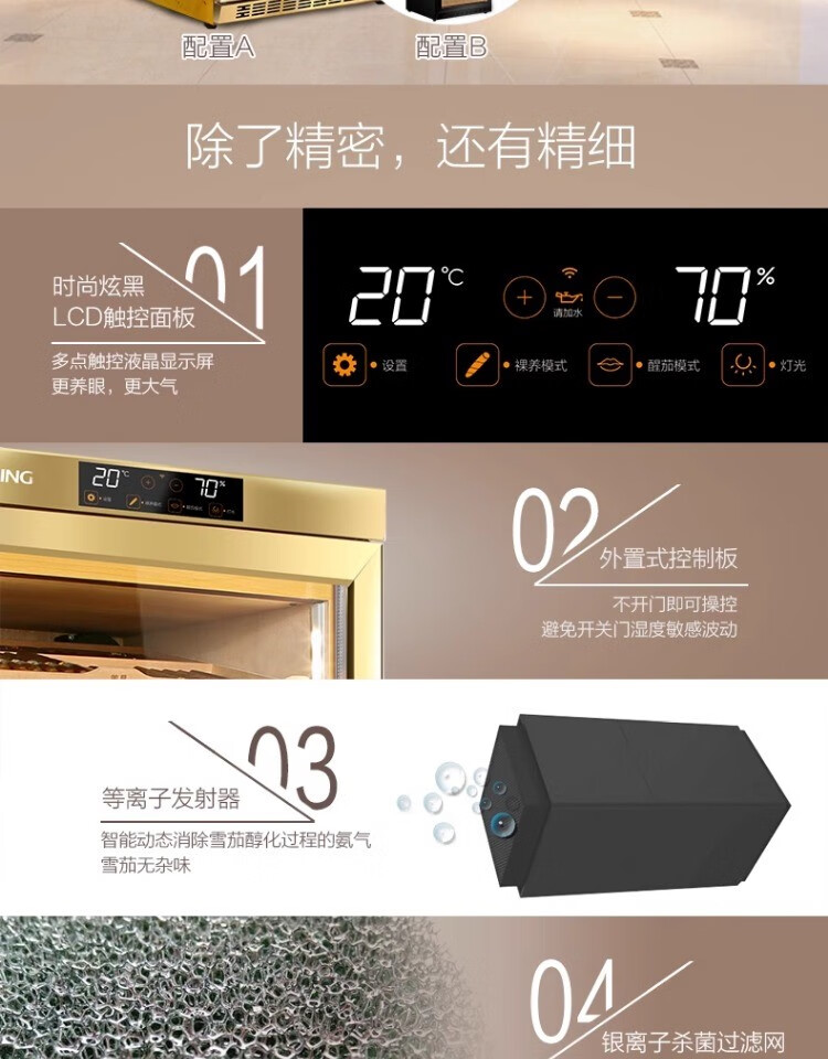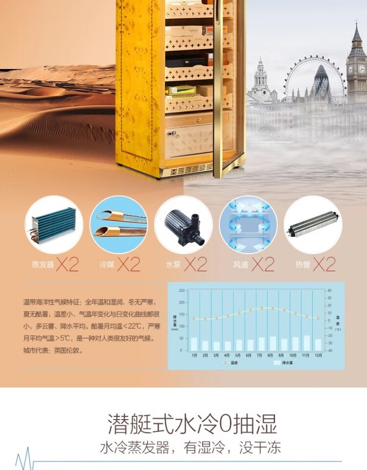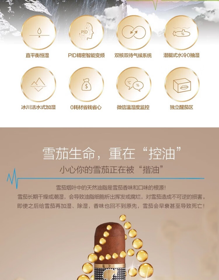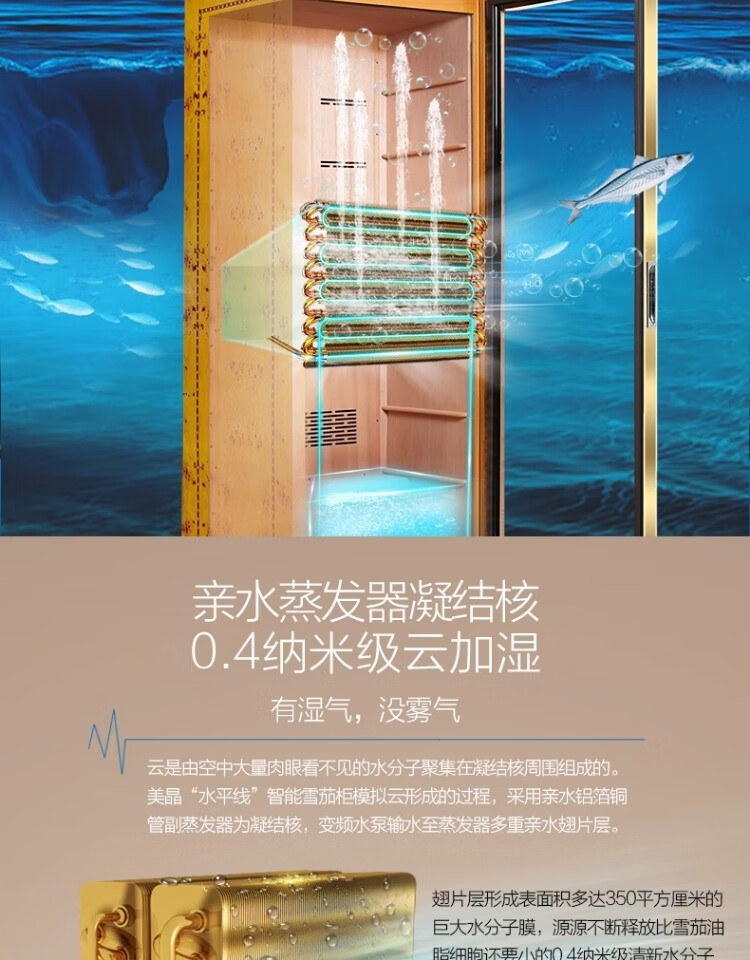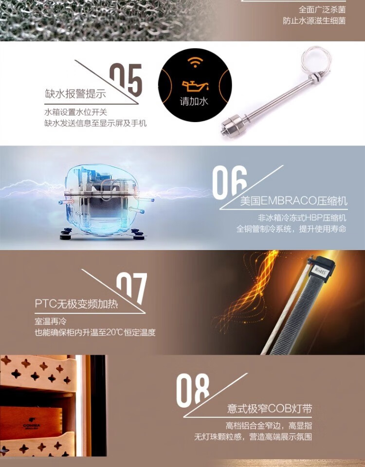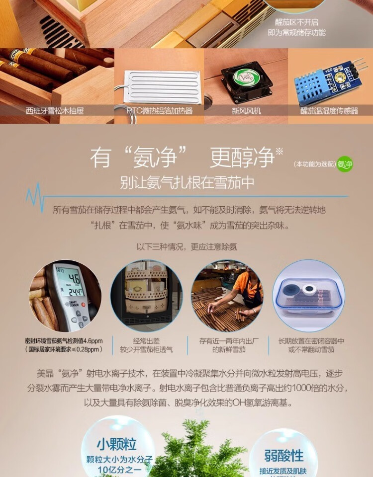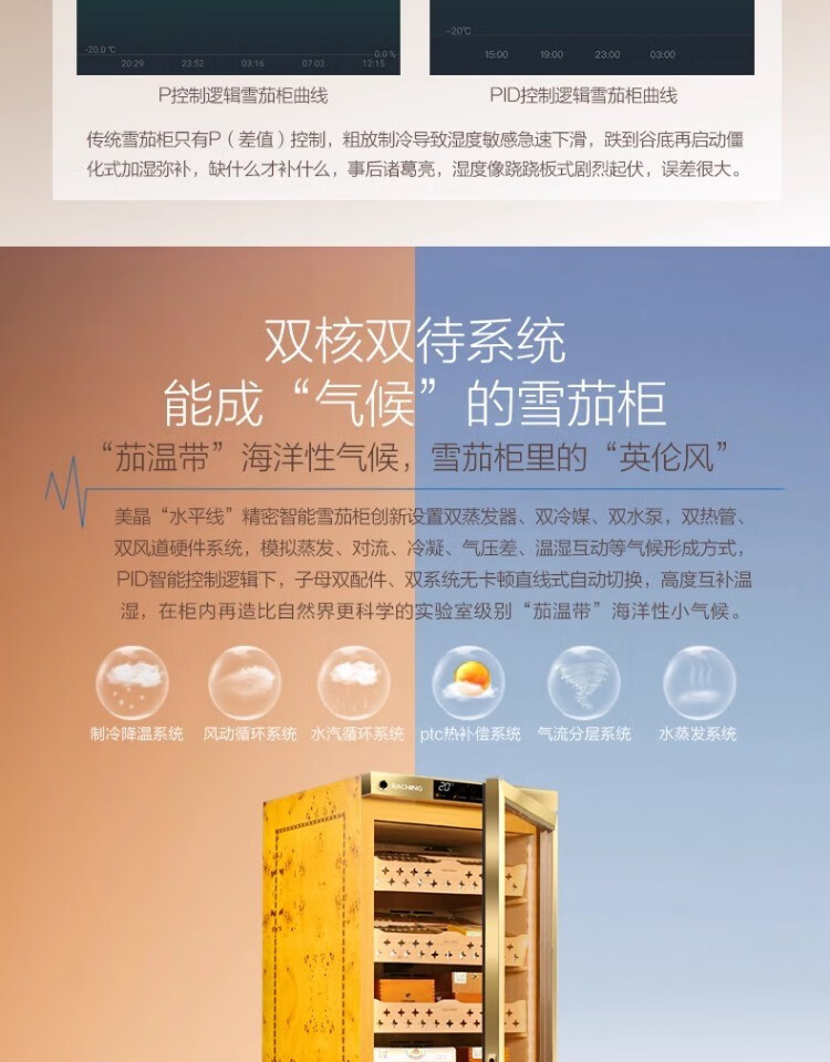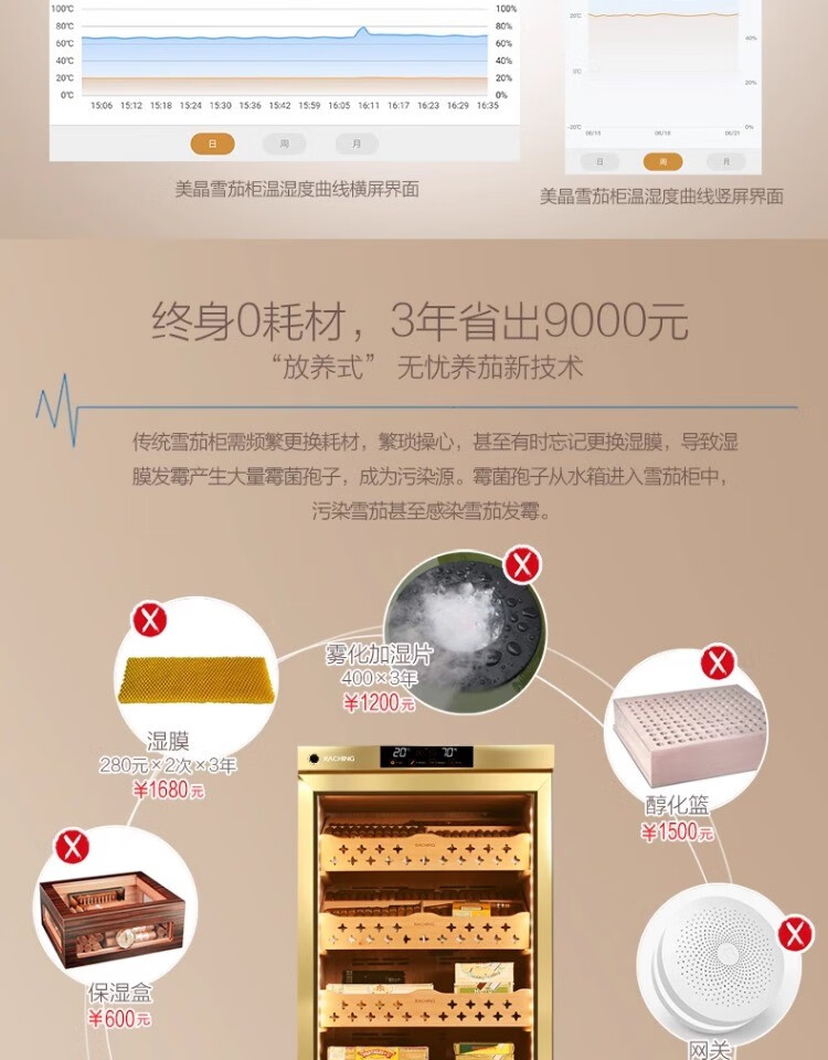 Meijing cigar cabinet MON3800A intelligent horizontal line solid wood constant temperature and humidity cigar cabinet moisturizing cabinet golden Spanish cedar wood shelf