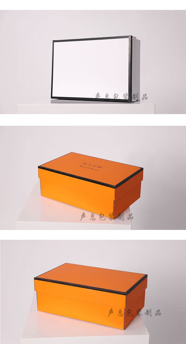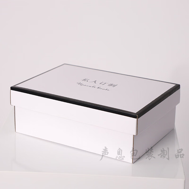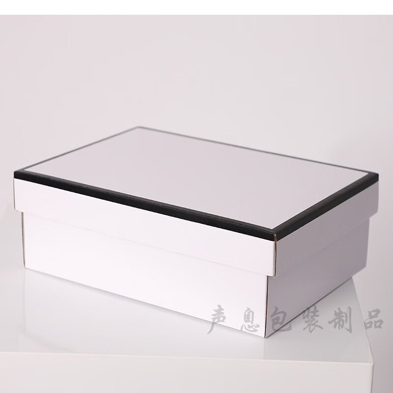 10 personal shoe boxes with upper and lower lids for live broadcast, thickened kraft paper sneakers, aj dormitory storage box, white printing, black frame wrapping (10 pcs) 33x25x12cm
