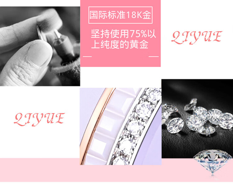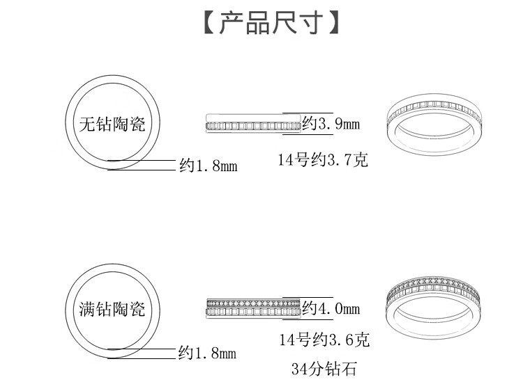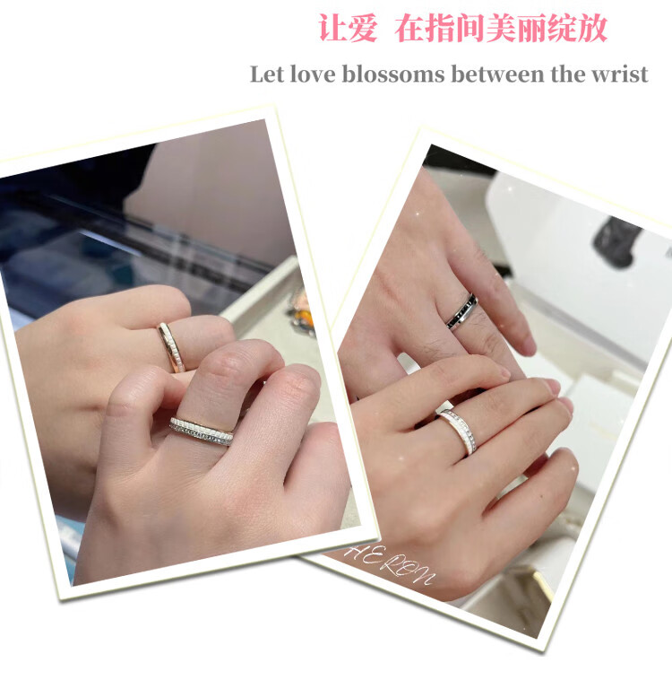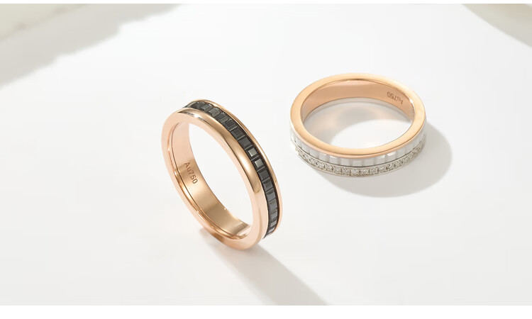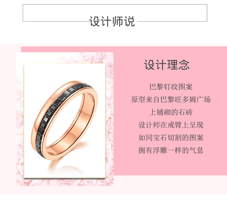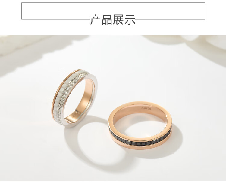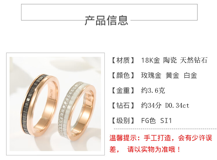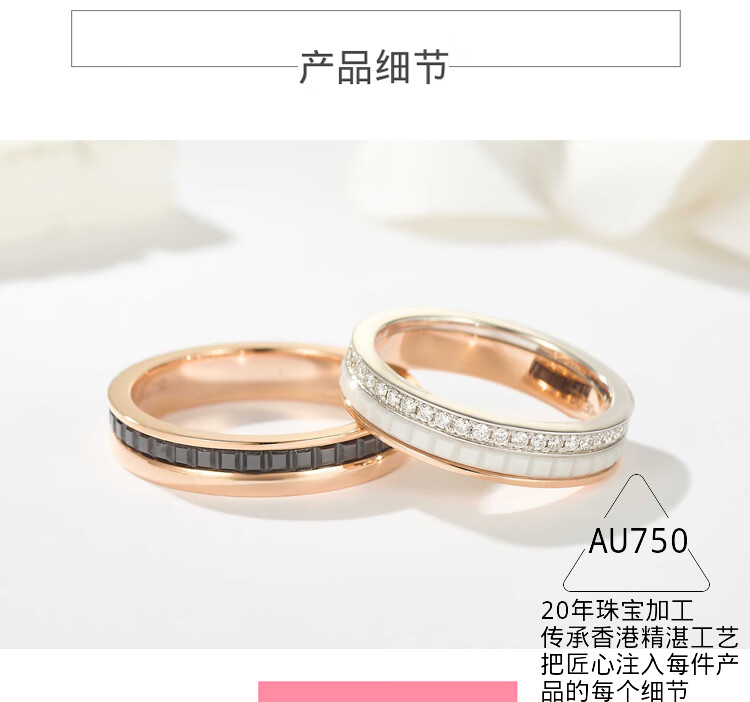Chishe 18K rose gold nail pattern ceramic ring natural diamond women's ring two-color gold platinum couple ring Au750 18K rose gold black ceramic (light gold) women's size 10