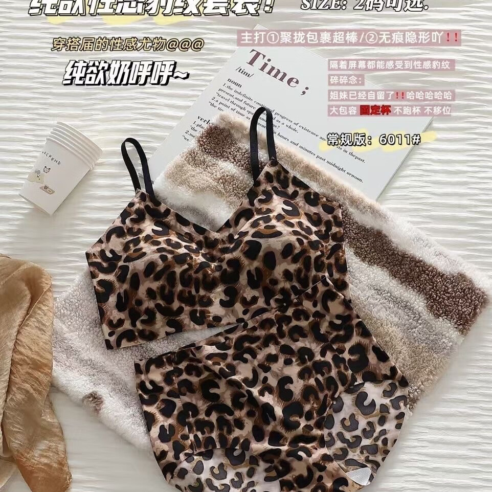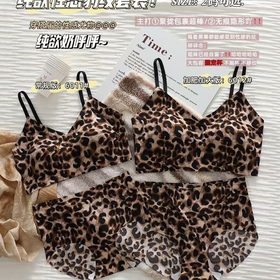 Yalu Sexy Bra New Leopard Print Push-Up Underwear Set Underwire Personalized Seamless Internet Celebrity Sagging Leopard Print Bra Underwear Set One Size Small Size 100-140Jin Jin is equal to 0.5 kg