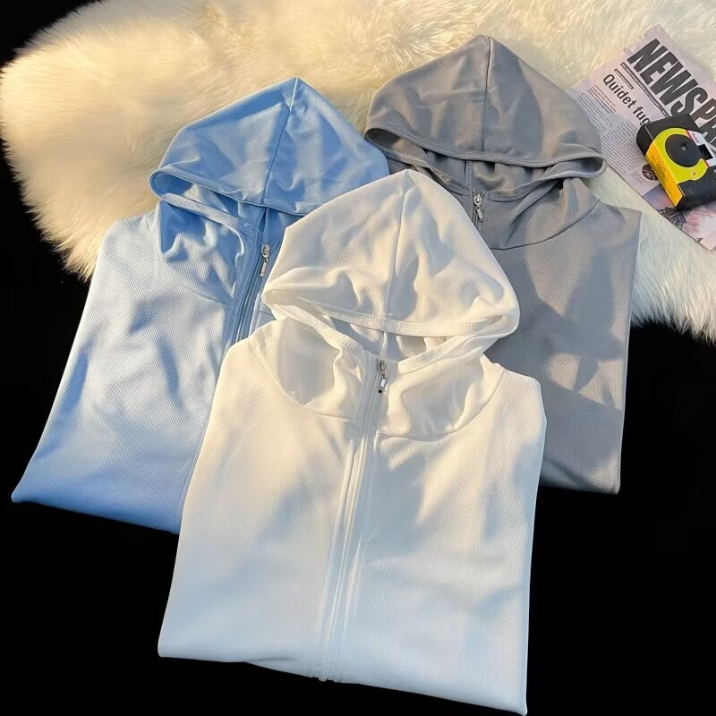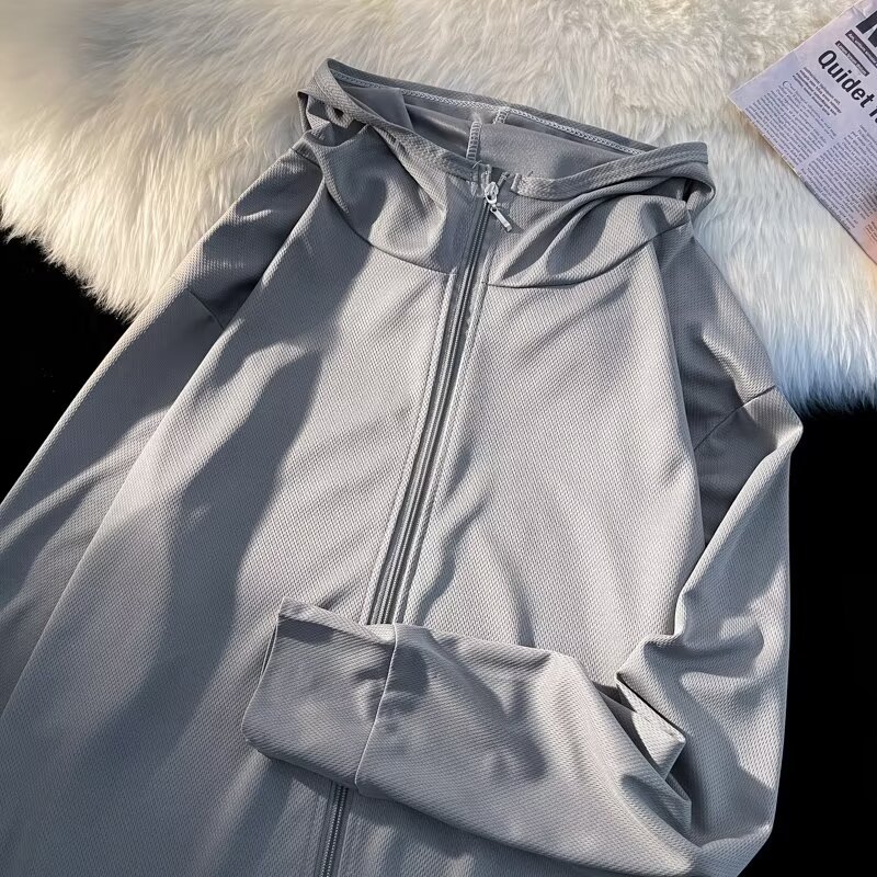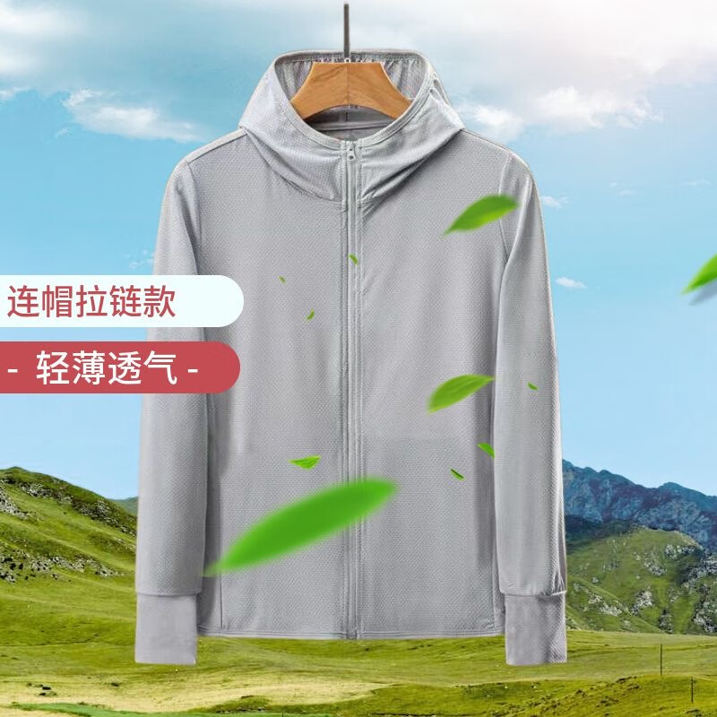 Lightweight and breathable Couple Ice Silk Mesh Sun Protection Clothing Men's Summer Outdoor Cycling Thin Jacket Outdoor Fishing Clothing Breathable Gray XL Recommended 125-140Jin Jin equals 0.5 kg