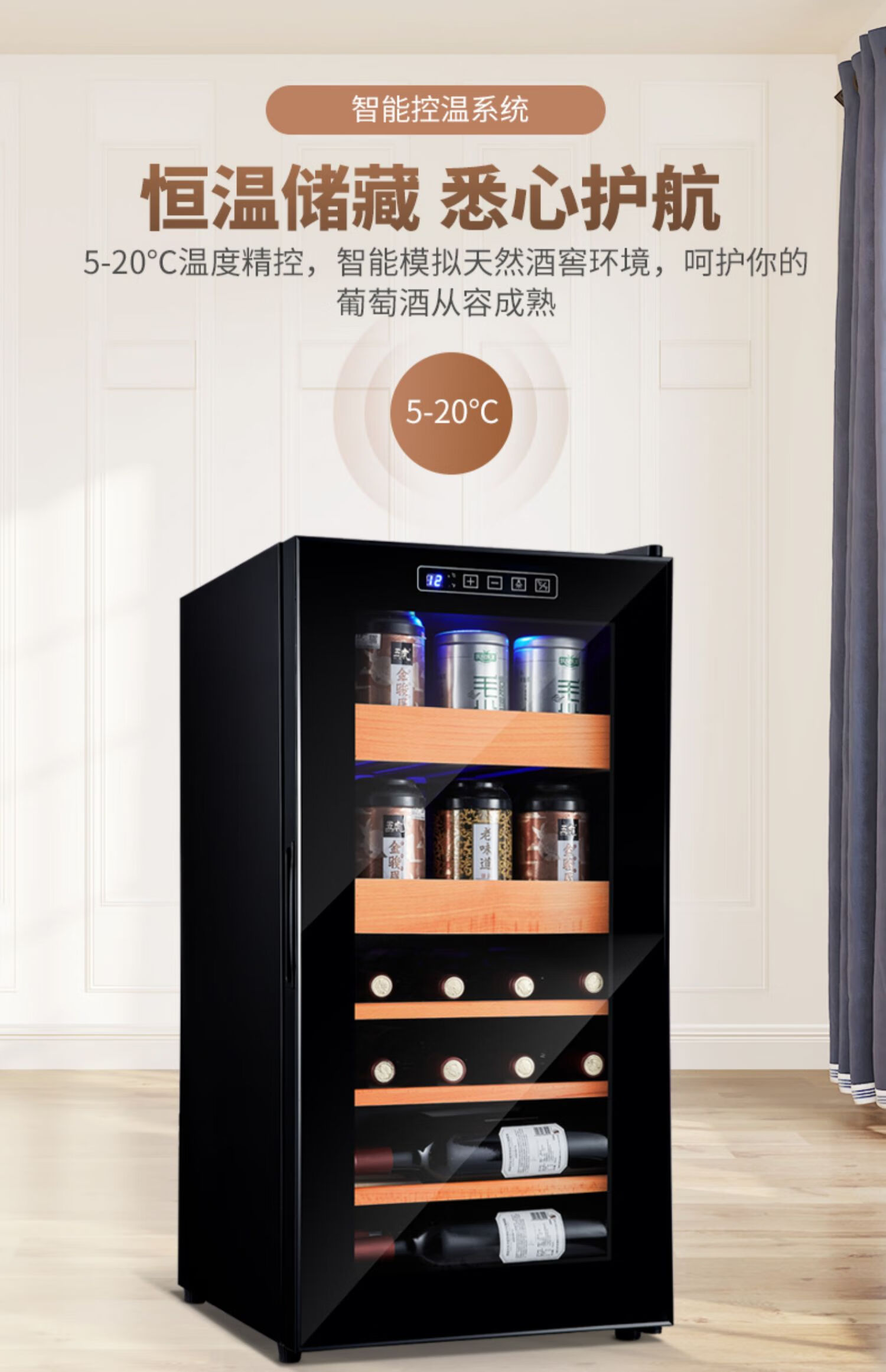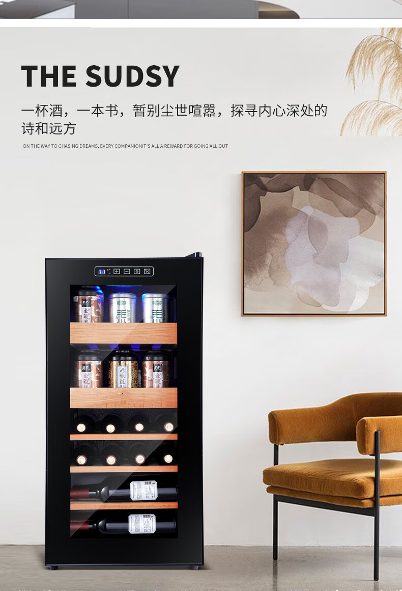 Curtis (KEDISI) air-cooled compressor red wine cabinet constant temperature household tea cabinet wine cellar small ice bar box tea refrigerated cabinet stainless steel rack hanging cup + 1.26 meters high