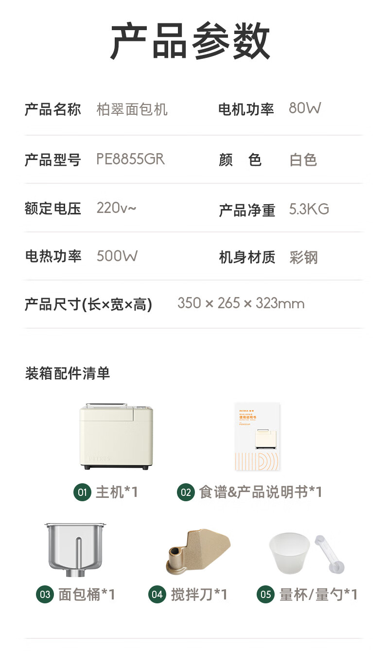 Petrus Petrus Petrus home bread machine multi-functional fully automatic dough fermentation breakfast toast basic model