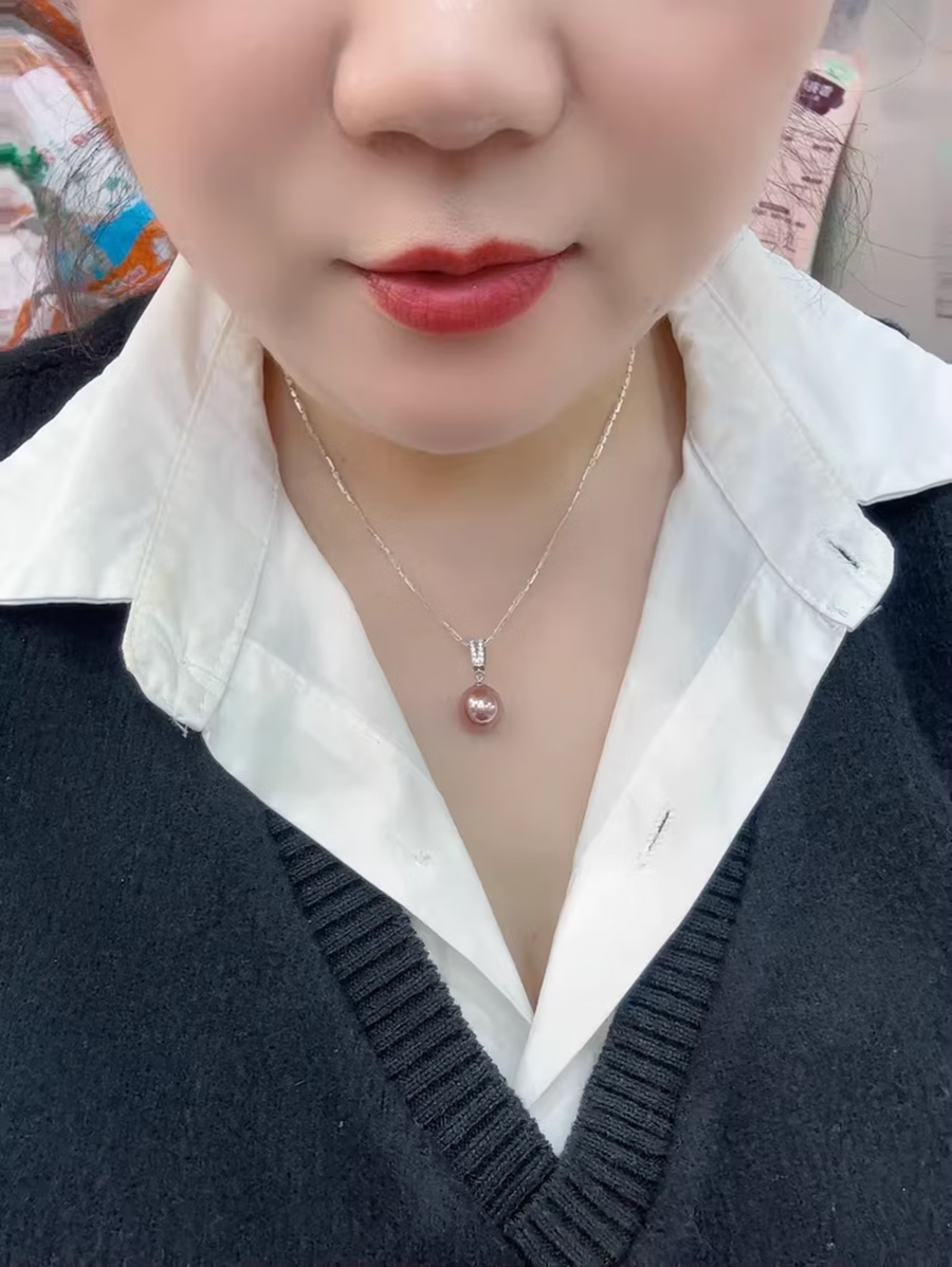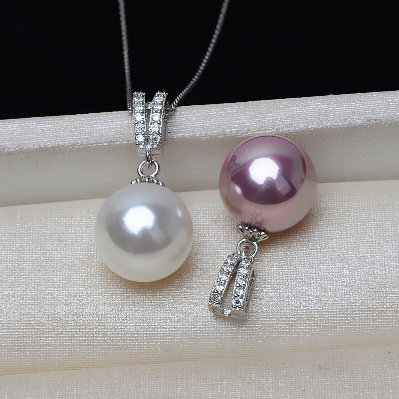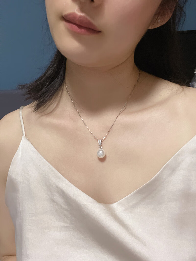Allied shell freshwater pearl pendant necklace s925 sterling silver temperament single shell bead necklace Korean women's versatile jewelry white shell beads (excluding chain) 10-10mm