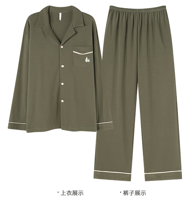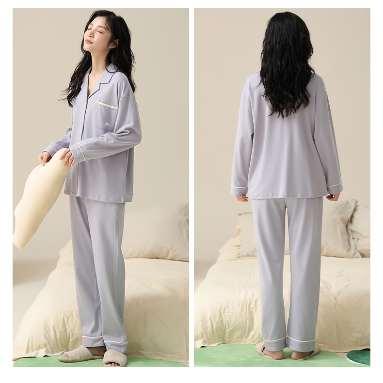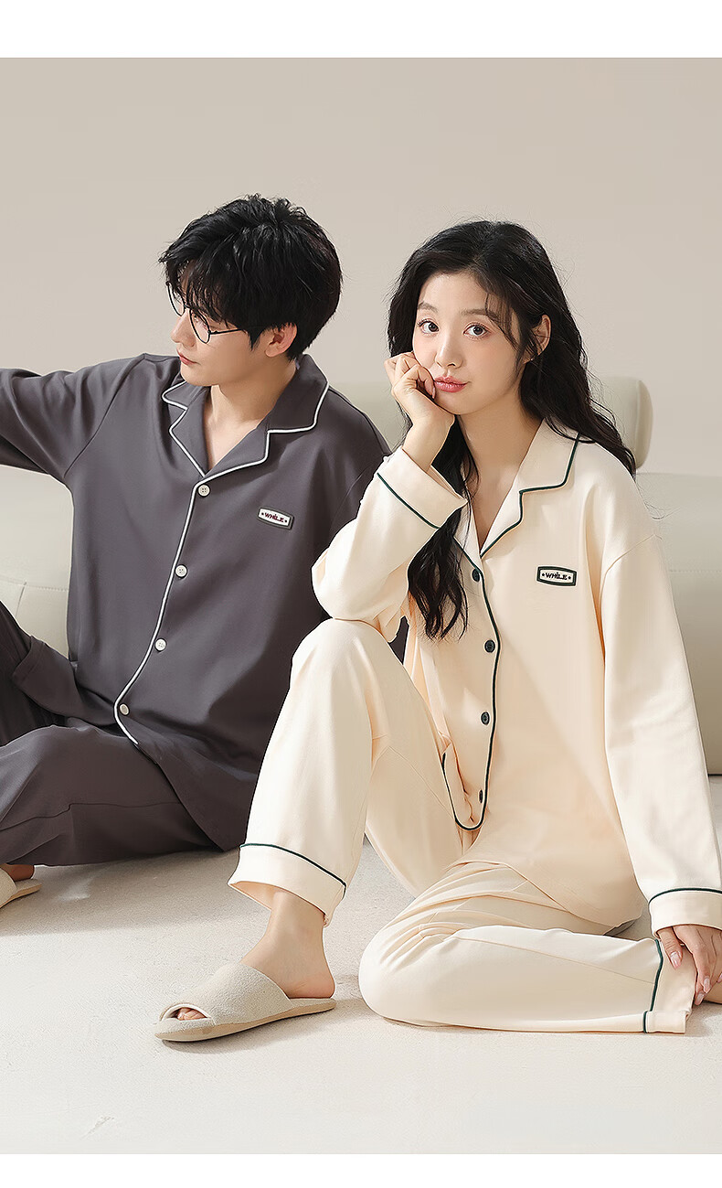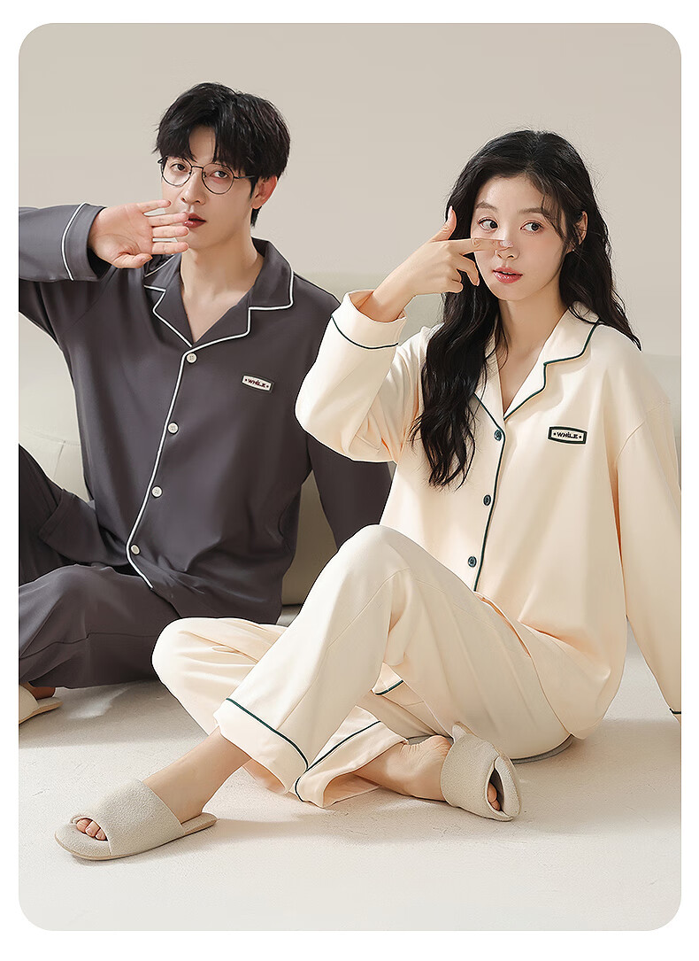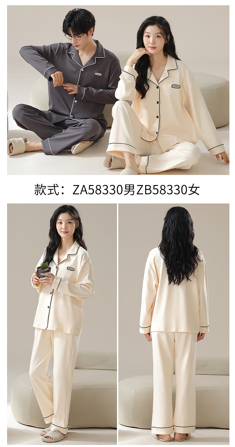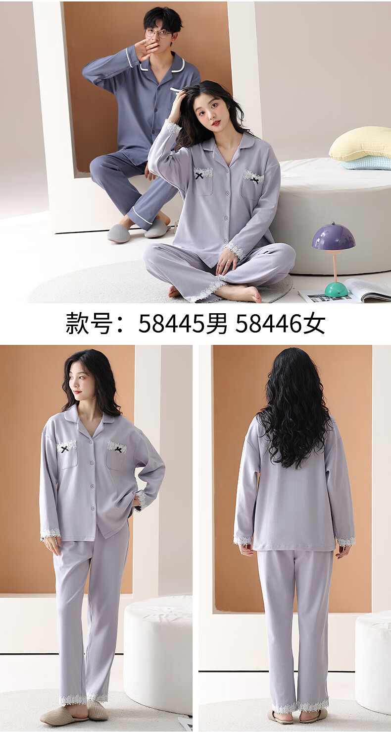 Pure cotton couple's pajamas, summer long-sleeved trousers, cute home clothes for men and women, new cotton suit, air-conditioned room Z58301, women's model XL