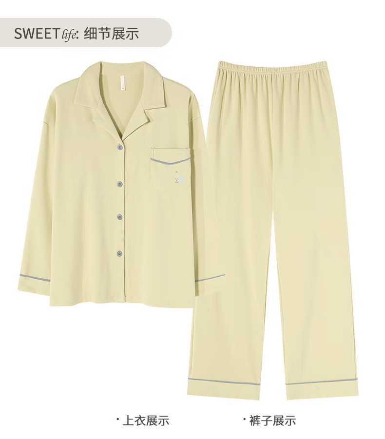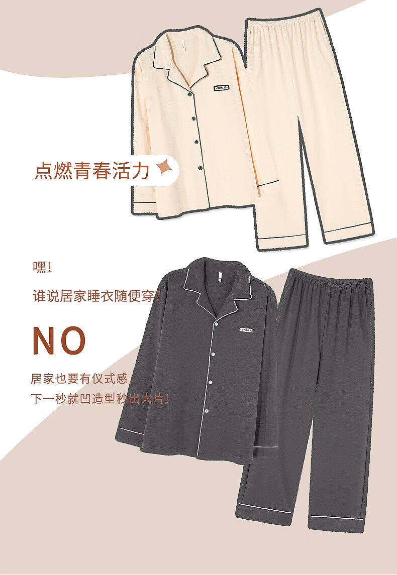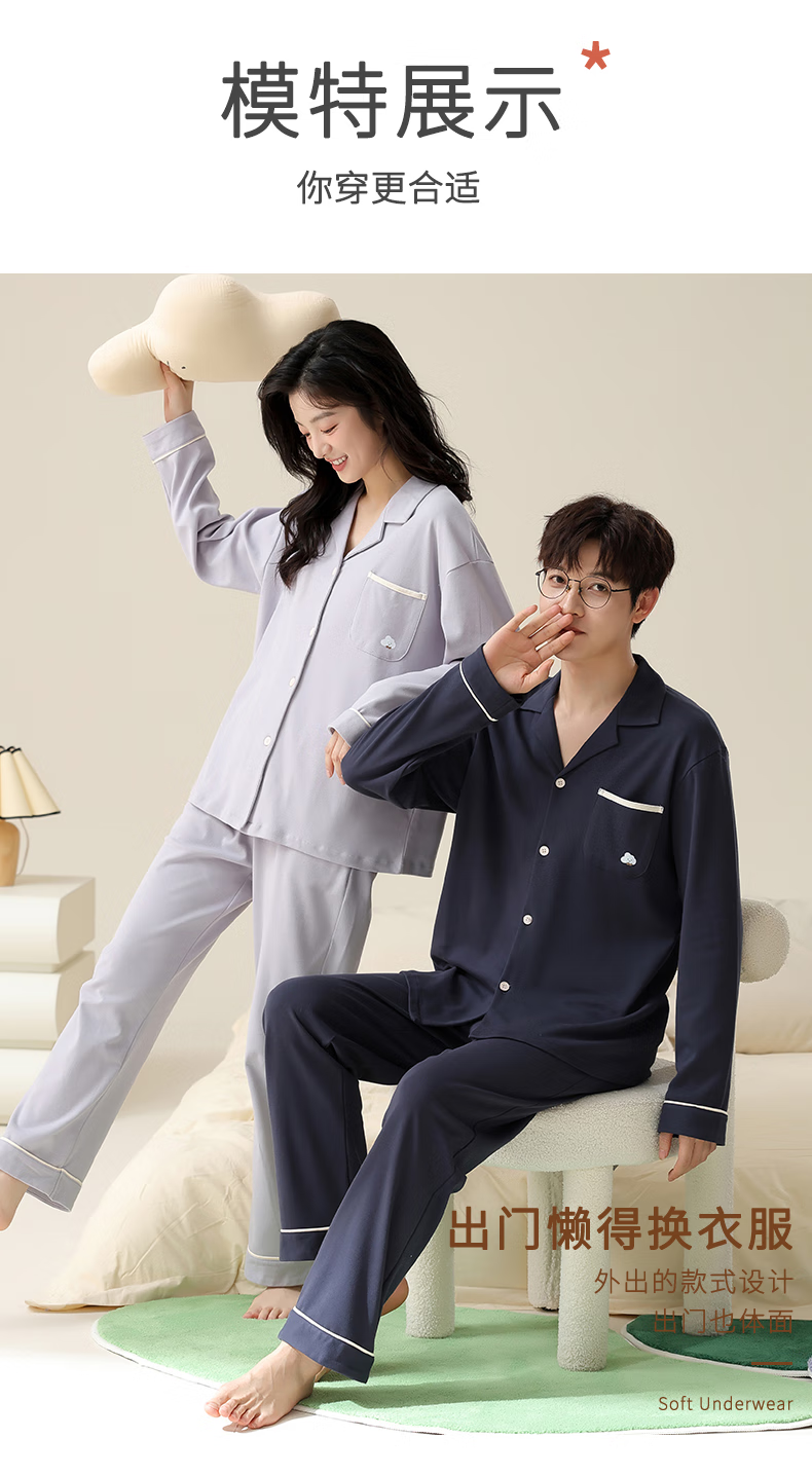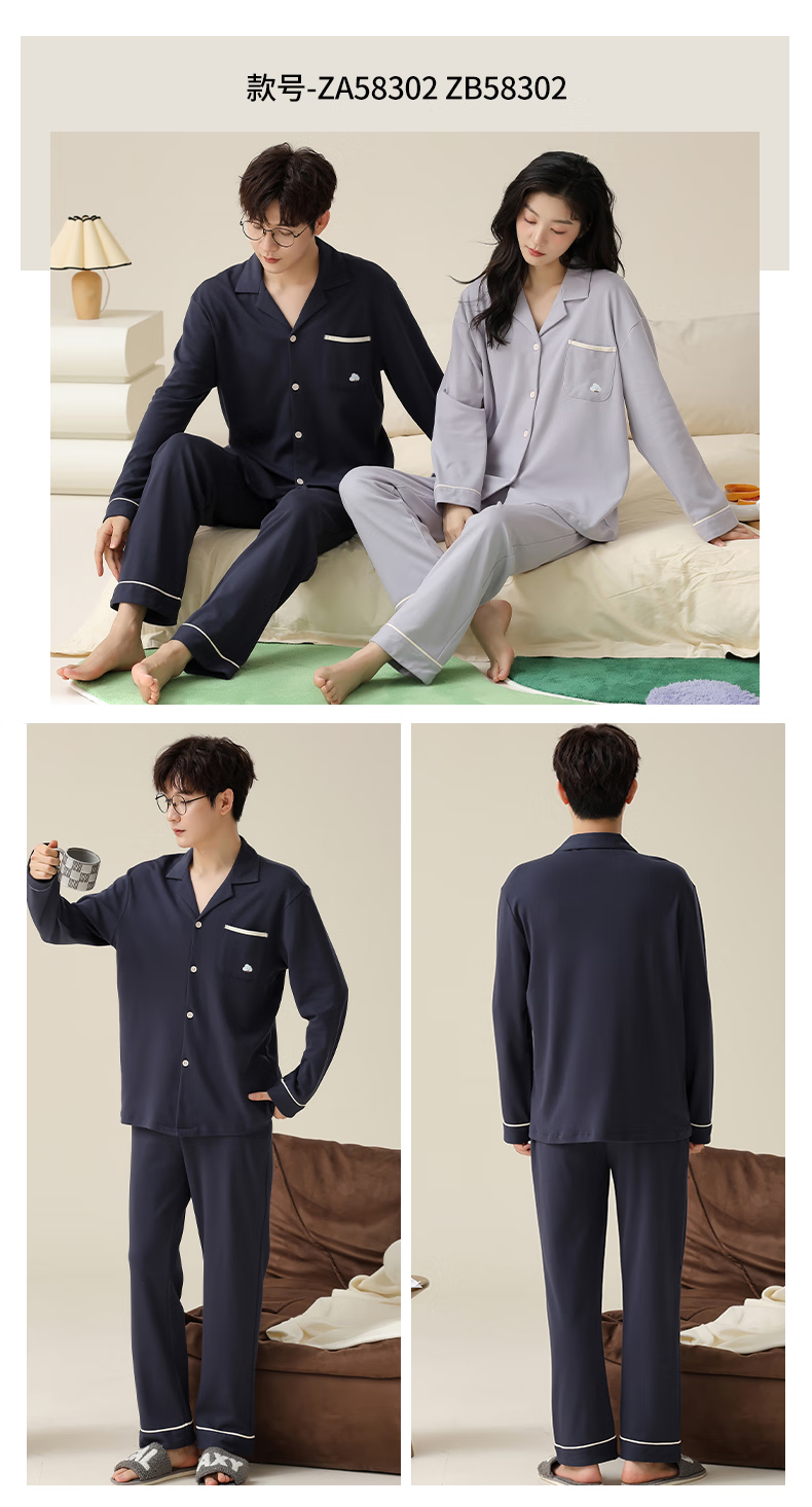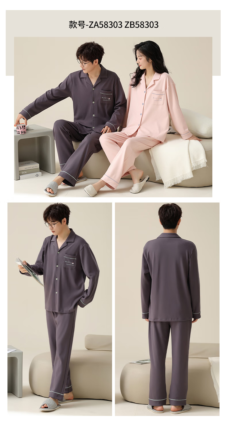 Pure cotton couple's pajamas, summer long-sleeved trousers, cute home clothes for men and women, new cotton suit, air-conditioned room Z58301, women's model XL
