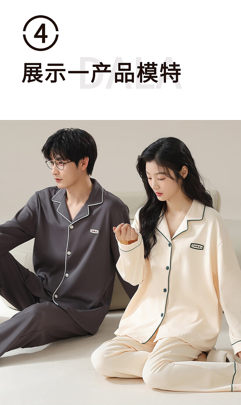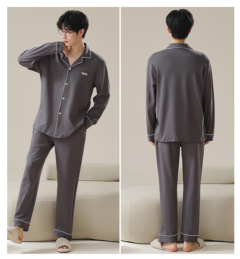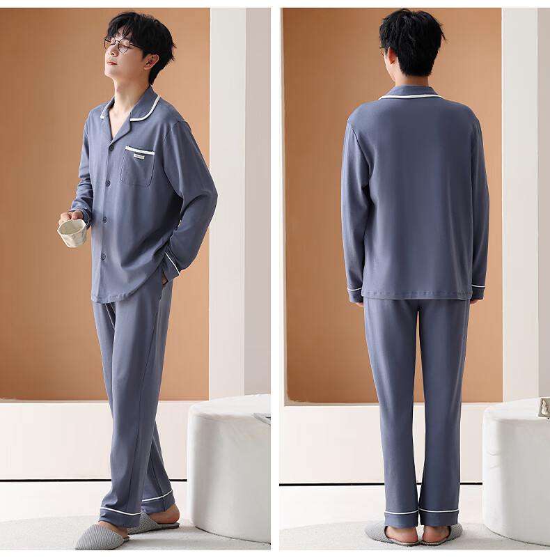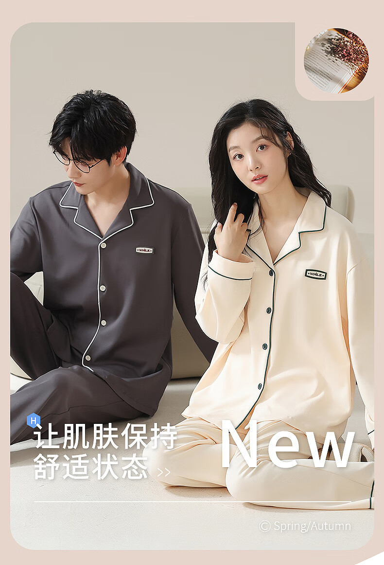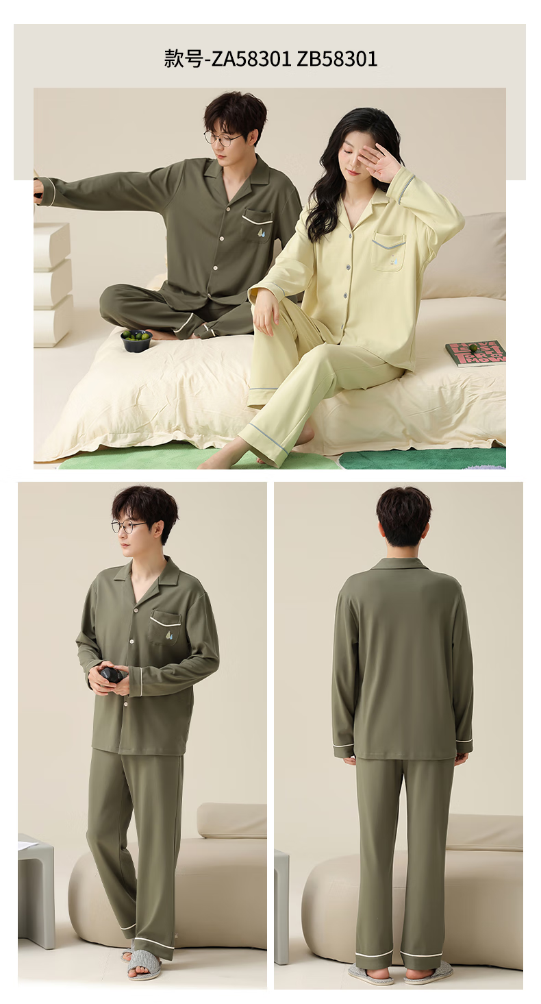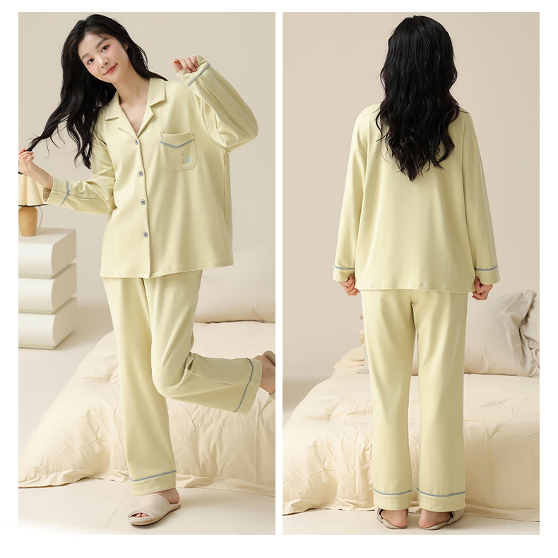 Pure cotton couple's pajamas, summer long-sleeved trousers, cute home clothes for men and women, new cotton suit, air-conditioned room Z58301, women's model XL