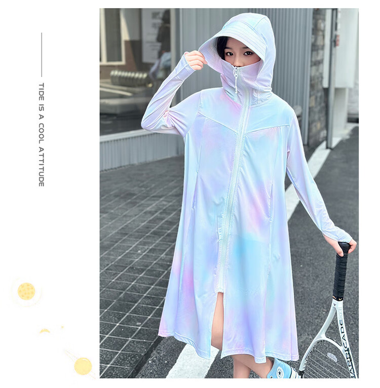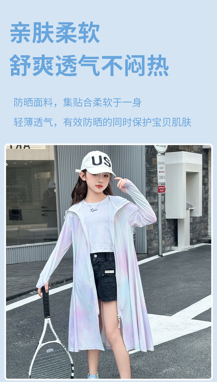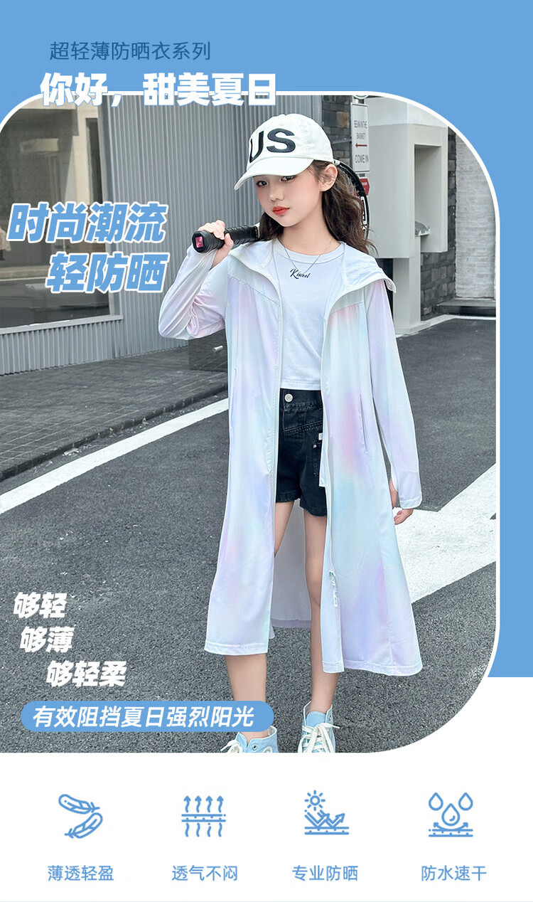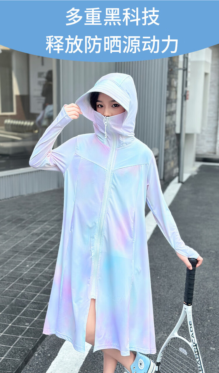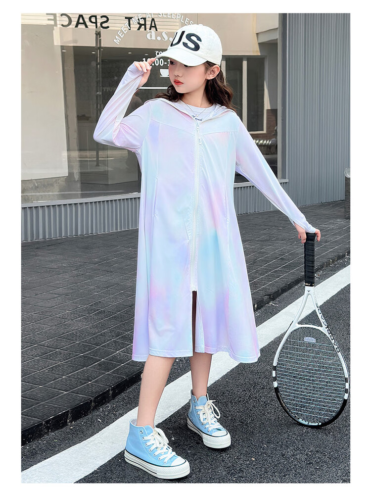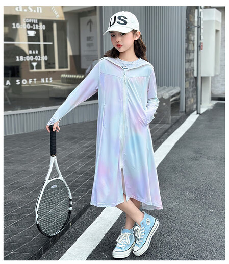 Girls' sun protection clothing summer 2025 new full body big children's summer wear thin jacket children's long sun protection clothing gradient color 150 cm
