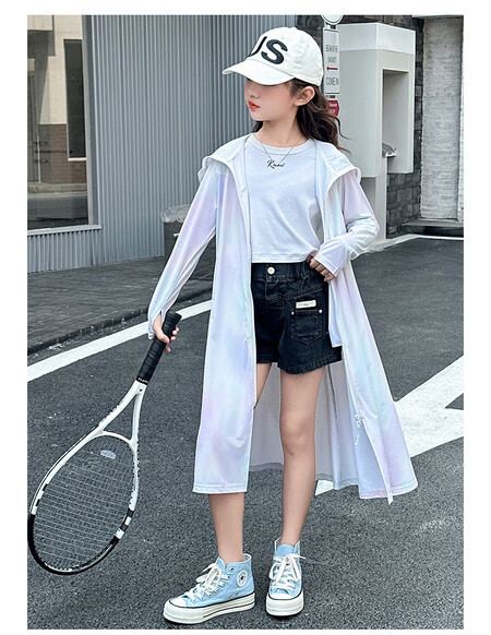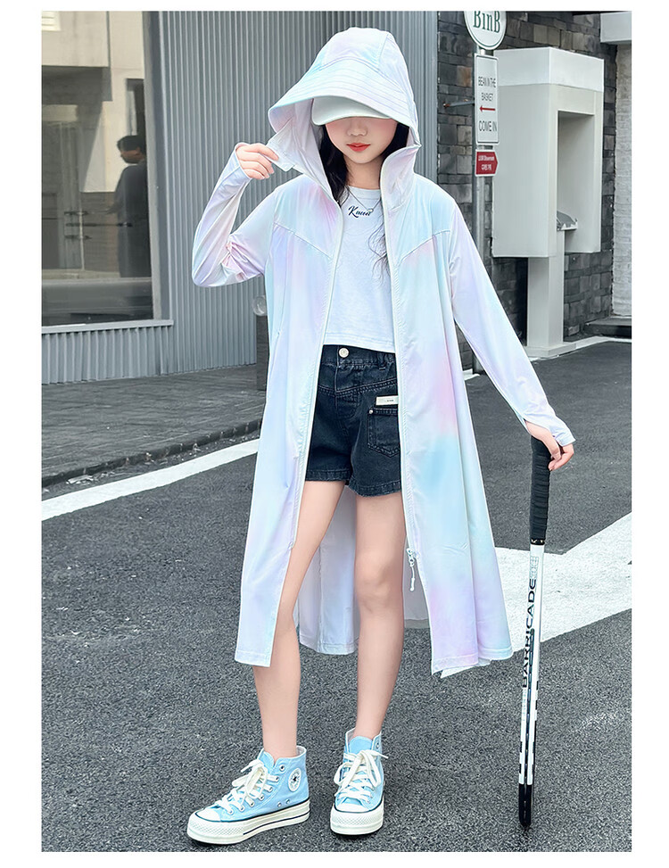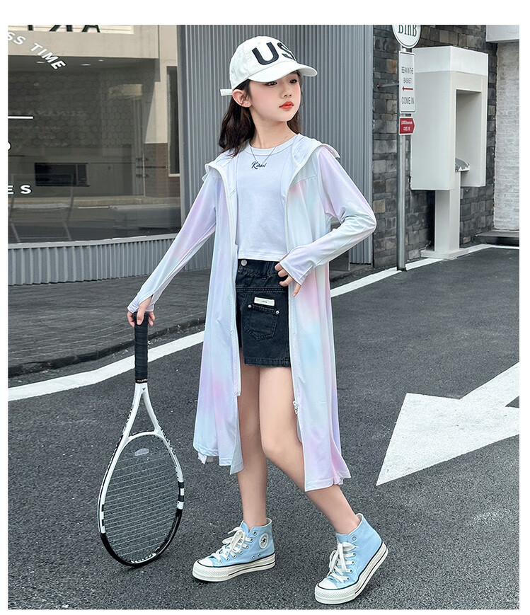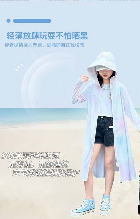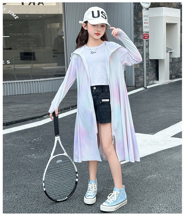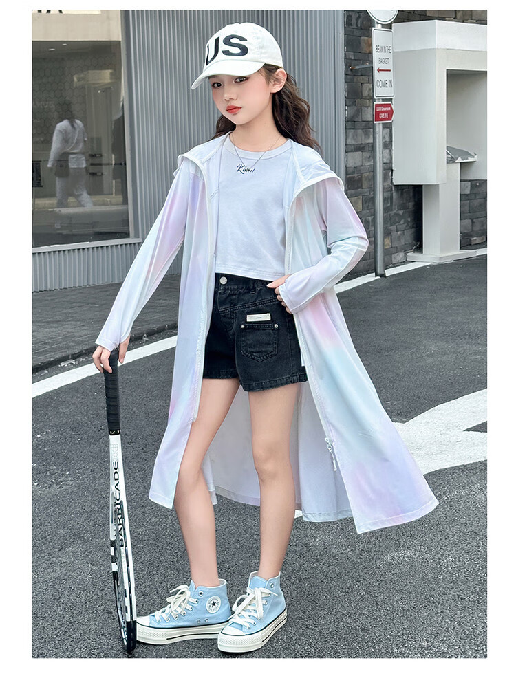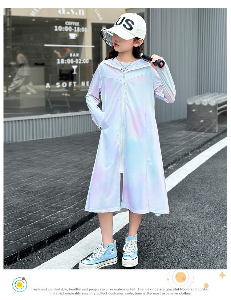Girls' sun protection clothing summer 2025 new full body big children's summer wear thin jacket children's long sun protection clothing gradient color 150 cm