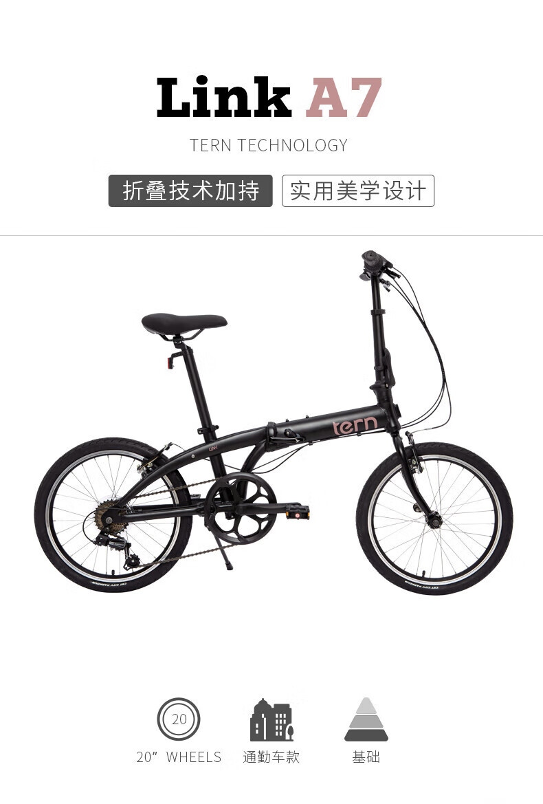 TERN tern Link A7 Bicycle Folding Bike for Adults Ultra-Lightweight and Portable Link A7 Nürburgring Silver - Suitable for Height 142 - 20" x 20"