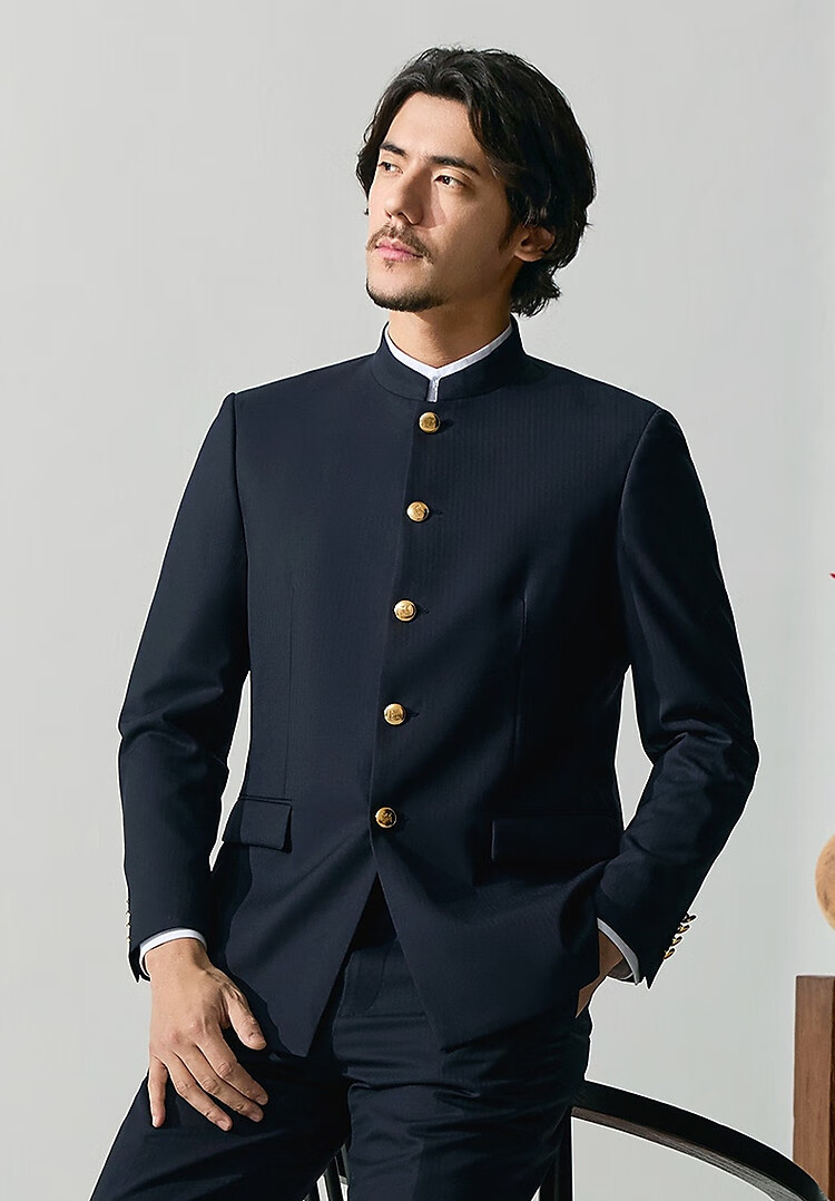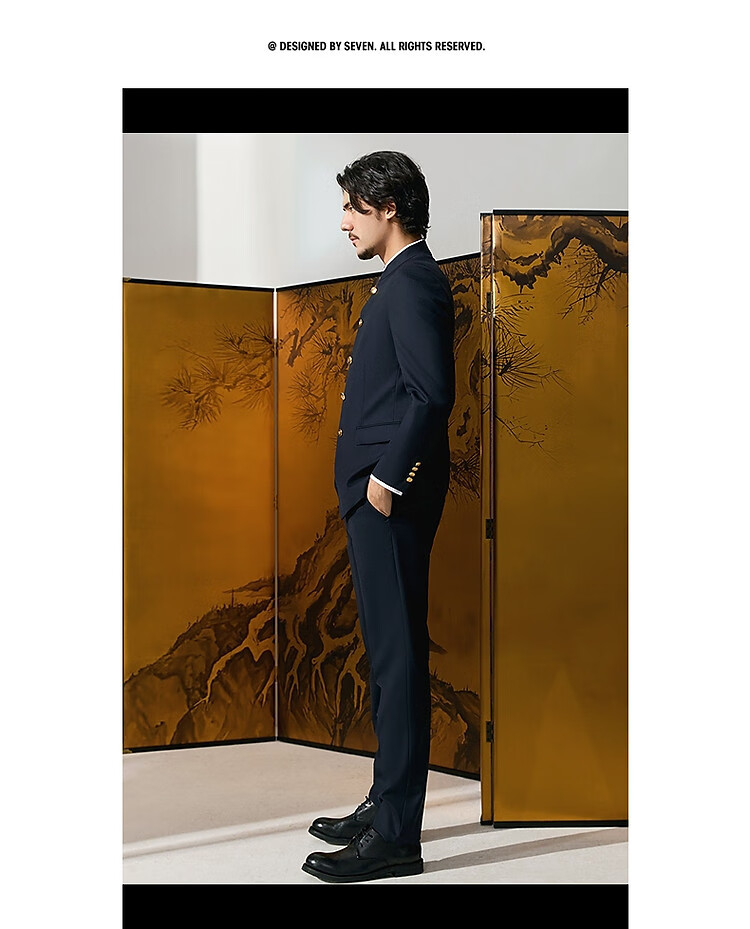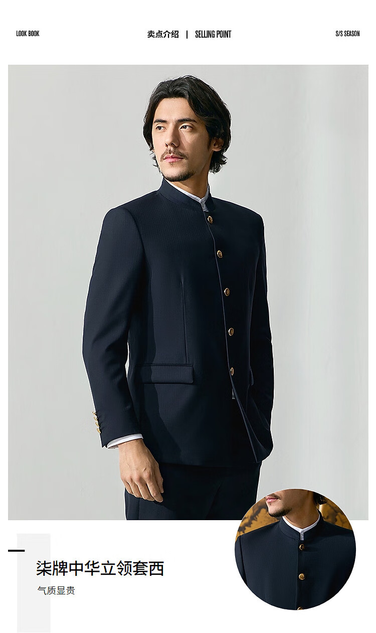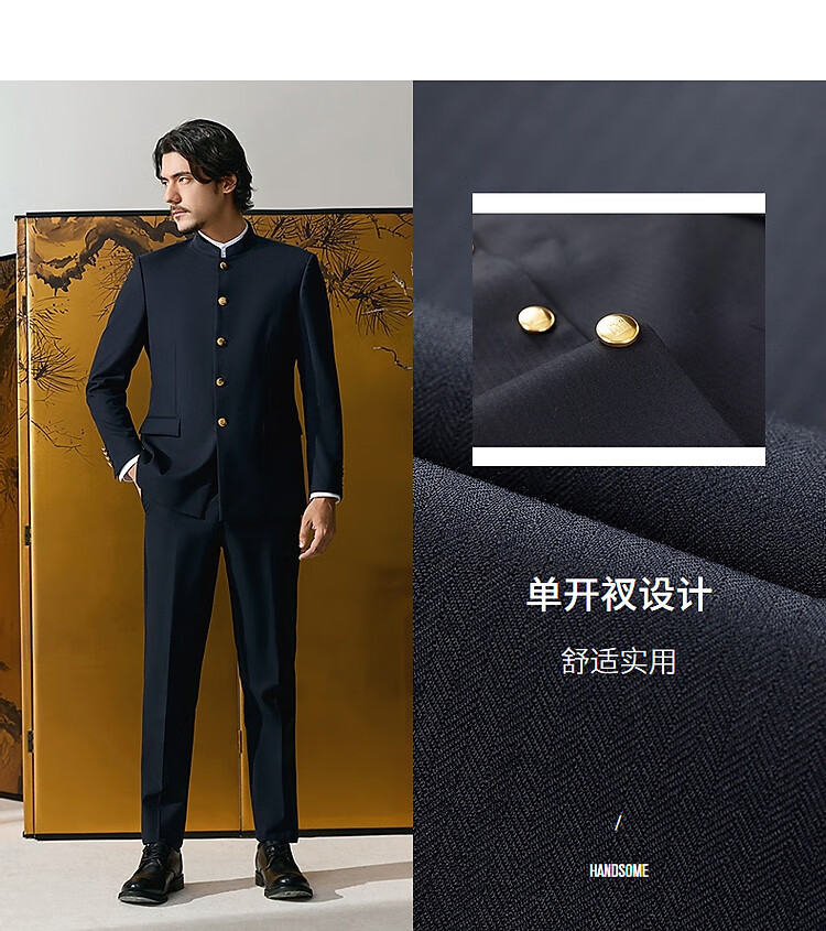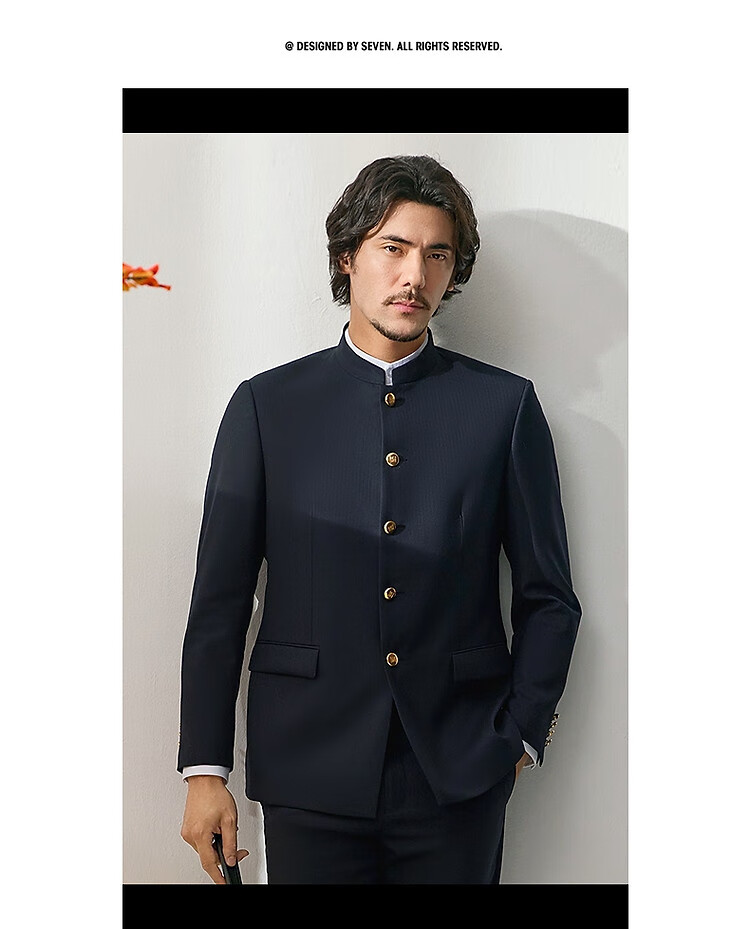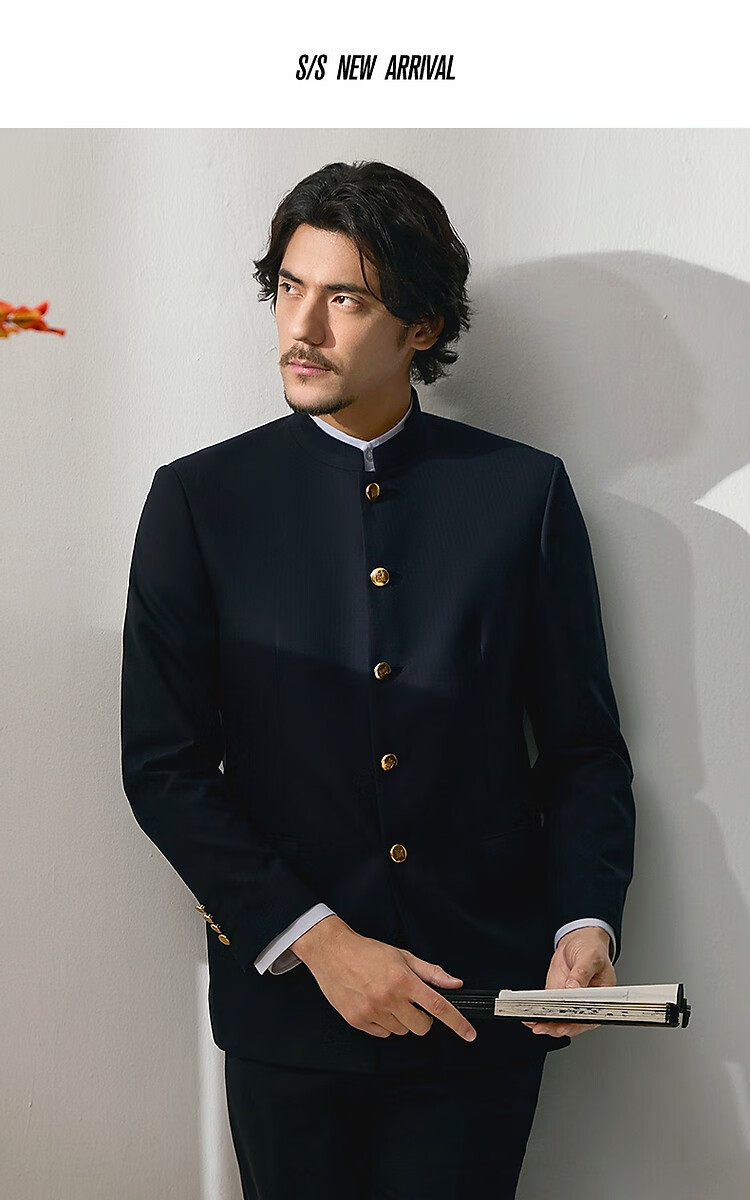 Qipai Chinese tunic woolen suit men's 2025 autumn new style middle-aged men's Chinese stand-up collar business suit dress Tibetan blue Chinese stand-up collar 175B B48 (175/96B)