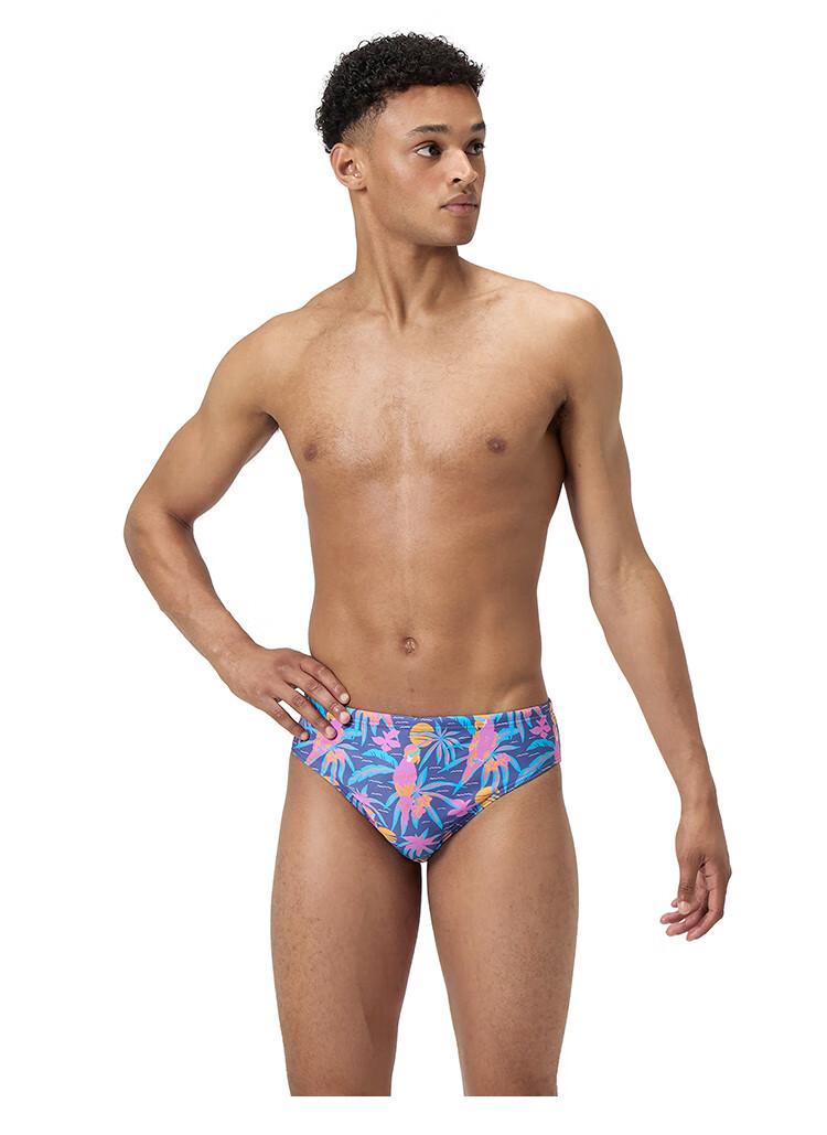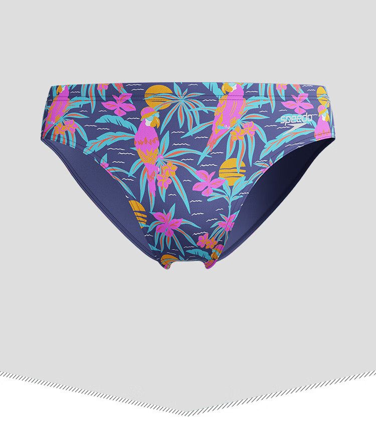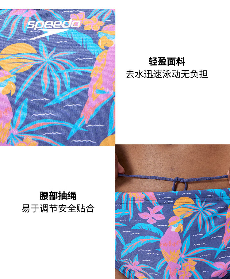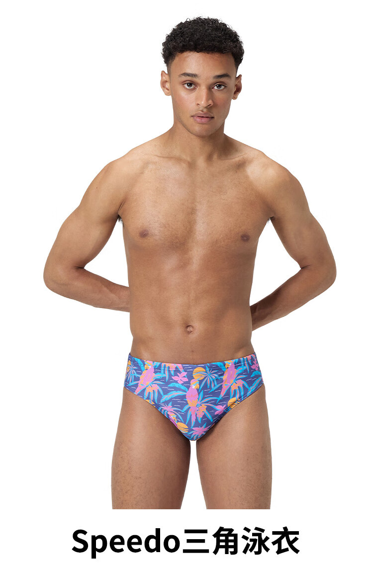 速比涛(Speedo)男士8厘米印花三角泳裤抗氯速干训练款舒适竞速专业游泳裤 蓝色印花 L (36)