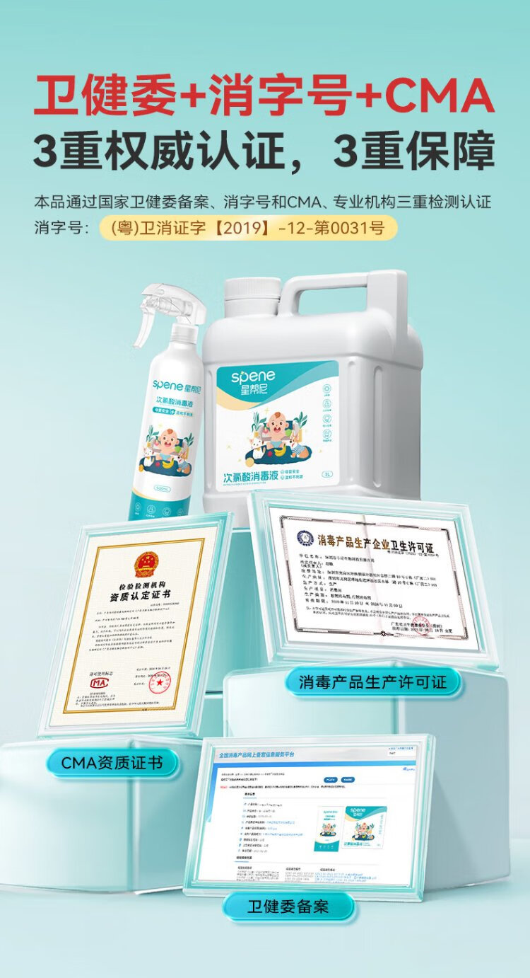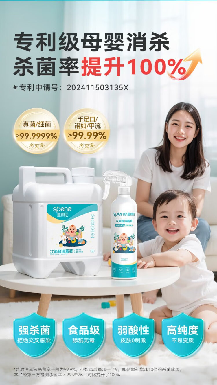 Xingbangni hypochlorous acid disinfectant for mother and baby, special for children and babies, household food-grade baby toy climbing mat sterilization spray 3L+S8 disinfection gun, disinfection and labor-saving combination
