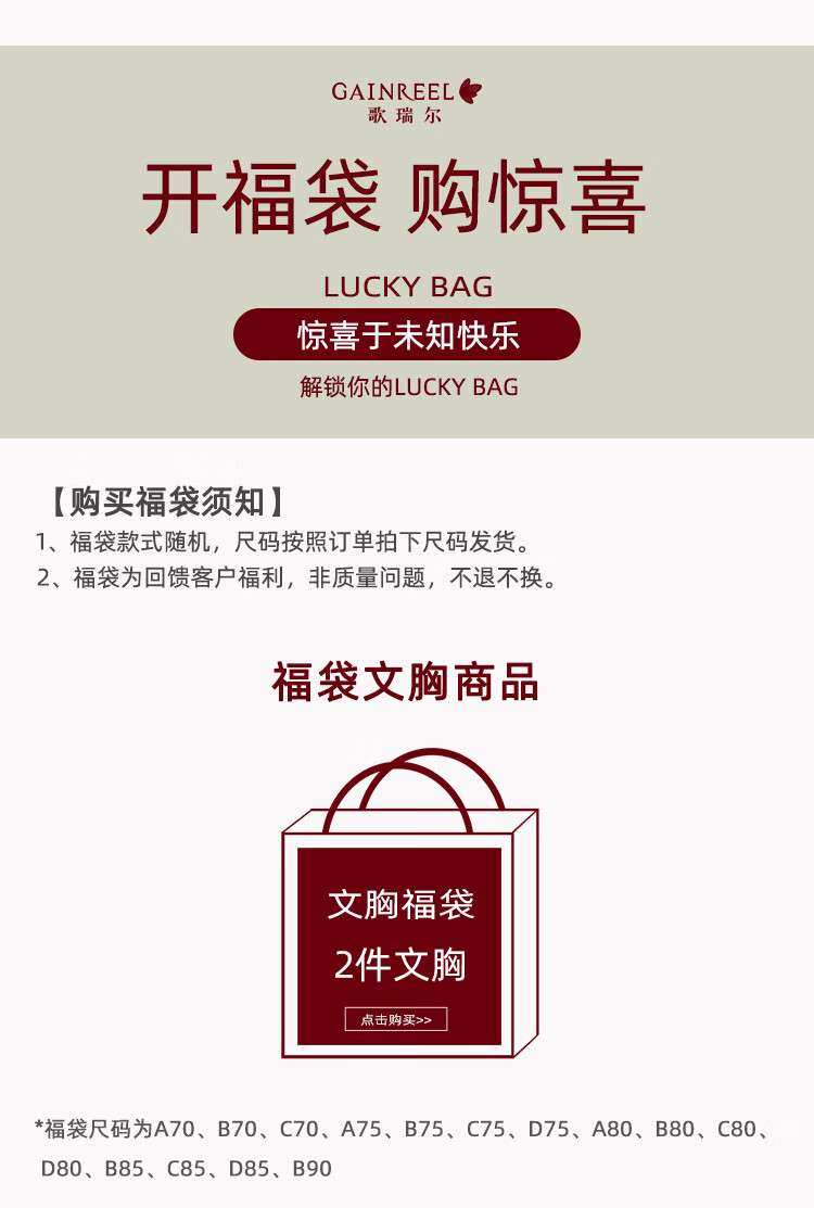 Gainreel 2-piece bra set, blind box style, random color, lucky bag bra, small breast push-up bra, big breasts appear smaller, random color 80B