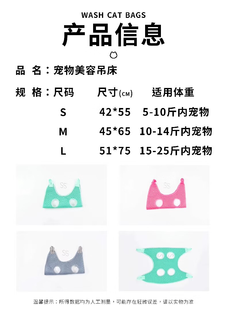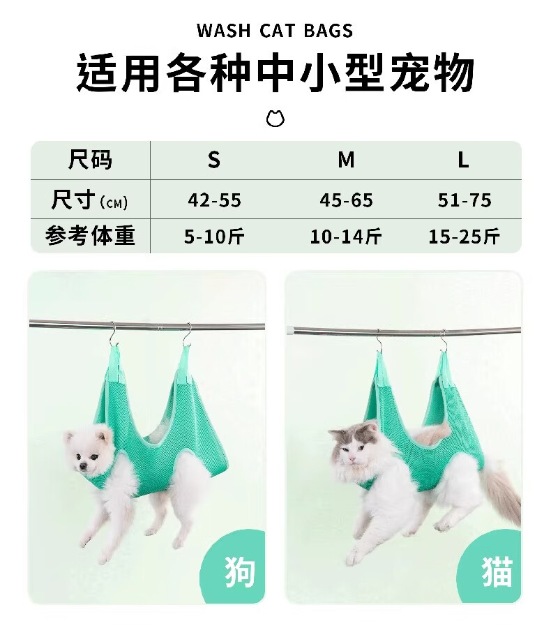 Bellojia dog hammock nail clipping pet cat washing cat bag bathing hanging anti-breakaway fixed artifact anti-scratch bite anti-fall peach pink hanging type free hook M-recommended 10-14Jin Jin equals 0.5 kg