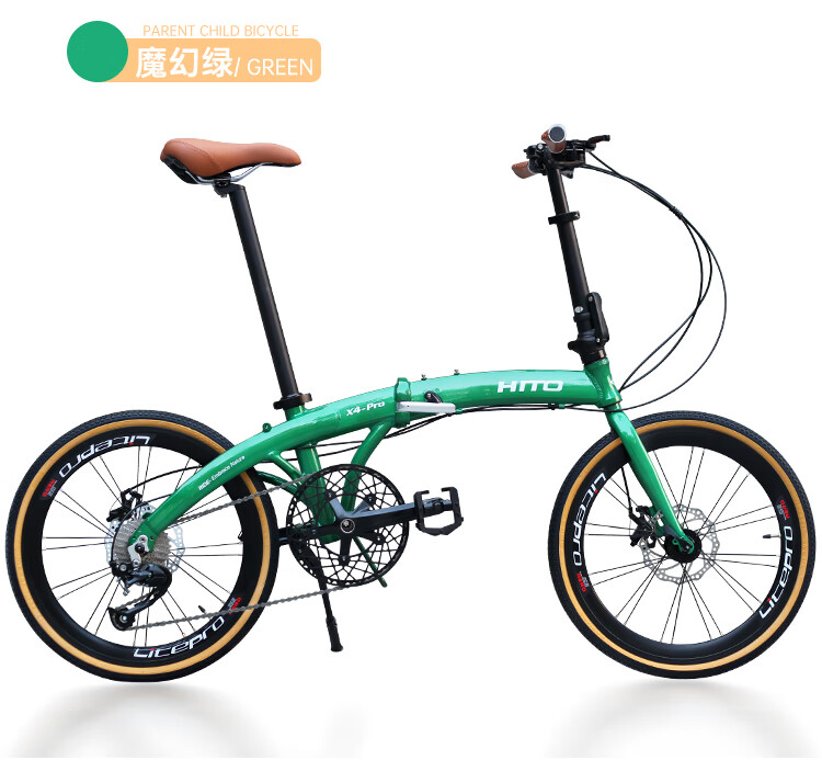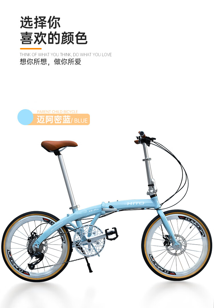 HITOMORROW German HITO 20/22-inch aluminum alloy folding bicycle ultra-light 7/9 speed with child mother, titanium color - aluminum alloy + Shimano + double disc brake 20 inches
