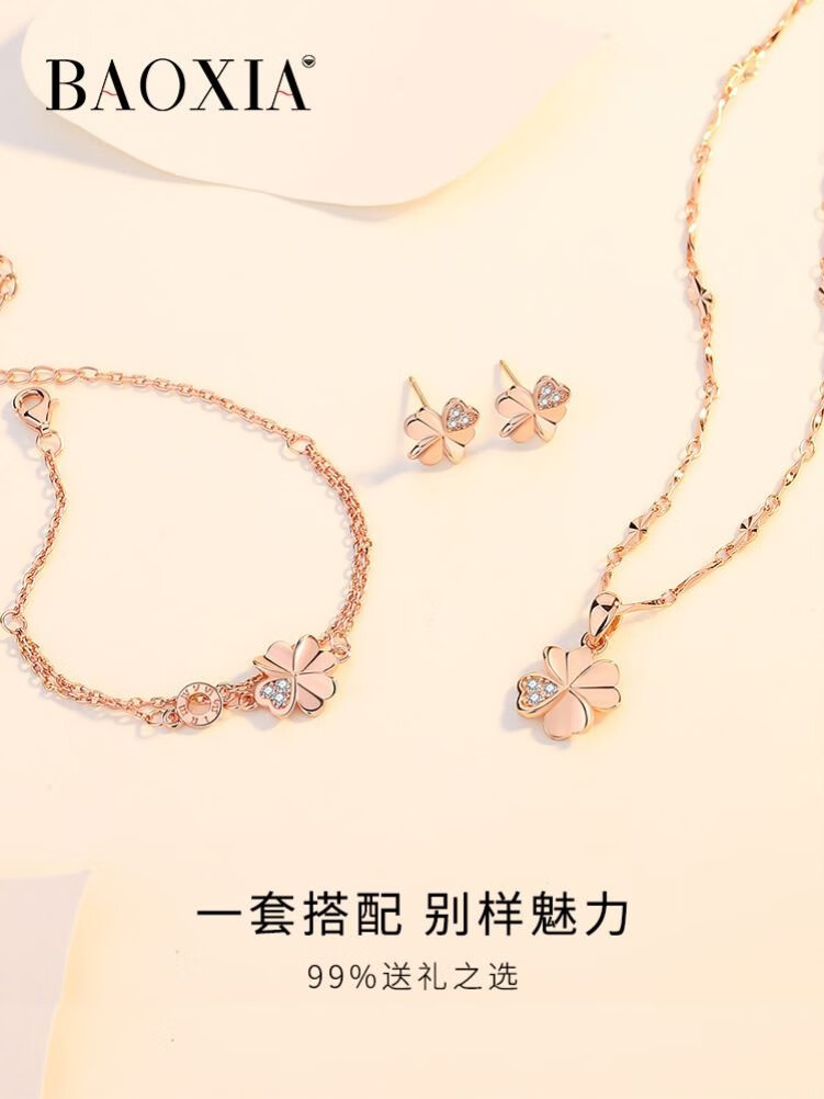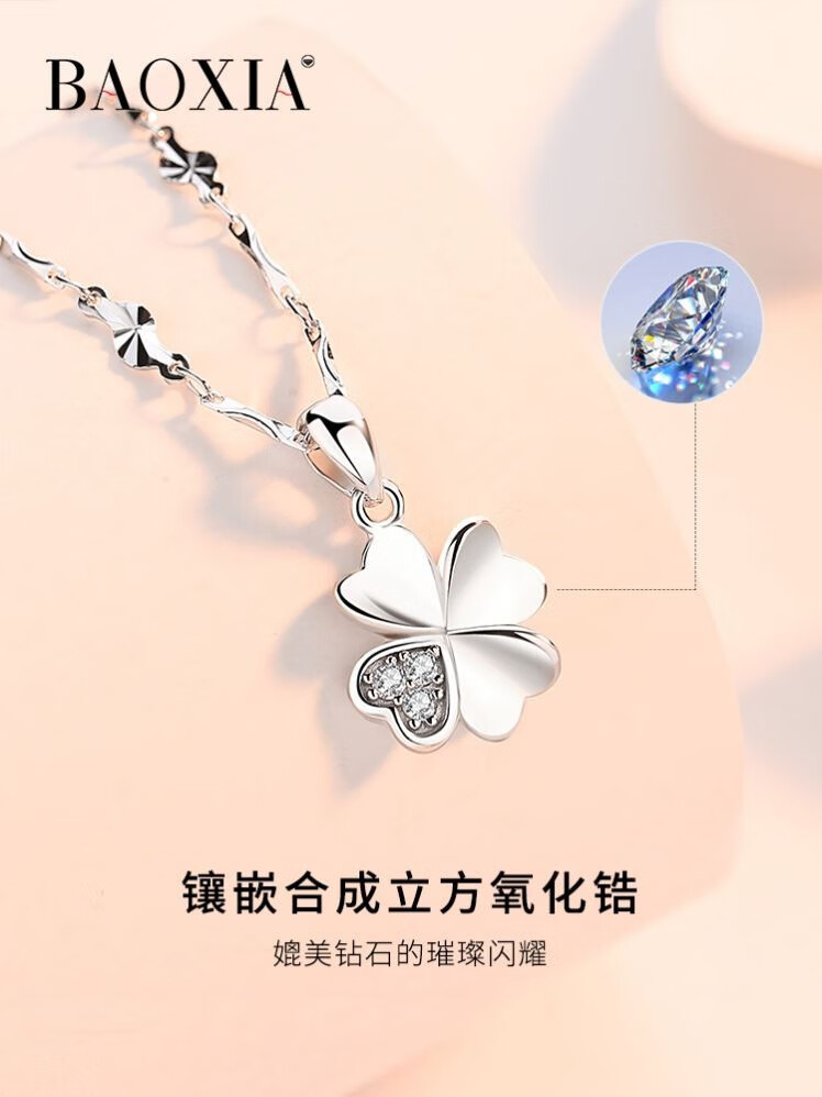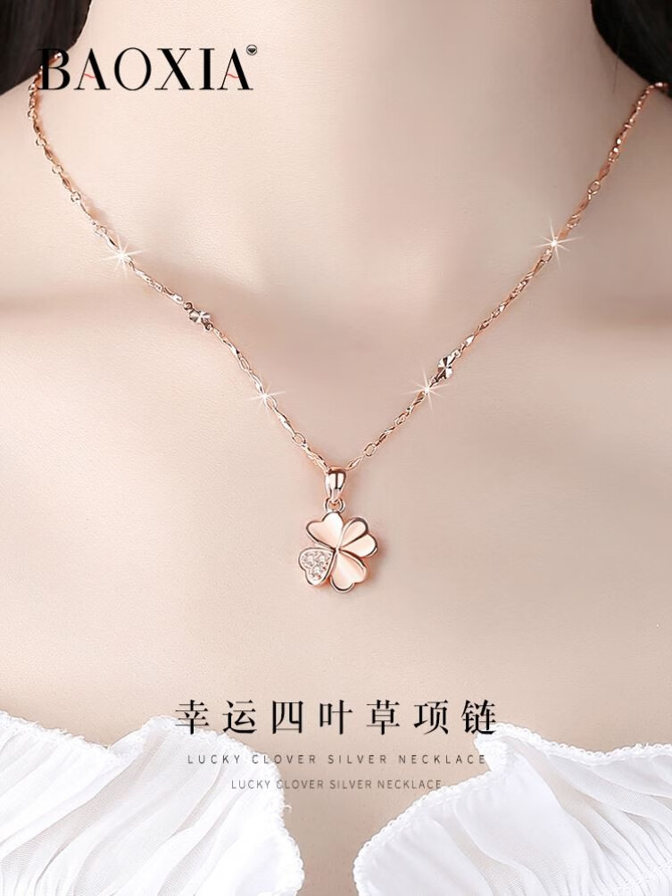 QUAMER925 silver four-leaf clover necklace for women rose gold clavicle chain 2025 new Chinese Valentine's Day gift for girlfriend rose gold necklace (gift box packaging)