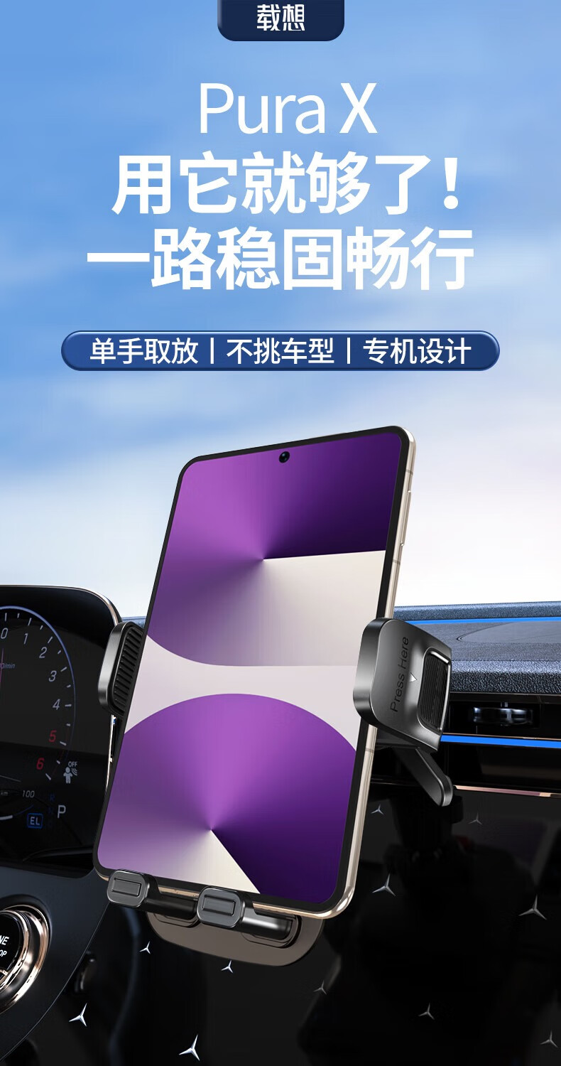 Think about Huawei purax wide folding screen mobile phone car holder Honor Xiaomi oppo small folding screen fat special bracket air outlet type triangle support丨stable and can not fall off special Huawei Pura X wide folding screen mobile phone
