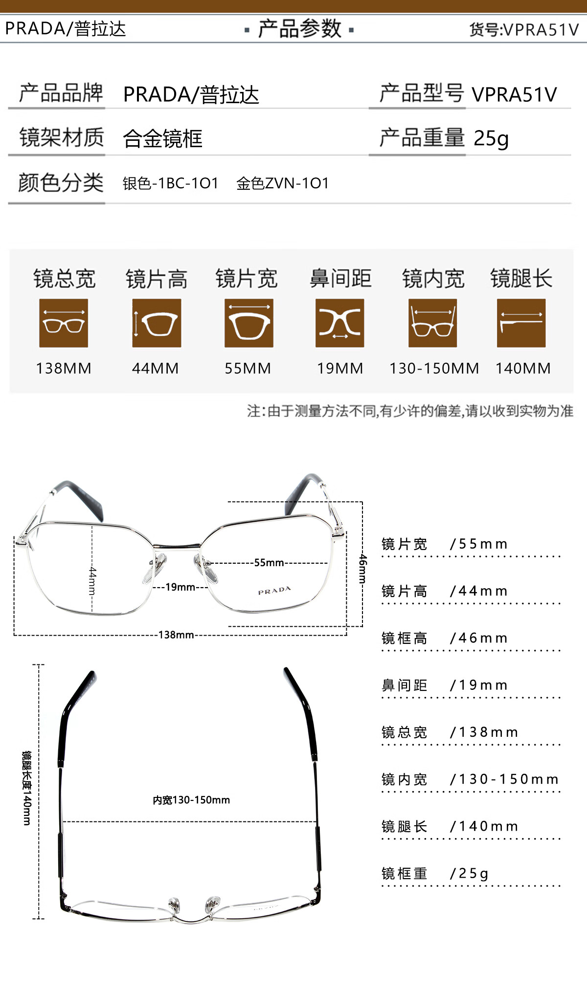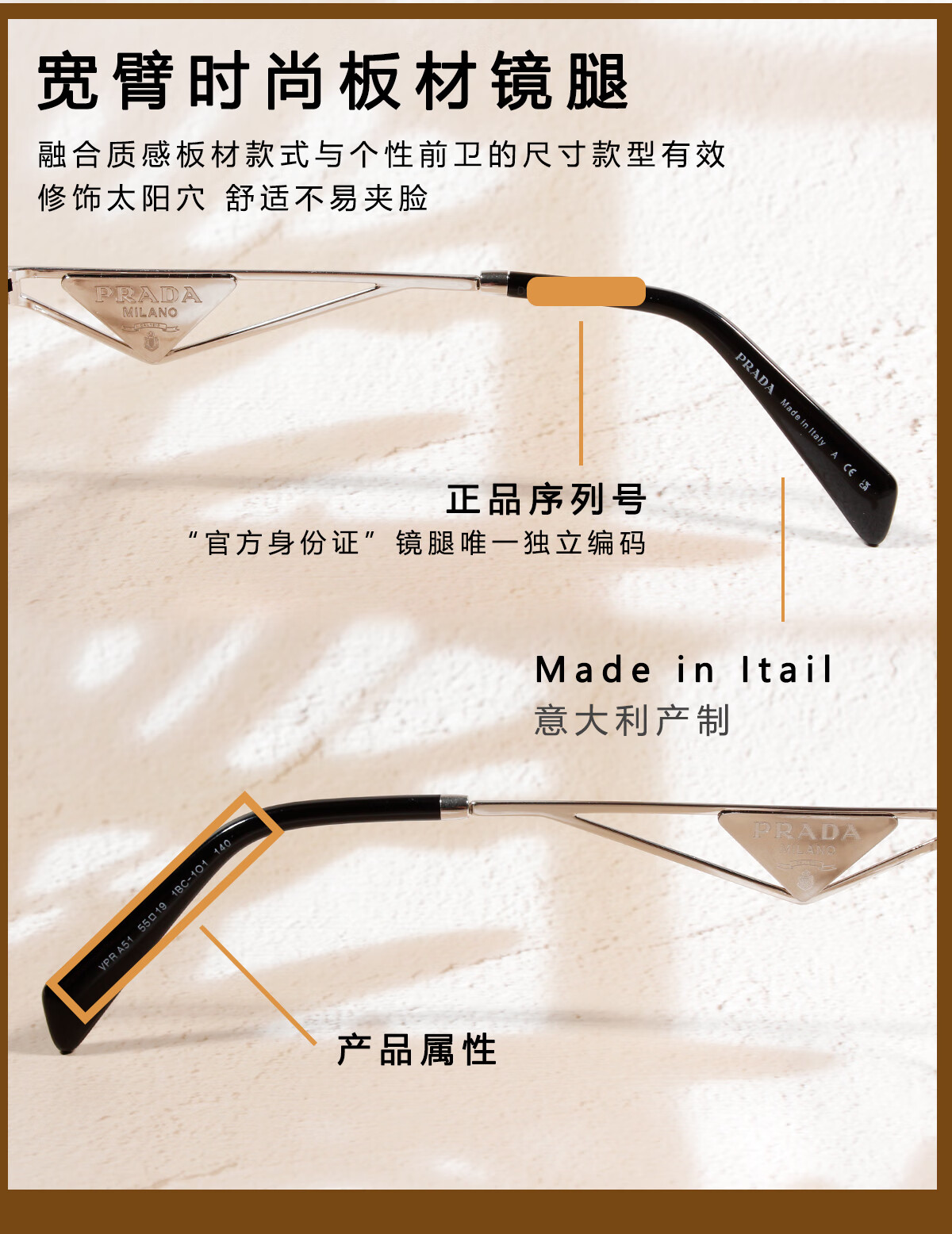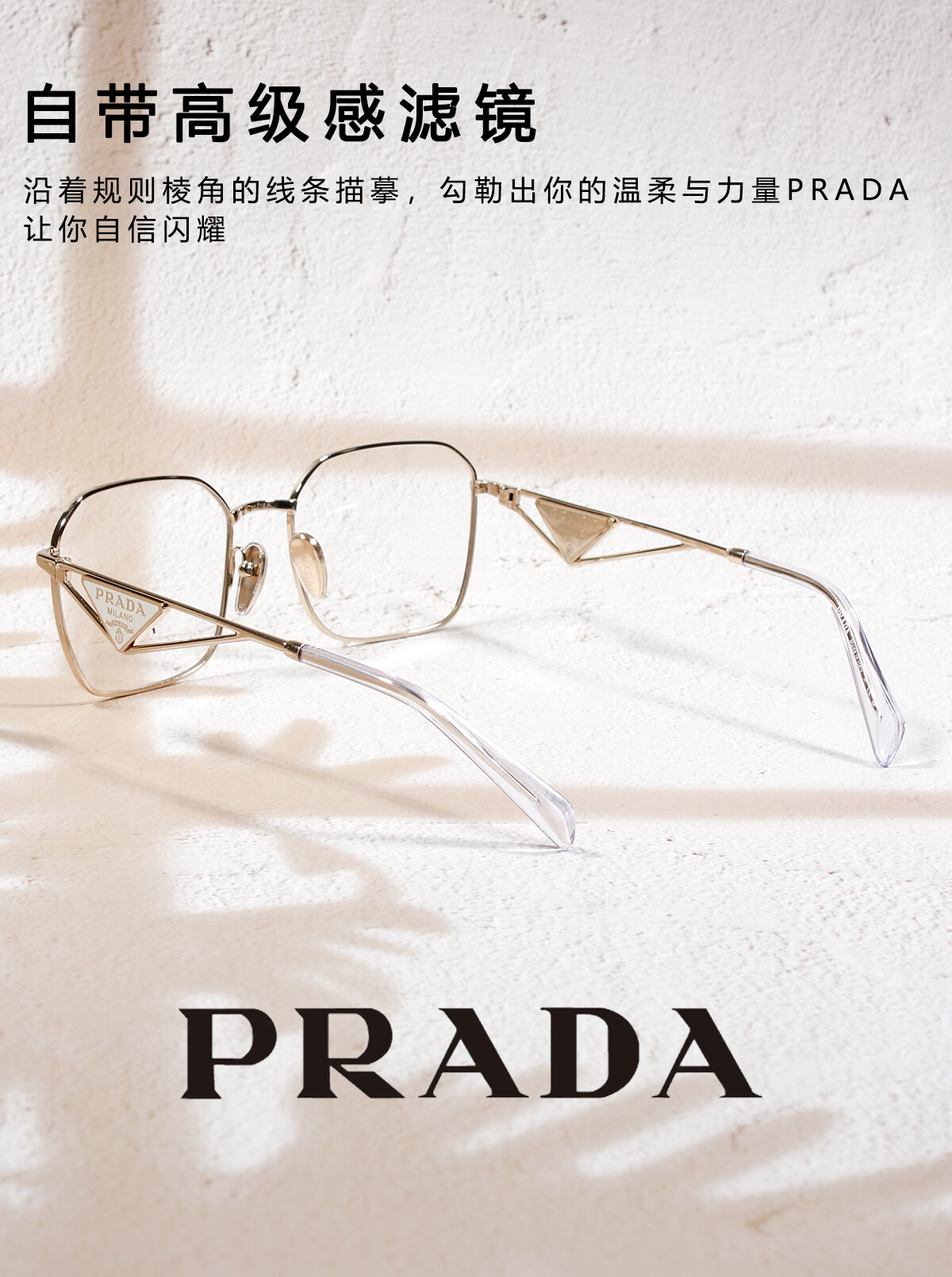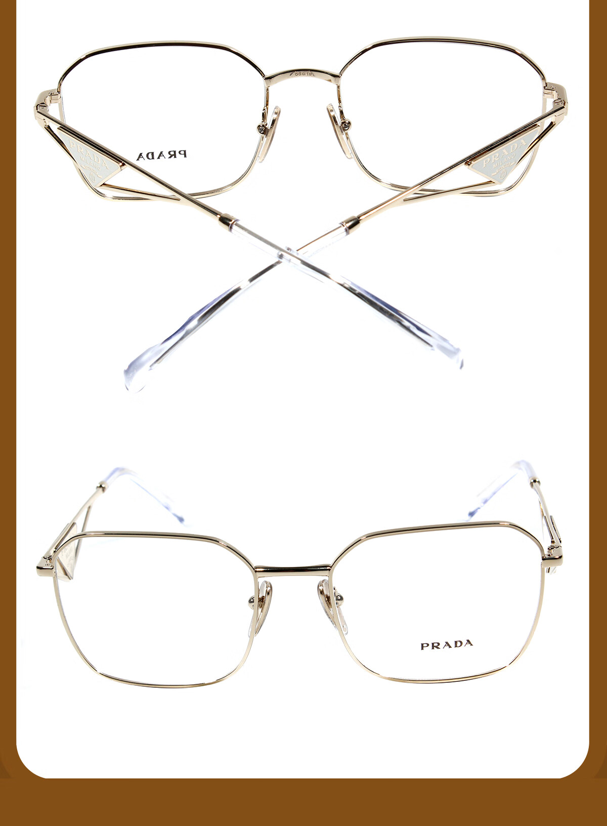 Prada Prada star model triangular logo myopia glasses frame Sven gold wire frame 0PRA51V crystal glasses gold-ZVN-1O1