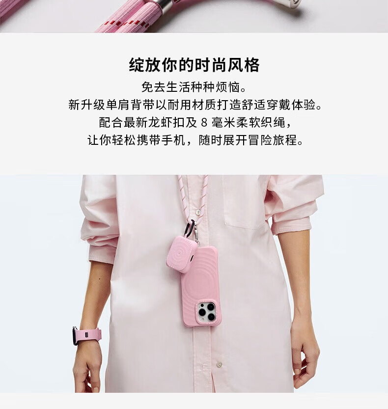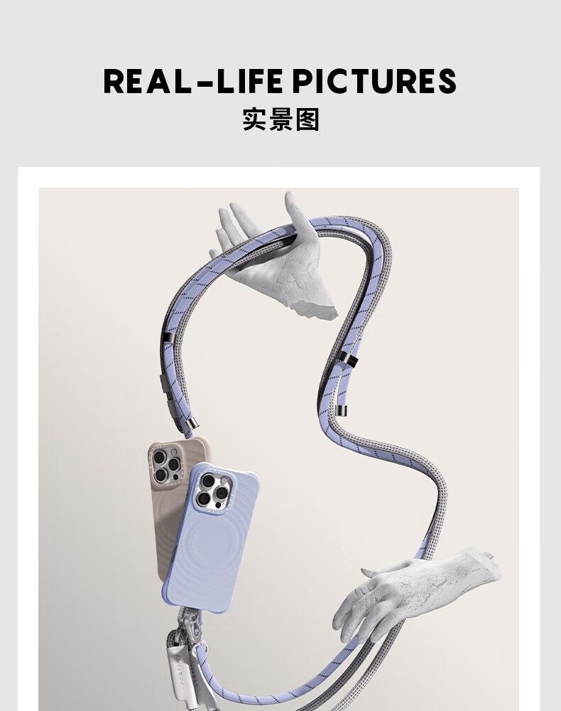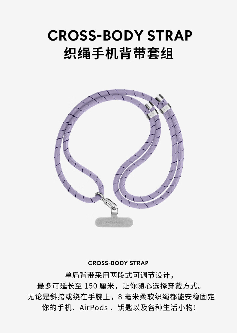 CASETIFY straps basic mobile phone accessories woven rope mobile phone strap/8mm crossbody strap/double buckle portable strap suitable for all iPhone series double buckle cool gray