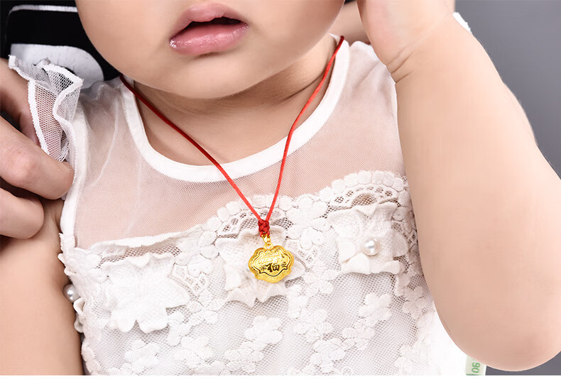 Guran Gold Lock Longevity Lock Gold Baby Pendant Baby Pure Gold Safety Lock Necklace for Girls and Children Boys Full Gold 999 Full Gold Lotus Lock About 1.99 Grams Free Red Rope and Certificate
