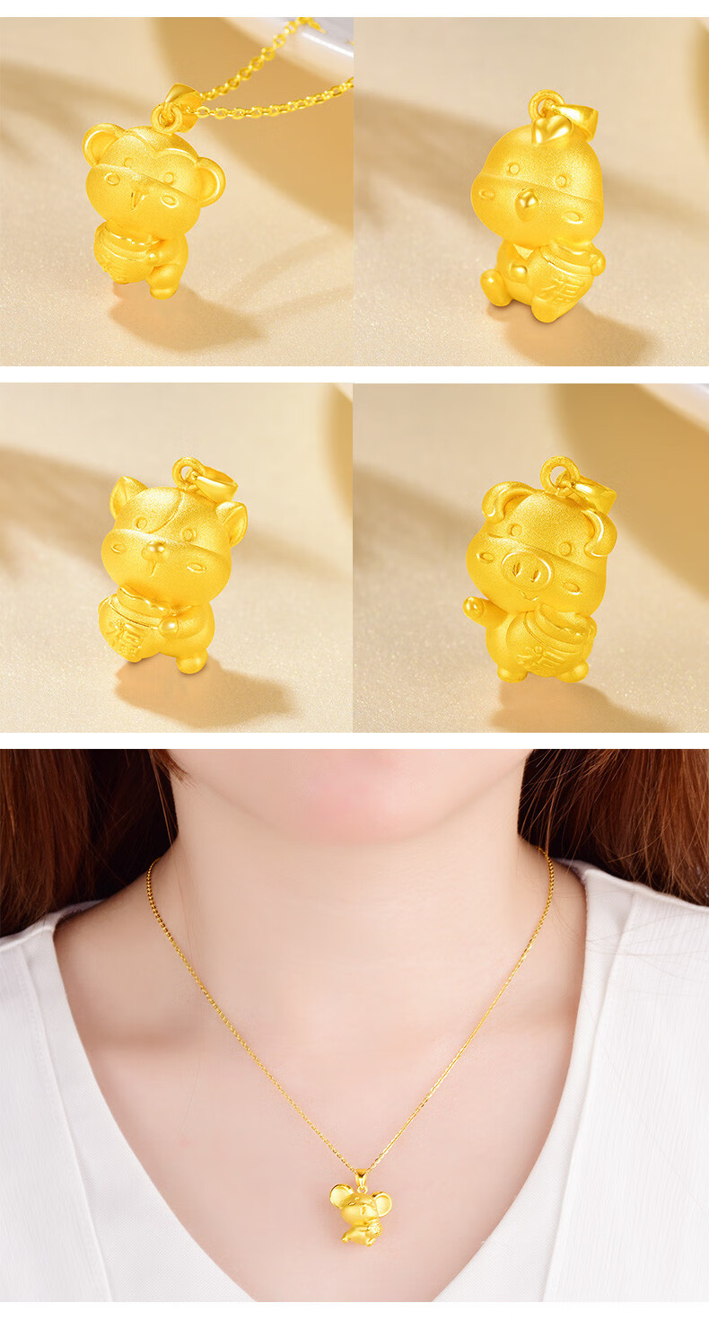 Gu Ran Twelve Zodiac Gold Pendant Tiger Gold Tiger Gold Pendant 999 Pure Gold Pure Gold Taurus Gold Pig Horse Rat Necklace for Women Gold Zodiac Ox Approximately 1.9 Free Certificate