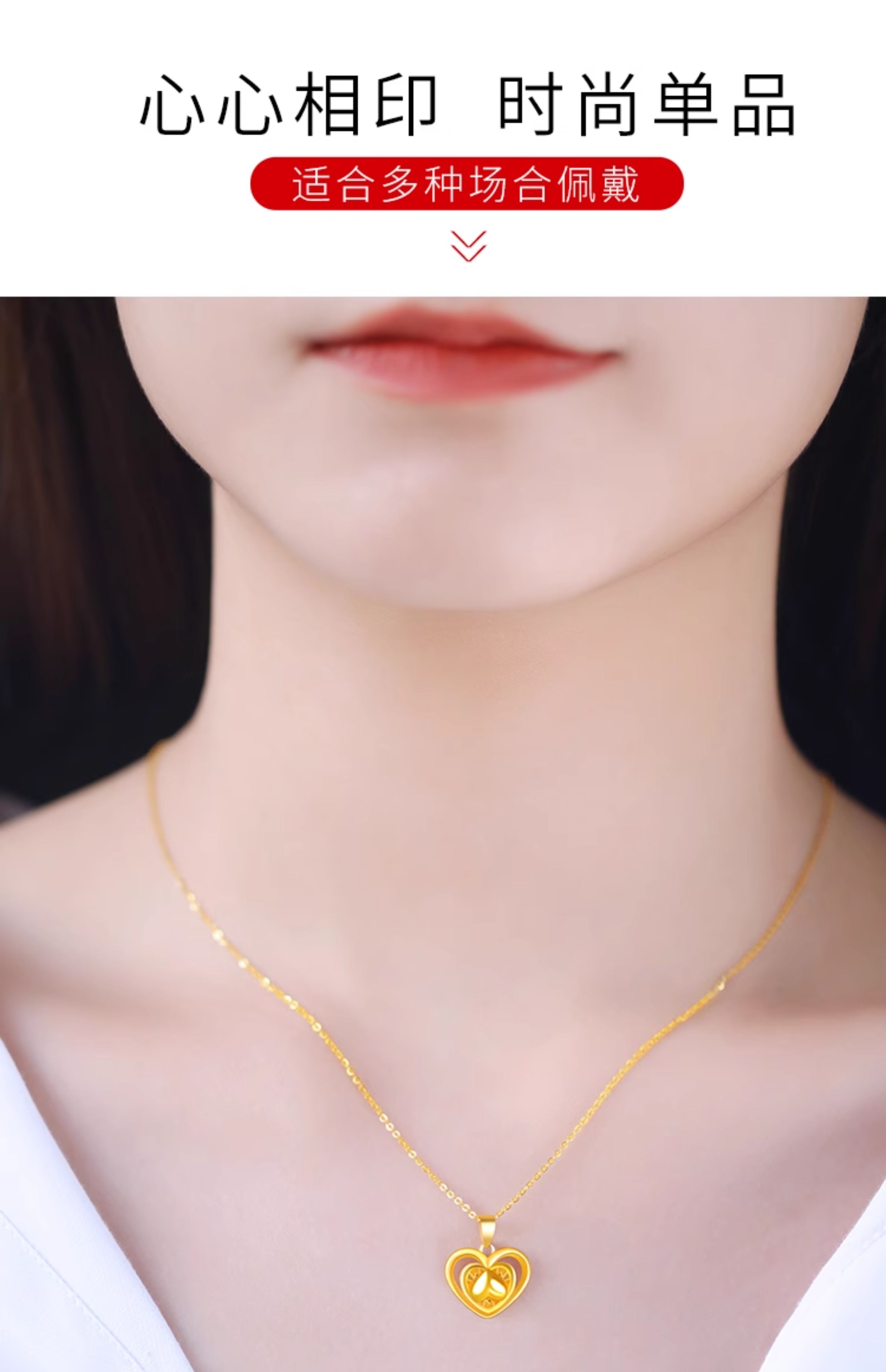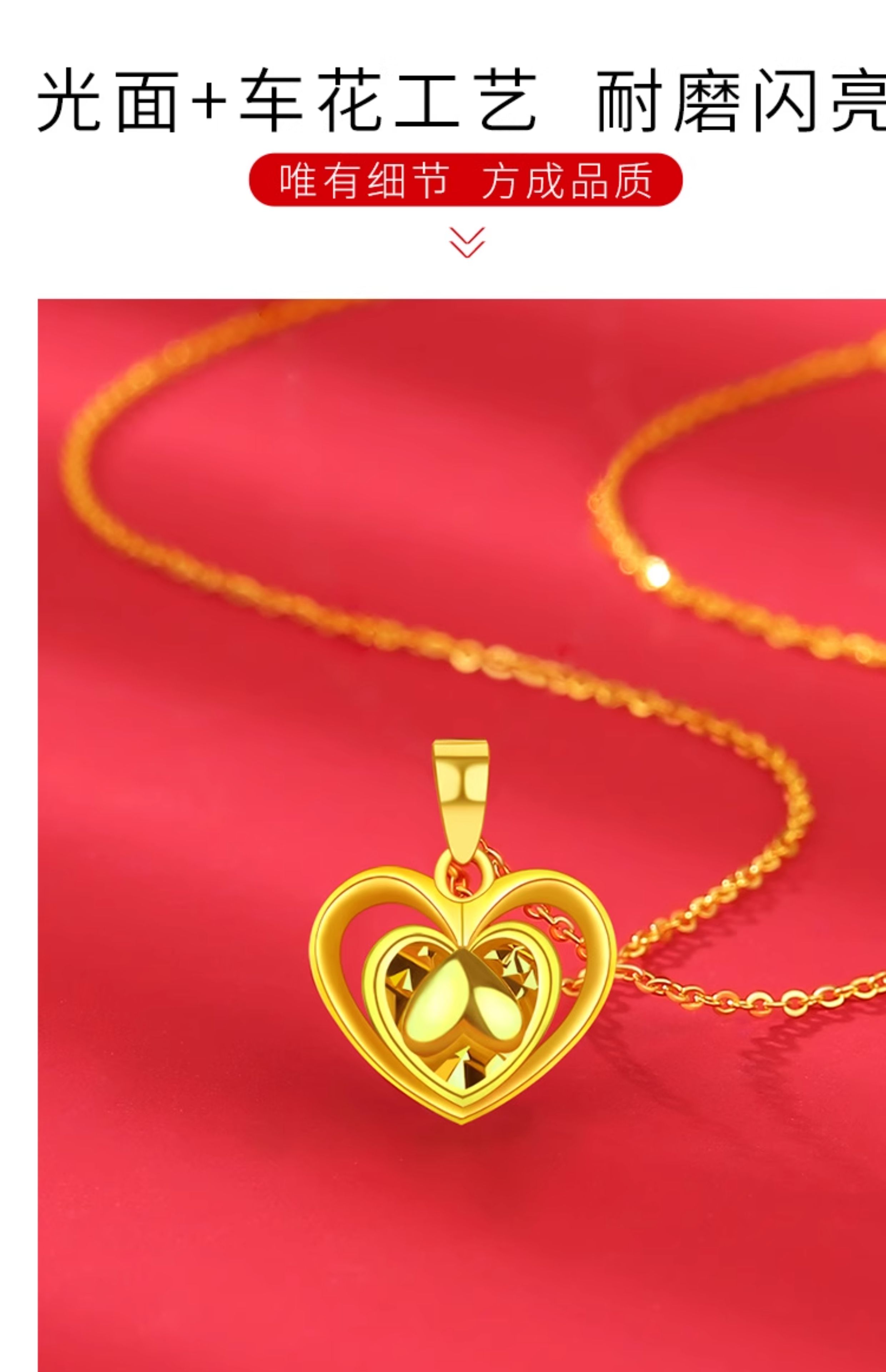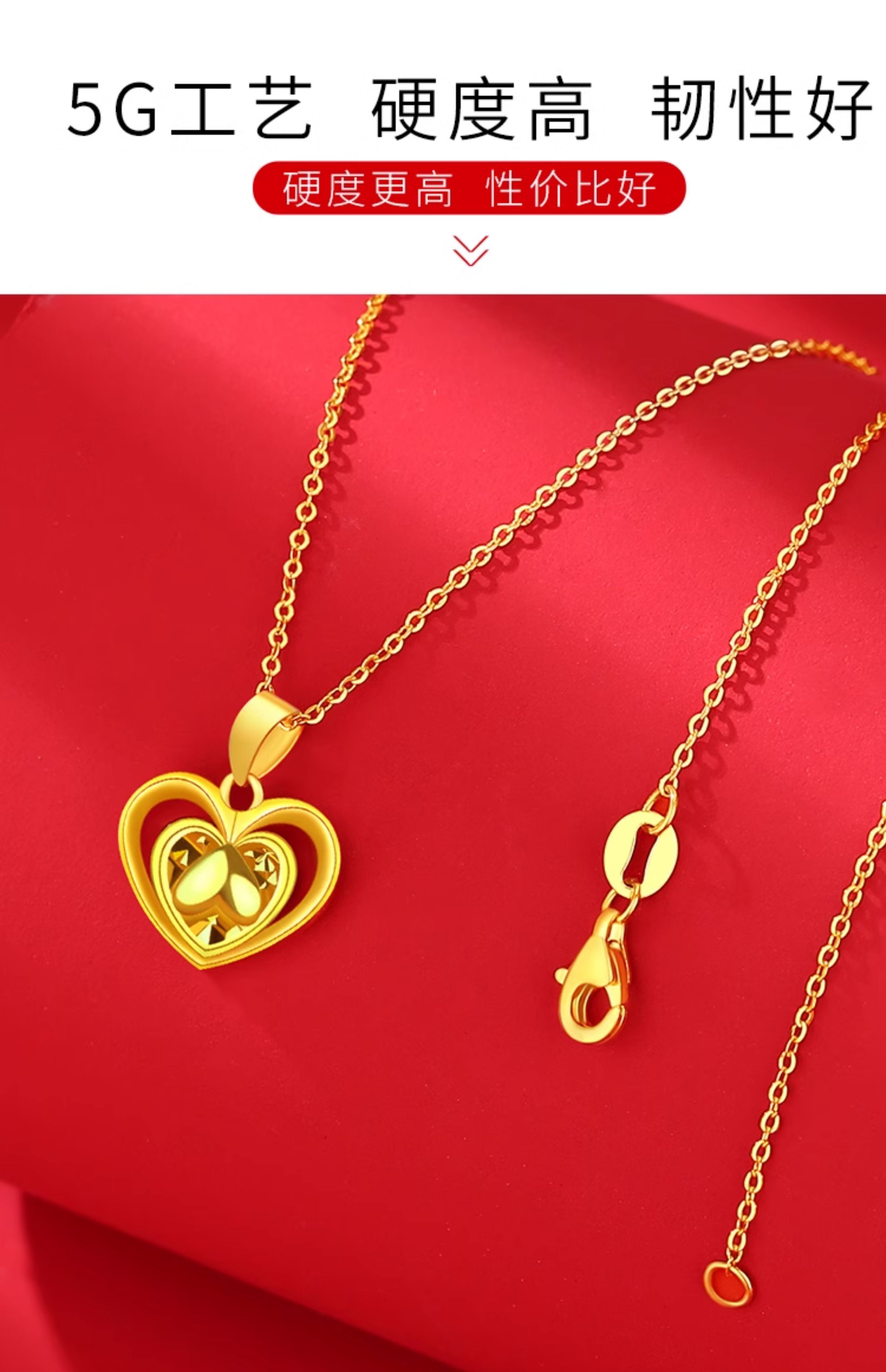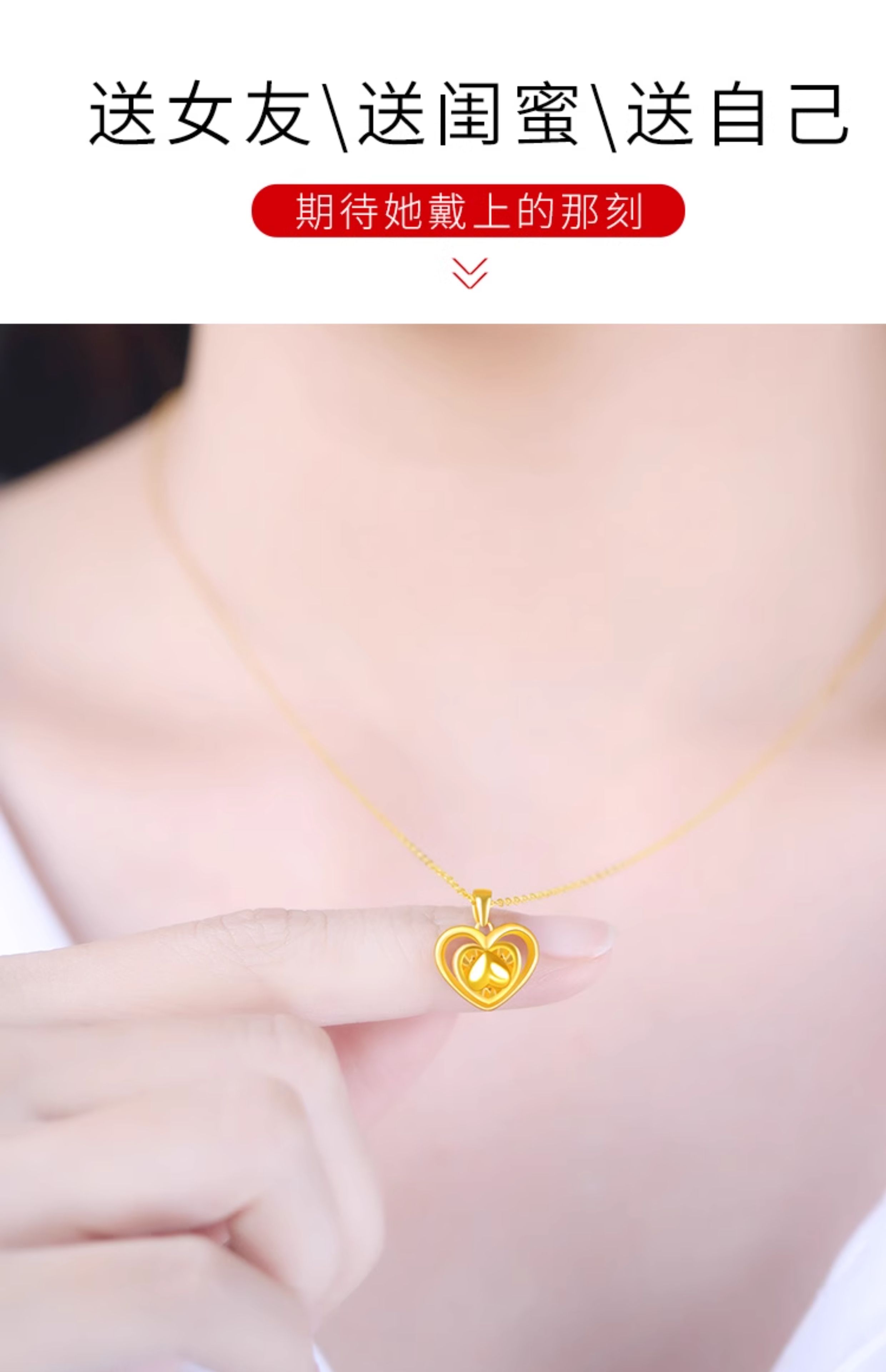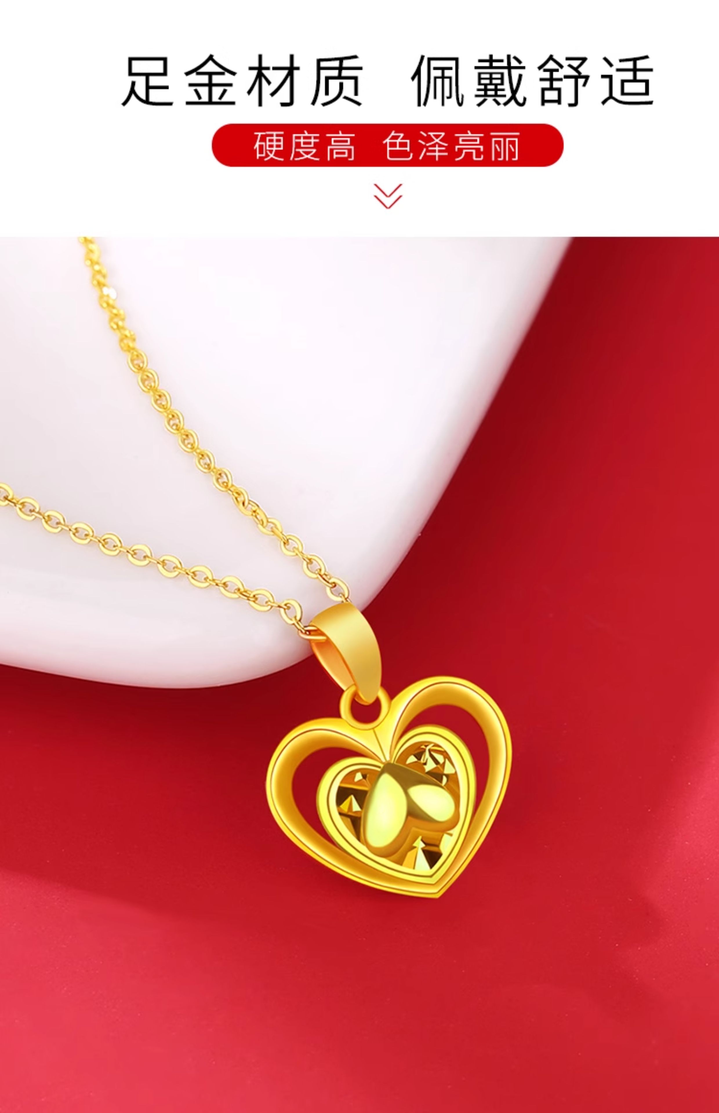 Guran gold necklace women's pure gold pendant 999 pure gold new heart-shaped 24K birthday gift practical for girlfriend. I have you in my heart pure gold pendant + golden silver chain (elastic