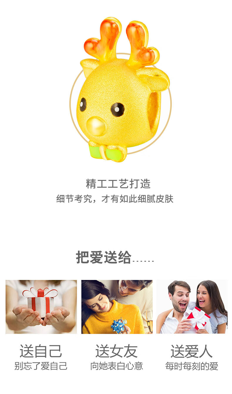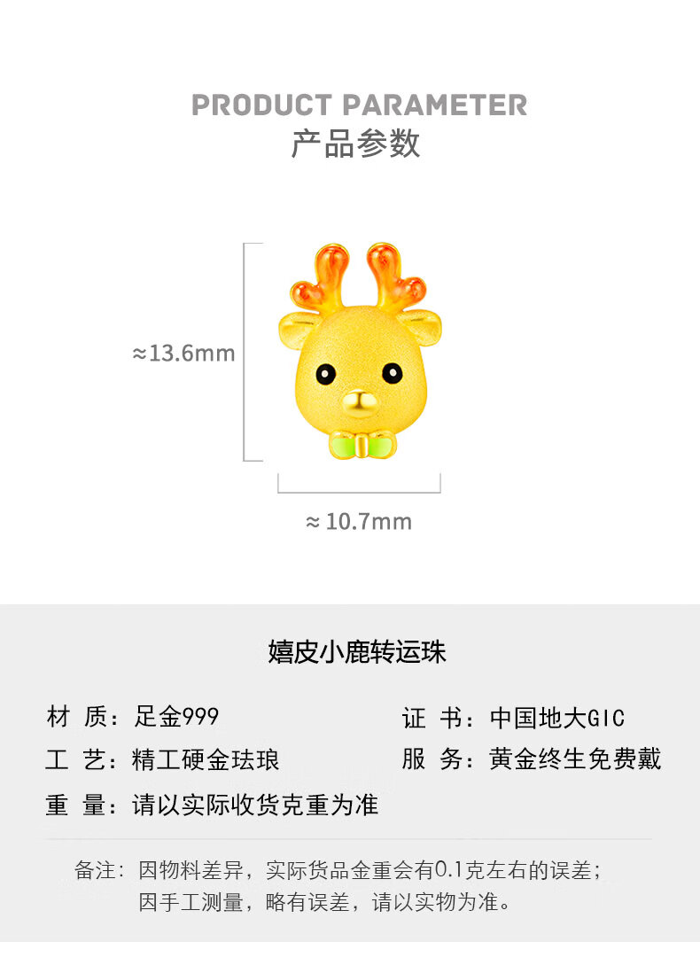 Guran Gold Deer Bracelet Deer Transfer Beads Women's Pure Gold 999 Gold Deer Beads 3D Hard Gold Christmas Gift Pure Gold Deer Transfer Beads About 1 Gram Free Certificate