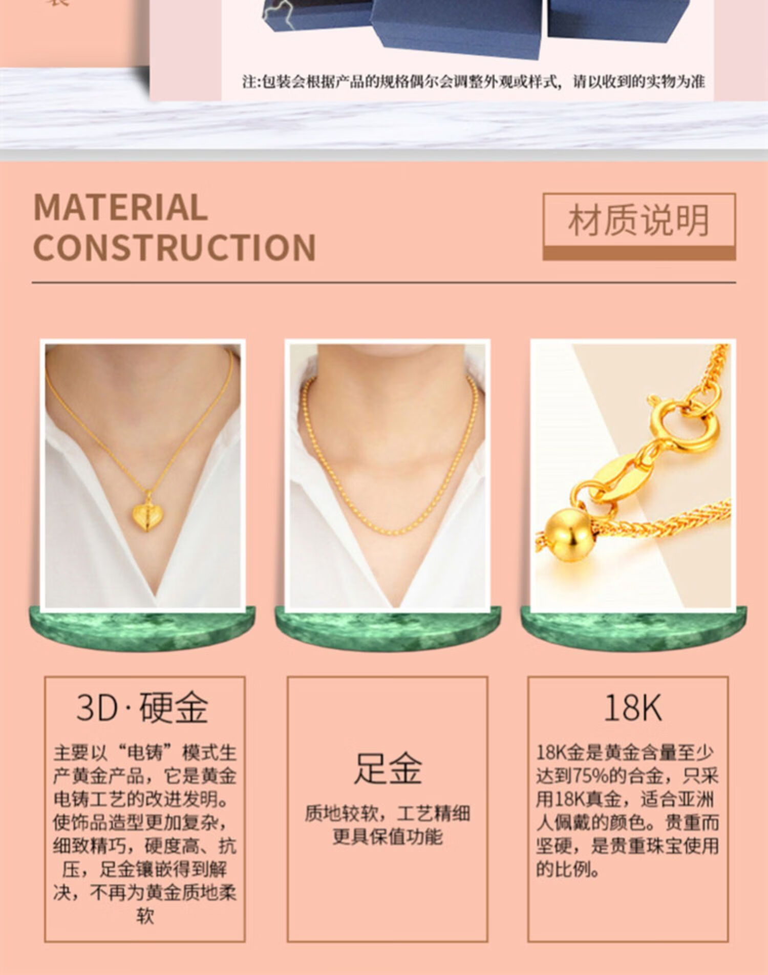 Guran 3D hard gold 999 pure gold transfer beads gold spring pendant set chain men's and women's fashion necklace pendant SF single spring pendant (excluding chain) 2.5g