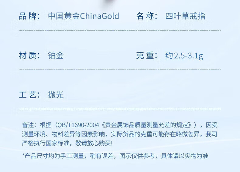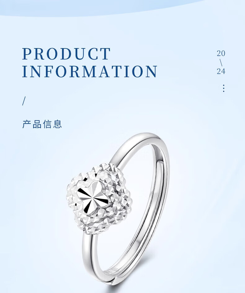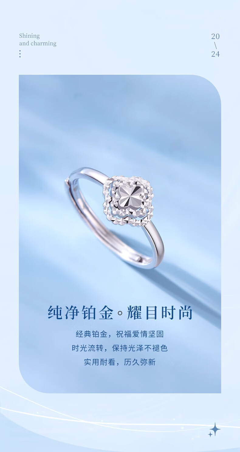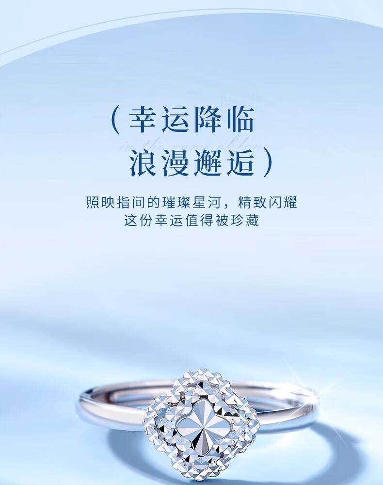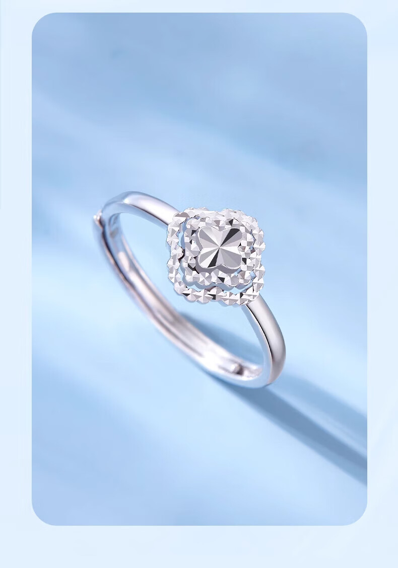 China Gold (CHINA GOLD) four-leaf clover ring for women pt950 platinum ring plain ring opening adjustable ring Valentine's Day birthday gift four-leaf clover platinum ring about 2.6g
