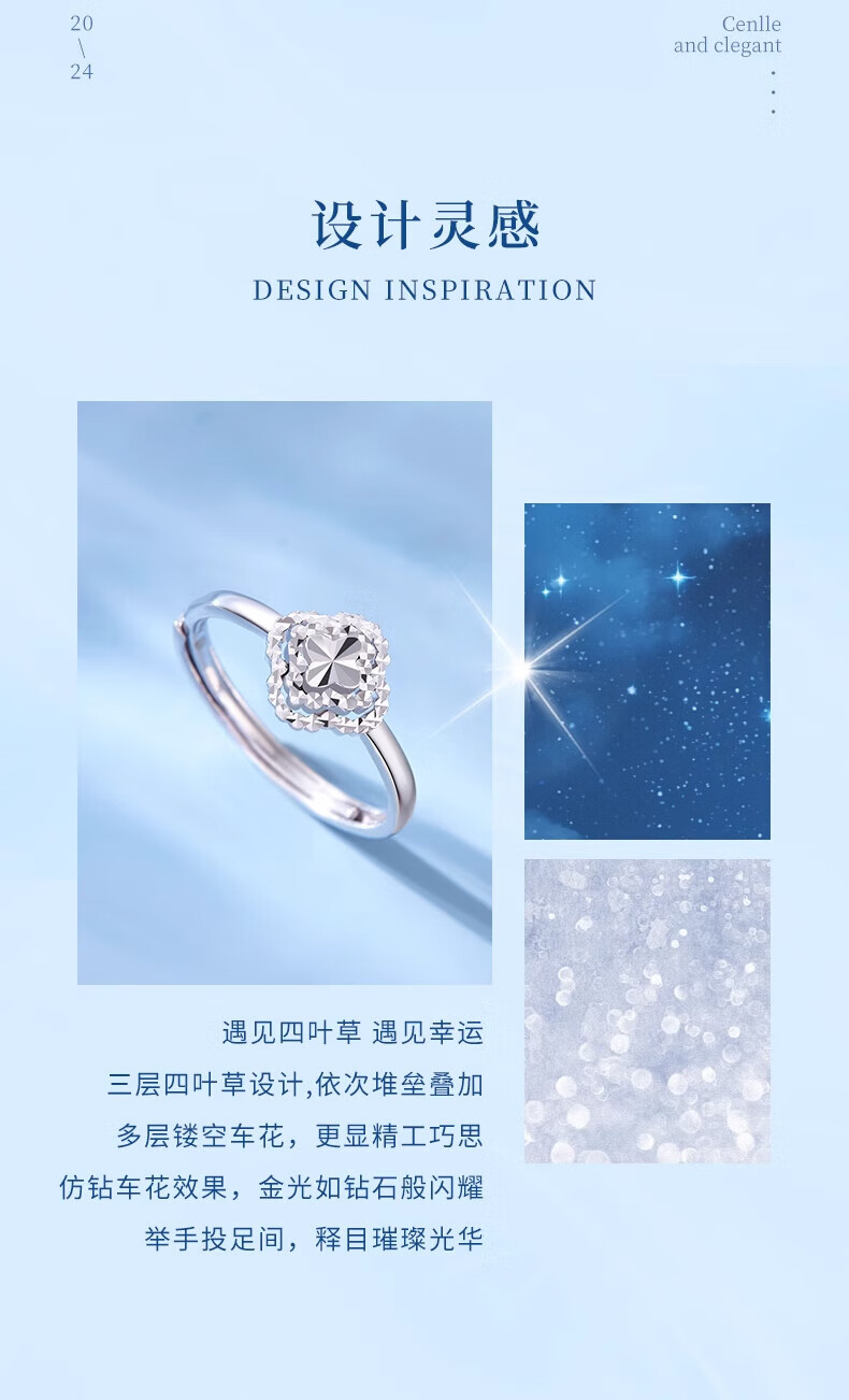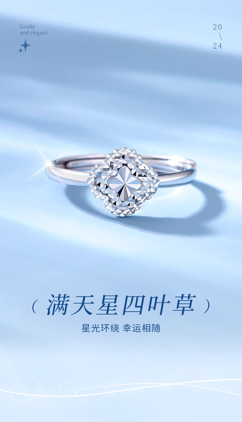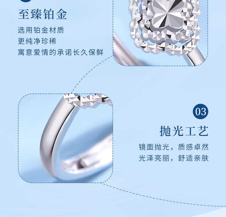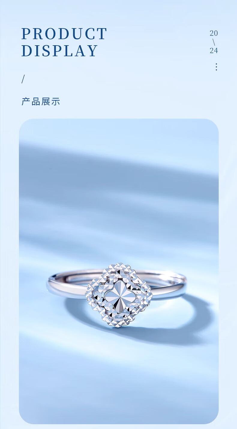 China Gold (CHINA GOLD) four-leaf clover ring for women pt950 platinum ring plain ring opening adjustable ring Valentine's Day birthday gift four-leaf clover platinum ring about 2.6g