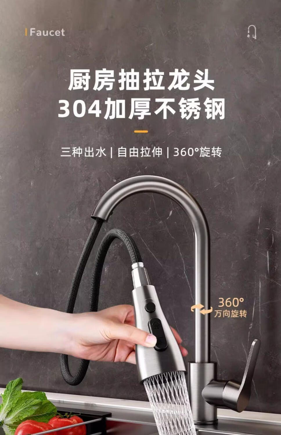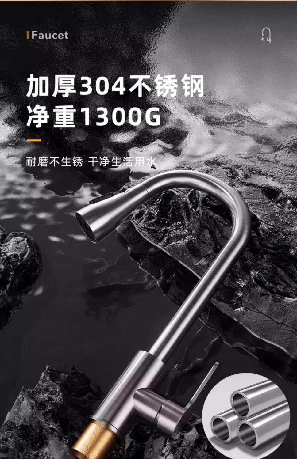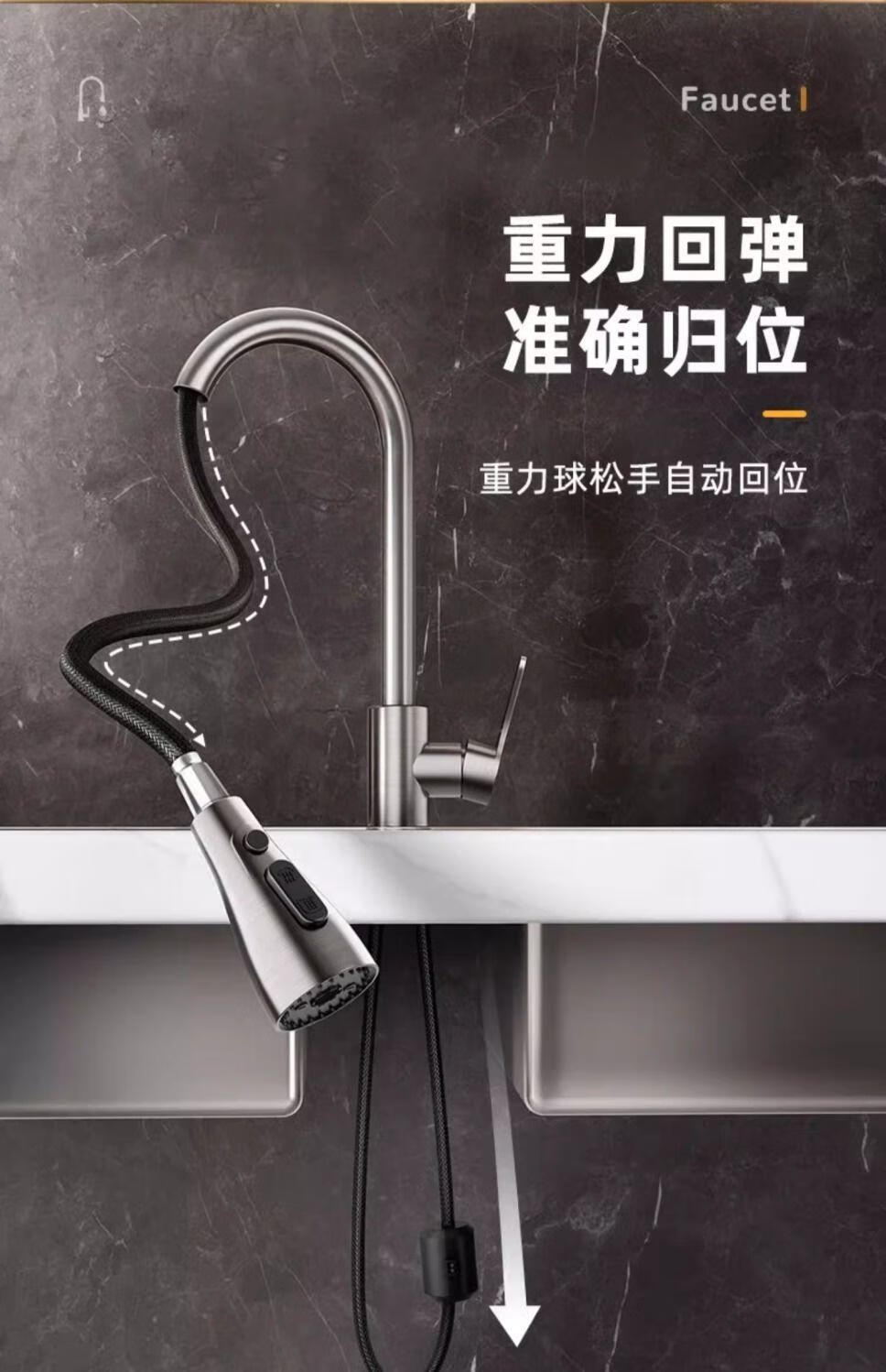 JOMOO New German sink faucet full copper body kitchen faucet hot and cold pull-out sink faucet gun gray full copper body pull-out faucet three-speed adjustable water outlet丨with 80cm hot and cold water inlet pipe