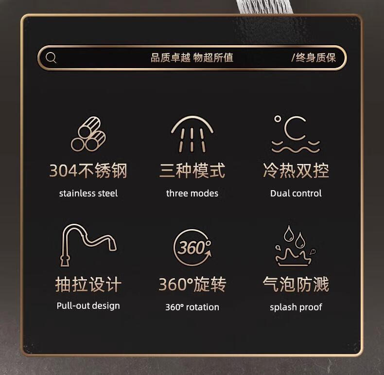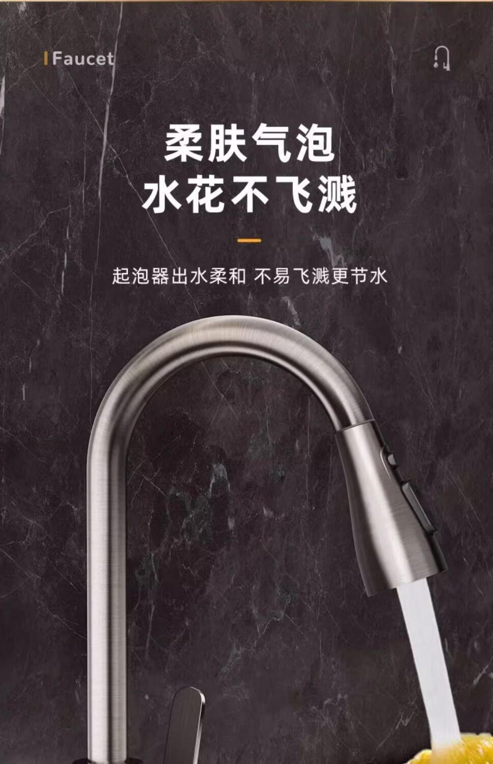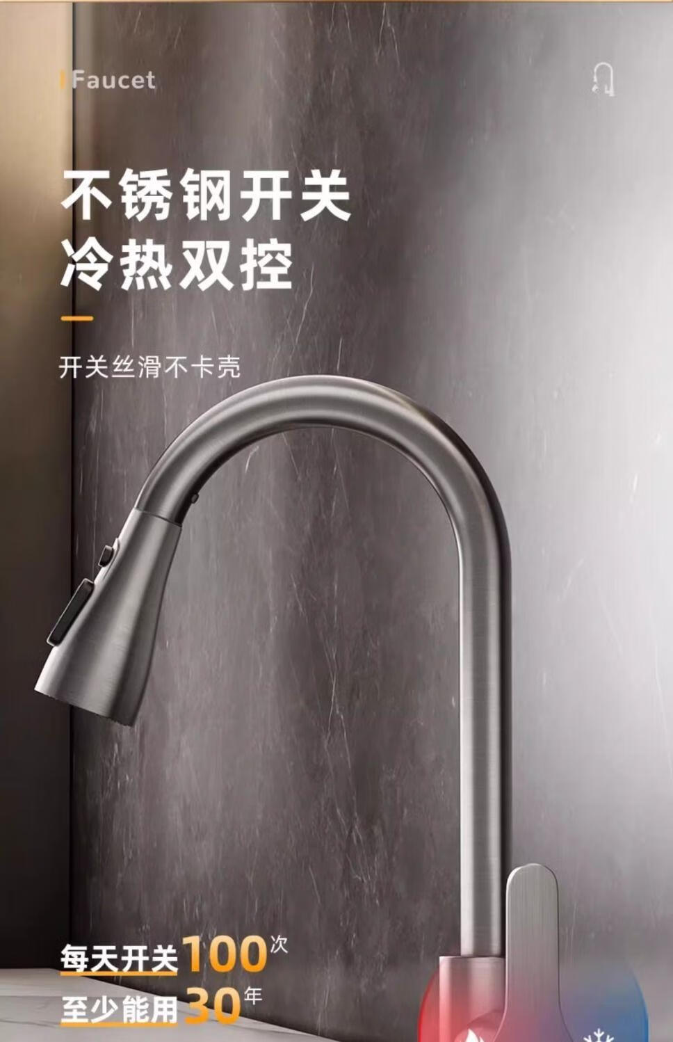 JOMOO New German sink faucet full copper body kitchen faucet hot and cold pull-out sink faucet gun gray full copper body pull-out faucet three-speed adjustable water outlet丨with 80cm hot and cold water inlet pipe