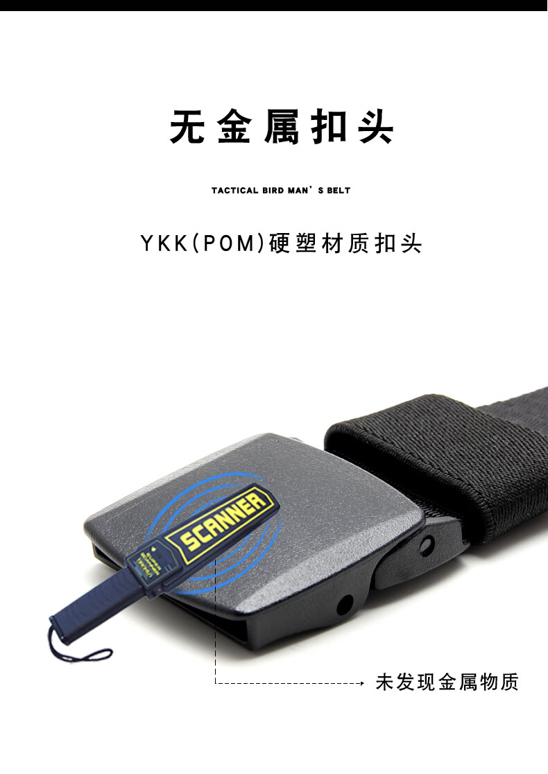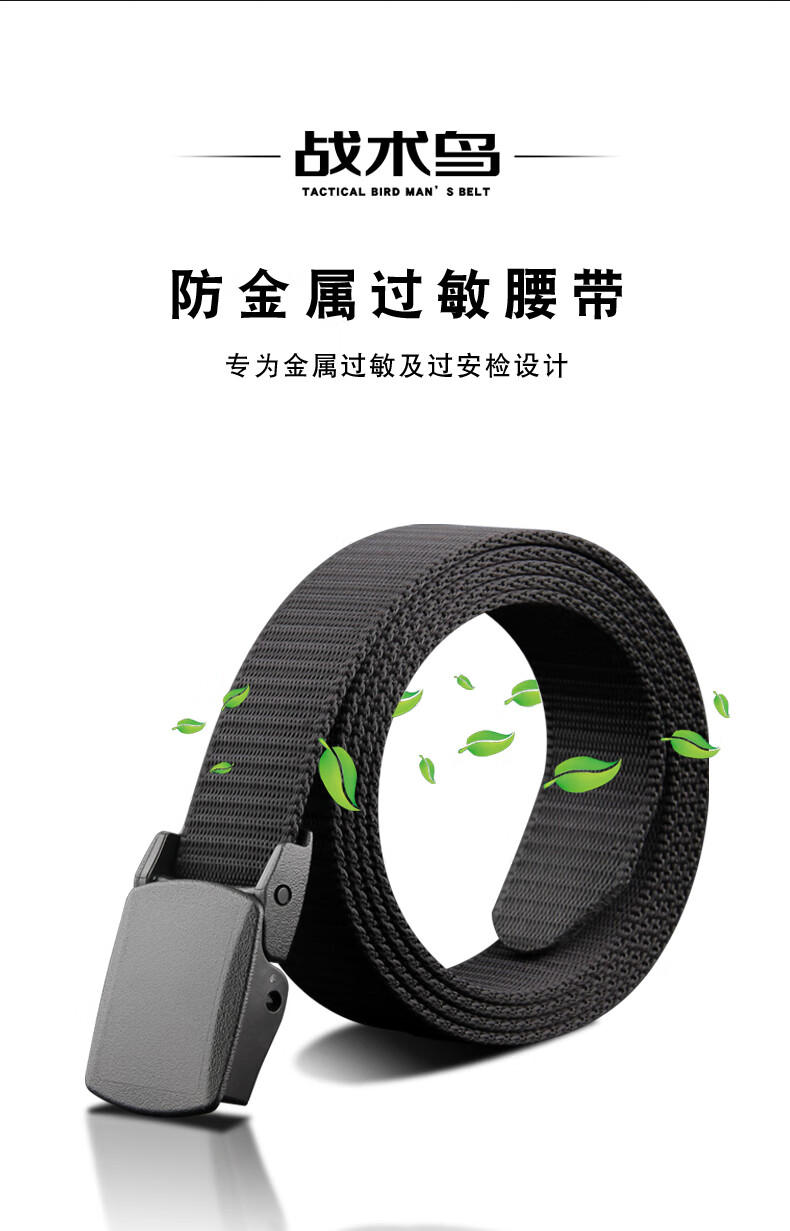 Iron-free nylon belt that passes security inspection, metal-free trouser belt, outdoor smooth plastic buckle canvas belt for denim work, black, one set