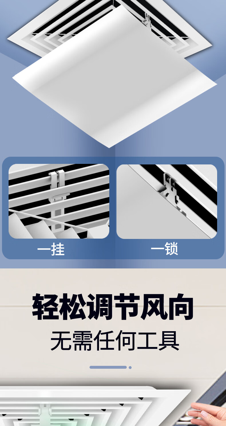 German imported high-quality central air conditioning windshield square top-mounted anti-direct blowing office air duct ceiling machine with adjustable angle square plastic steel hard style 60X60 0x0x0cm