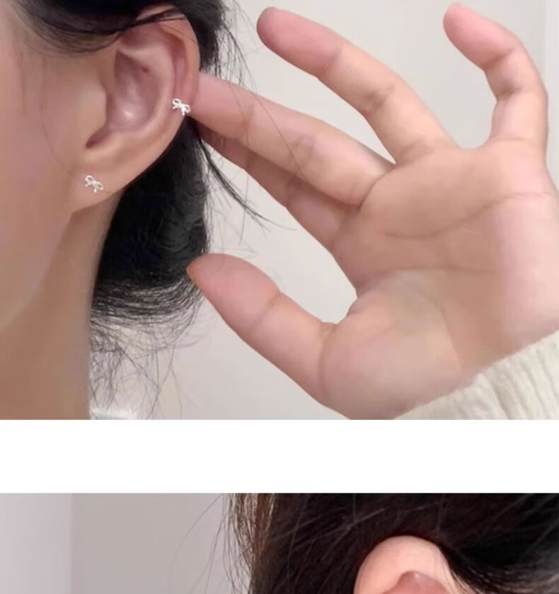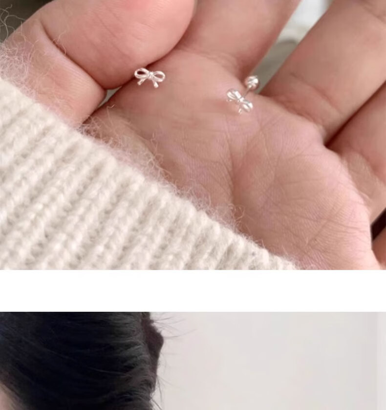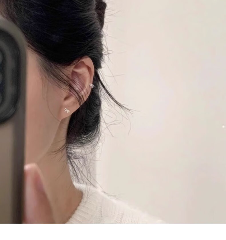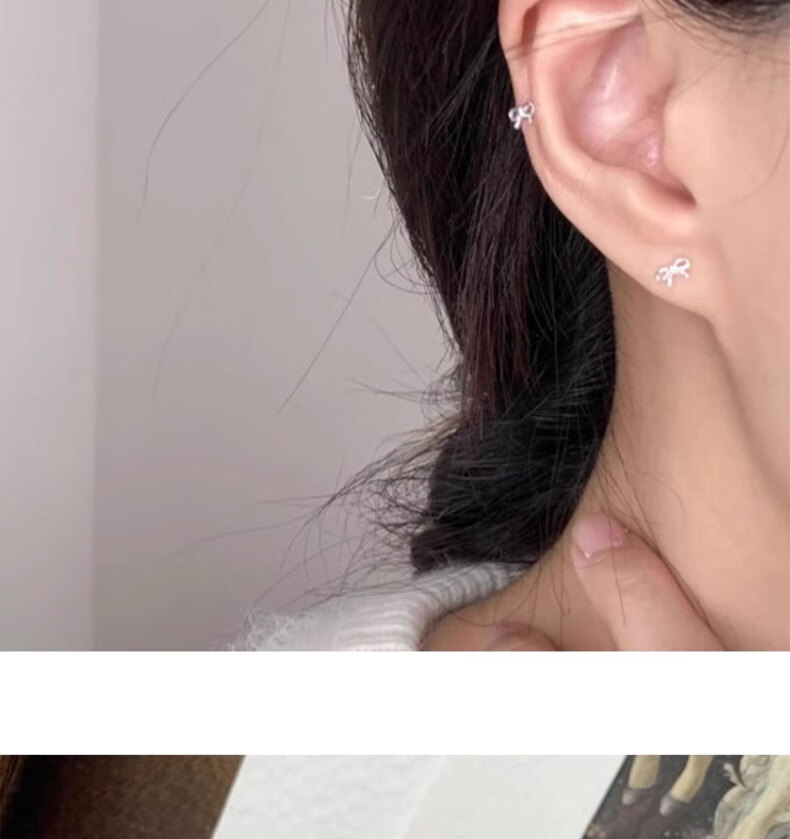 Liangshihuan s925 sterling silver bow screw-buckle earrings for girls, cute and sweet, pierced ears for sleeping, versatile earrings, butterfly earrings, 1 pair