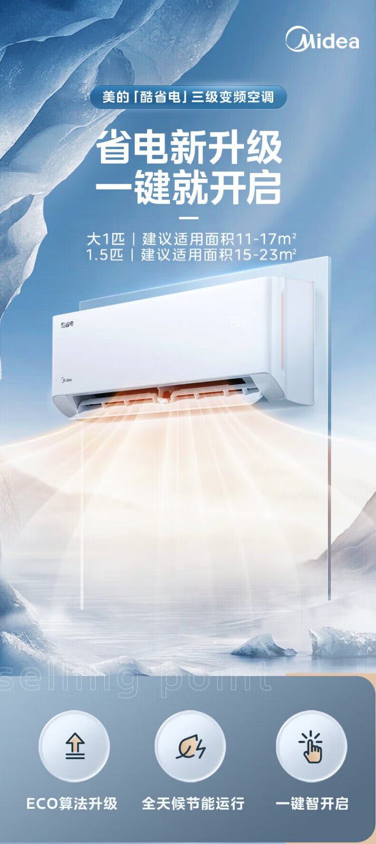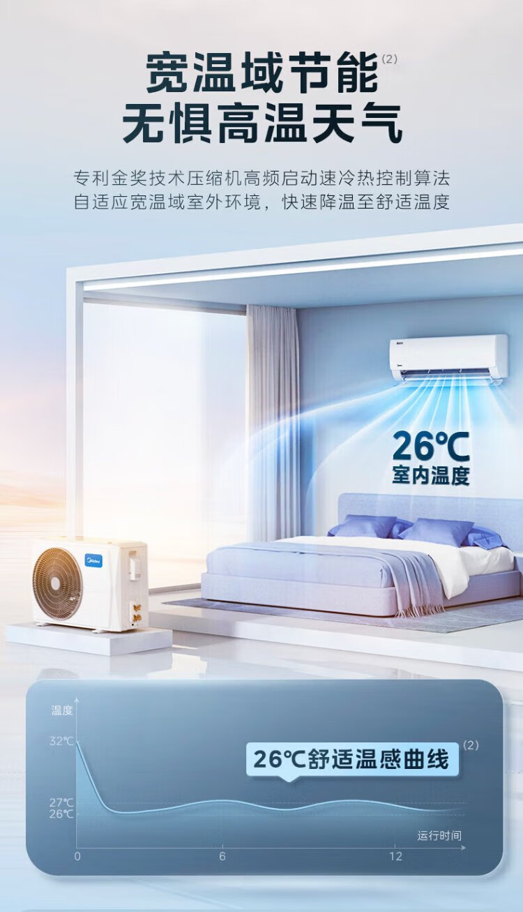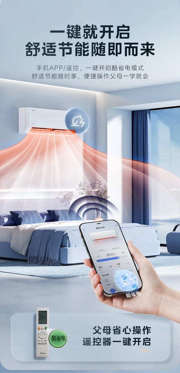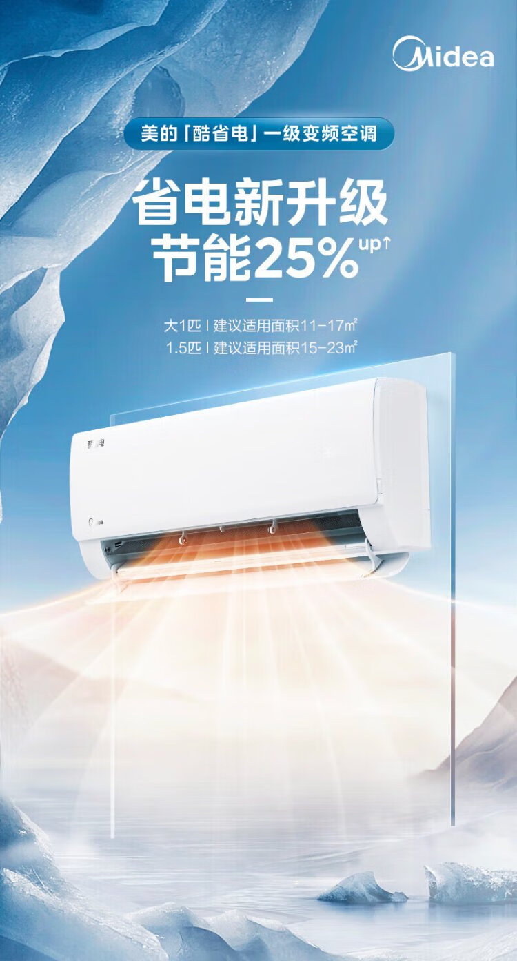 Midea air conditioner hang-up 2026 cool power saving 2 generation pro large 1.5 hp new first level energy efficiency variable frequency heating and cooling household bedroom wall-mounted trade-in cool power saving ultra first level energy efficiency large 1.5 hp
