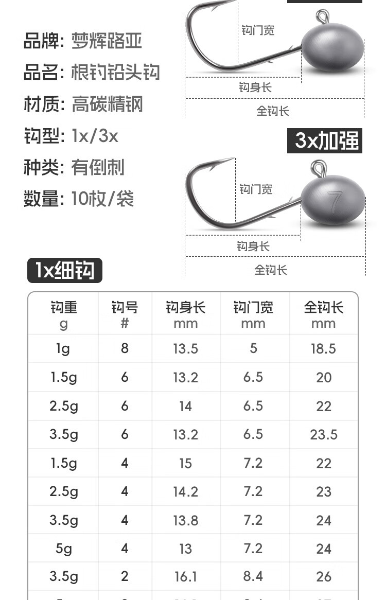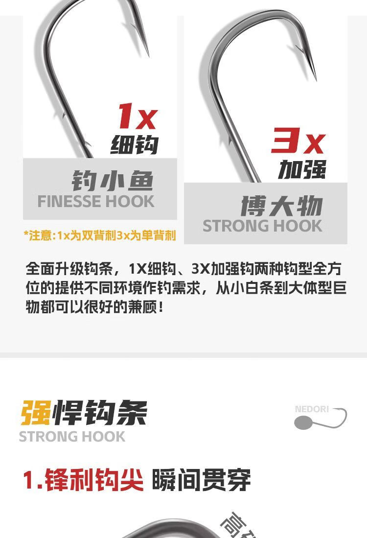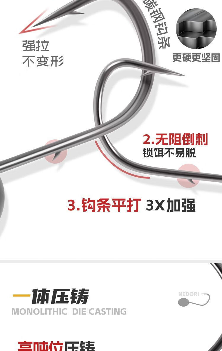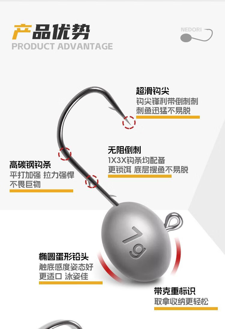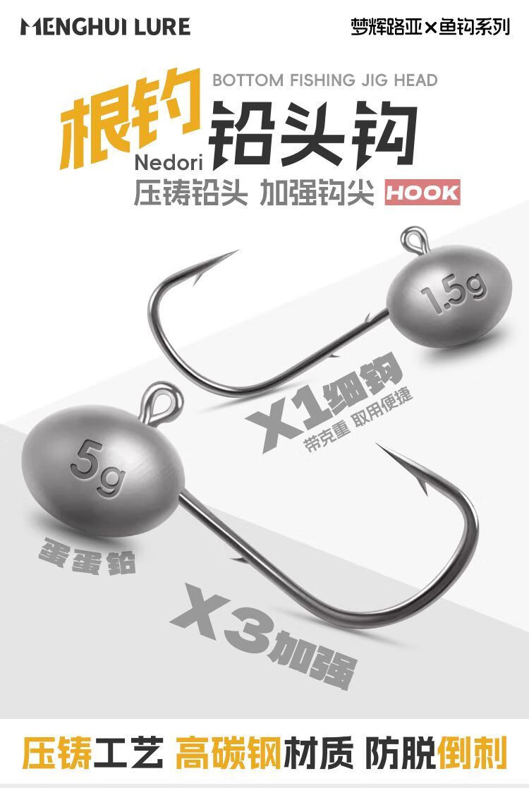 Menghuigen fishing hook die-cast 3X reinforced double back thorn anti-shedding lead head hook for fishing green slightly tilted sea bass, strengthened 5g/No. 2 hook (10 pieces/bag)