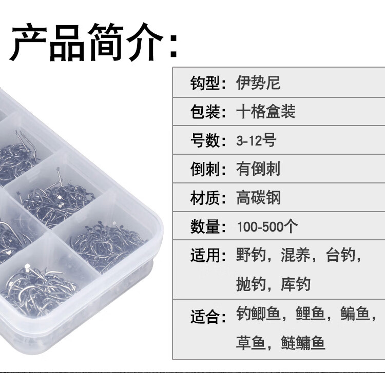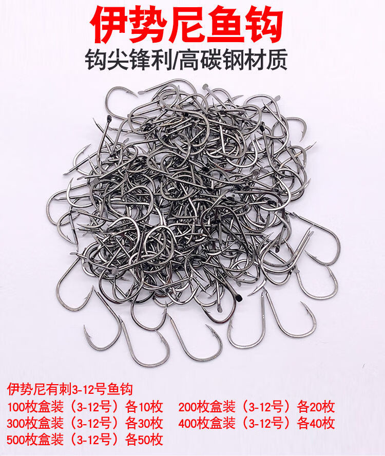 ZHANDUO Izu Iseni Fishhook No. 3-12 Bulk Barbed Box Fishing Crucian Carp Universal Mixed Set Fishing Gear Supplies Izu Boxed 100 Pieces in Bulk No. 3-12 Each Other