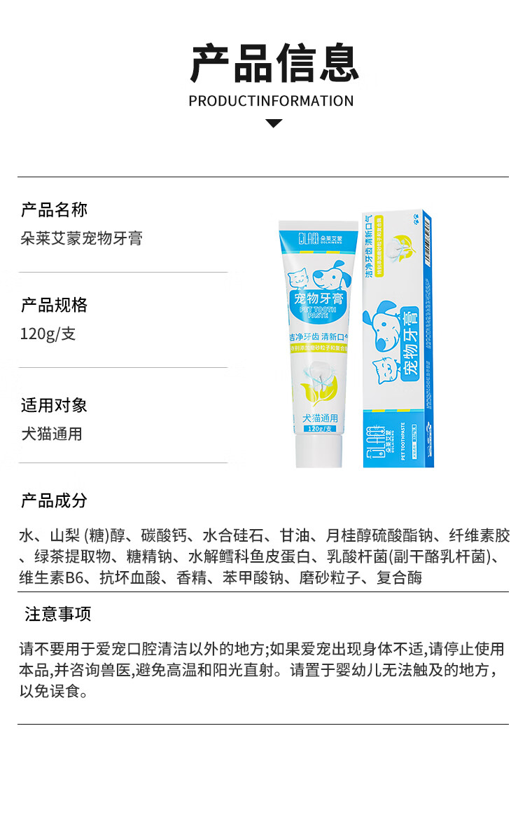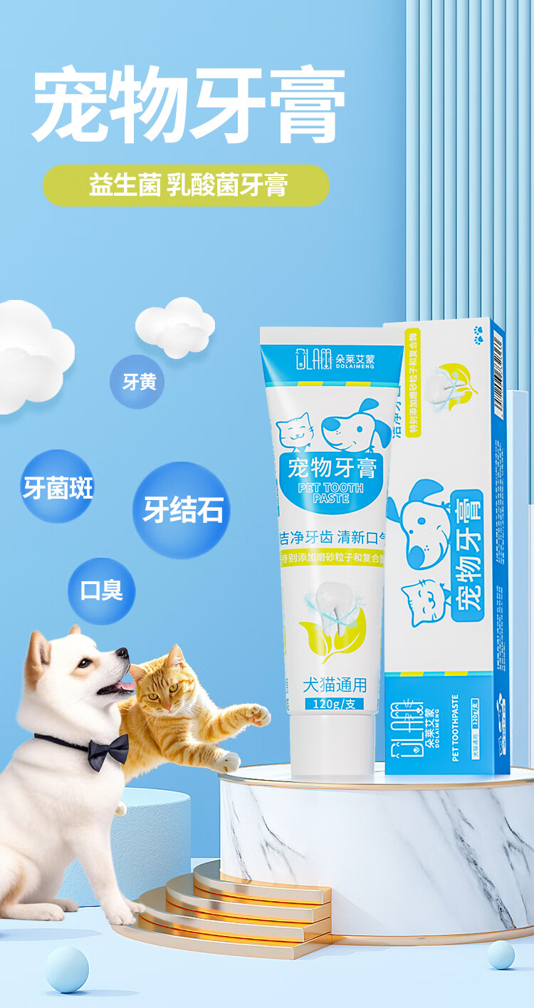 Pet toothpaste to remove bad breath, edible cat and dog toothbrush care products, clean and remove calculus 120g, pet toothpaste 120g, 1 piece + free finger brush